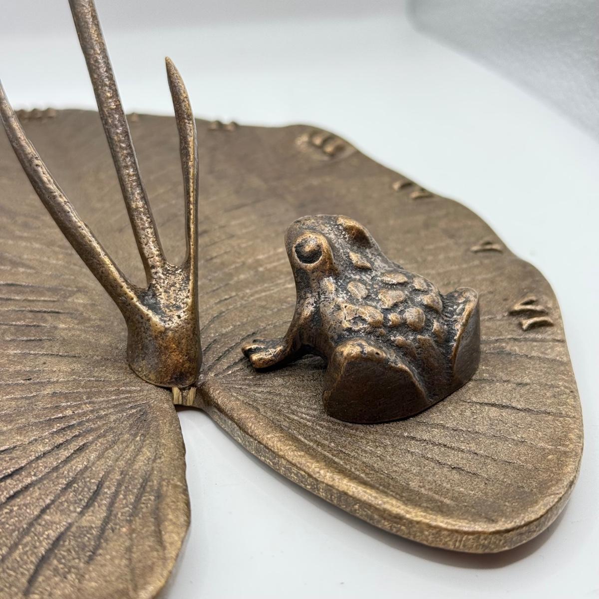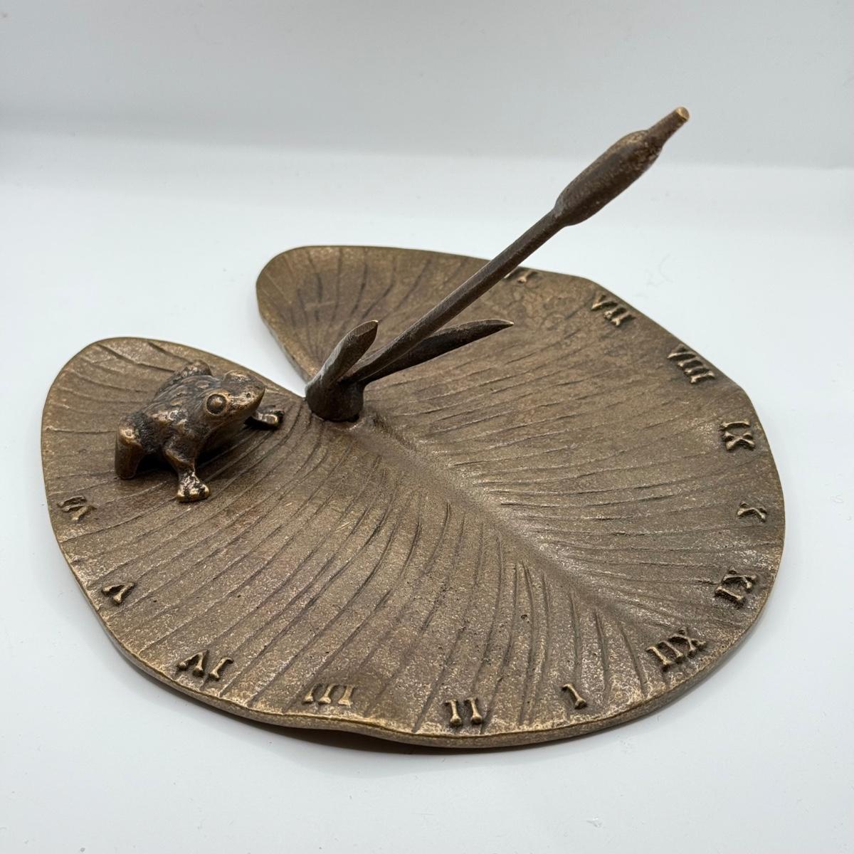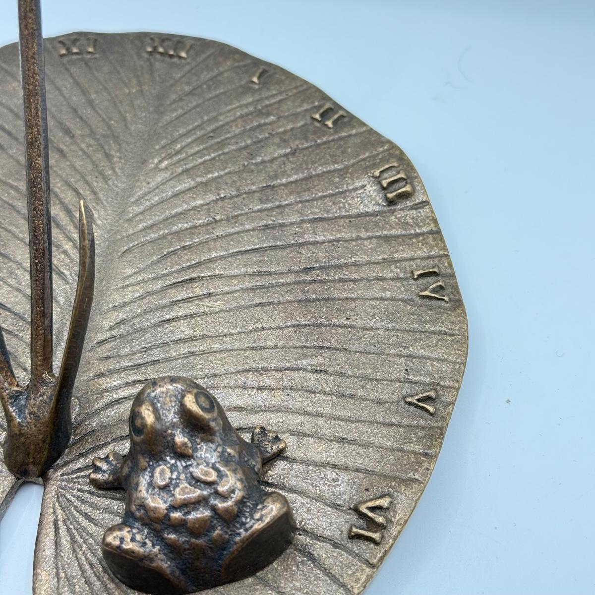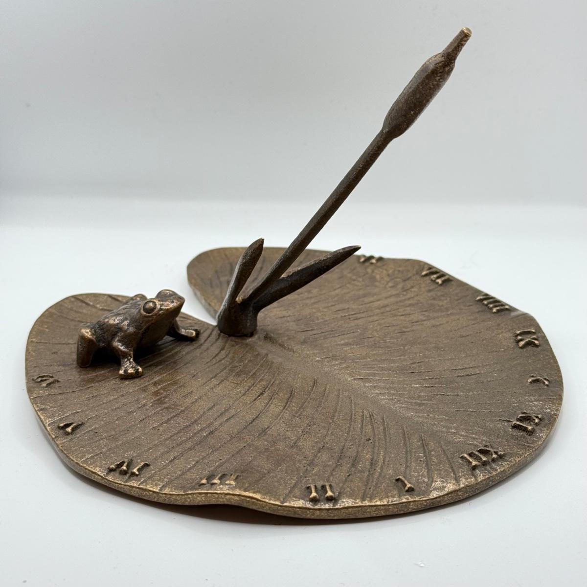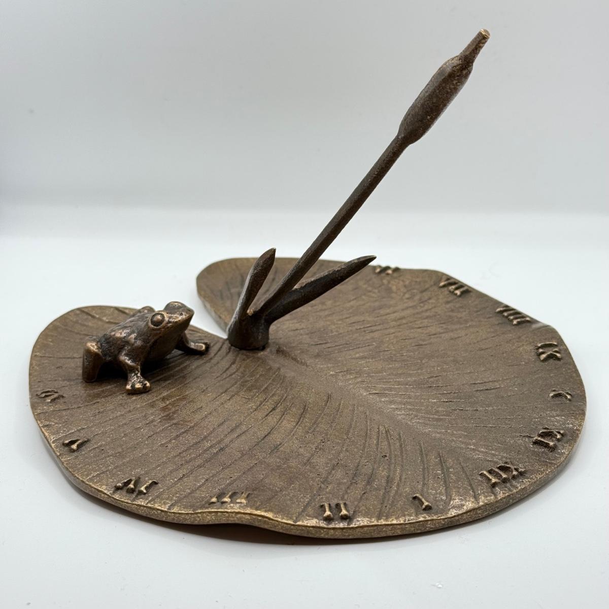 LOT 19L: 1986 White Swan Brass Lily Pad Sun Dial w/ Cattail & Frog