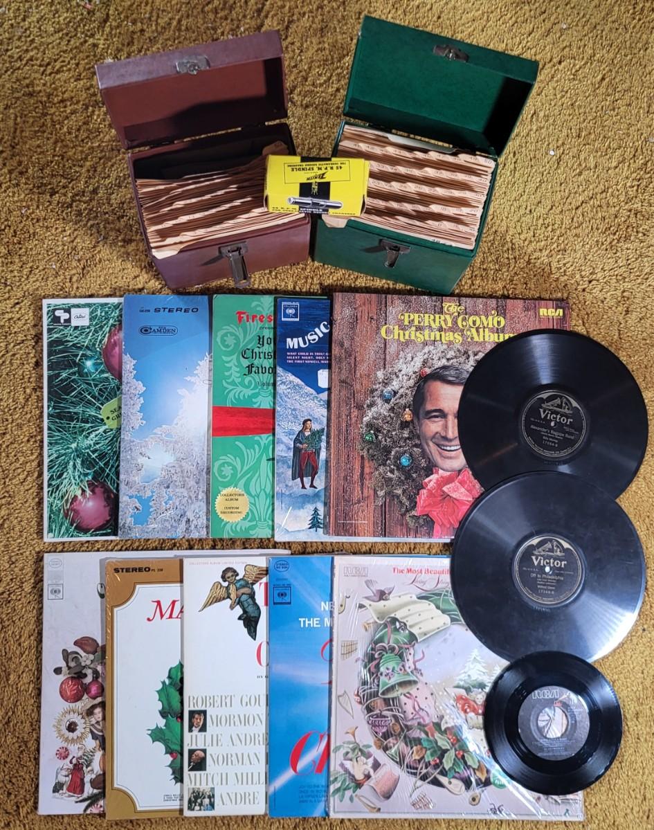 LOT 35P: Assorted Vintage Holiday Vinyl Records Collection with Pair of Record Box Containers
