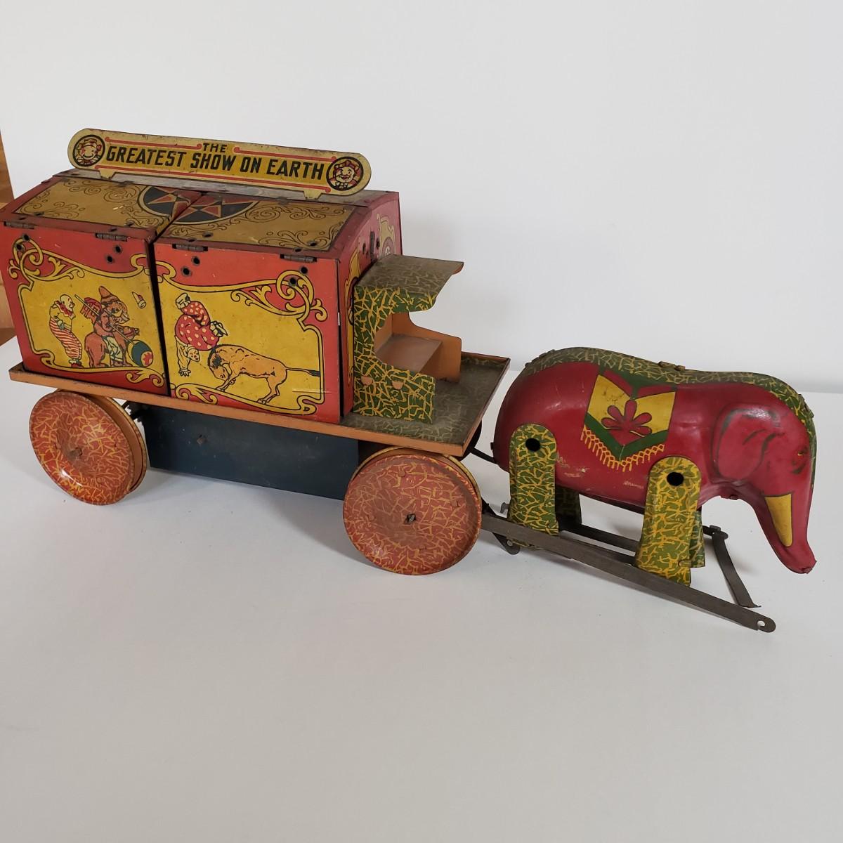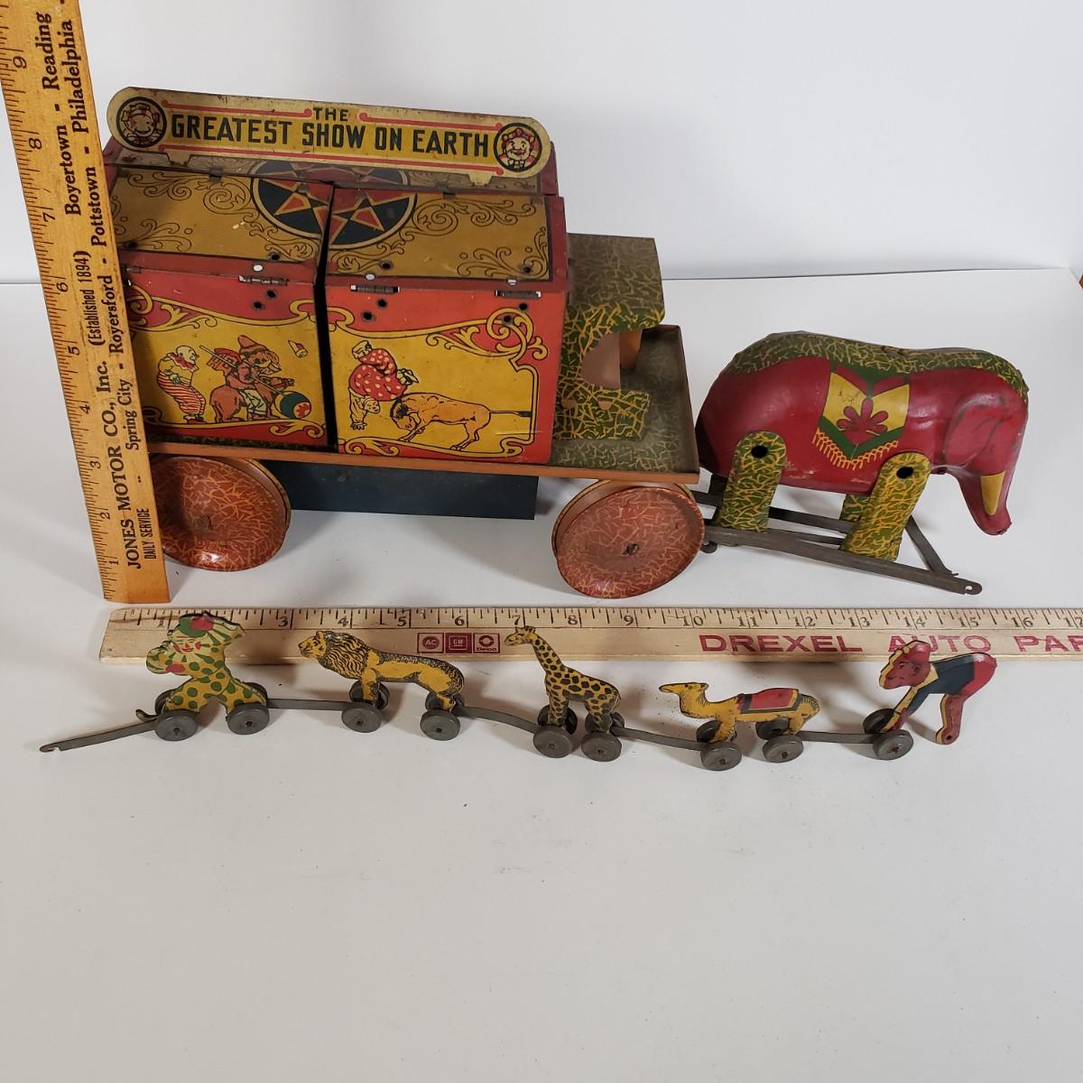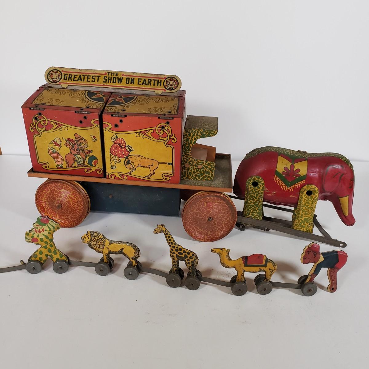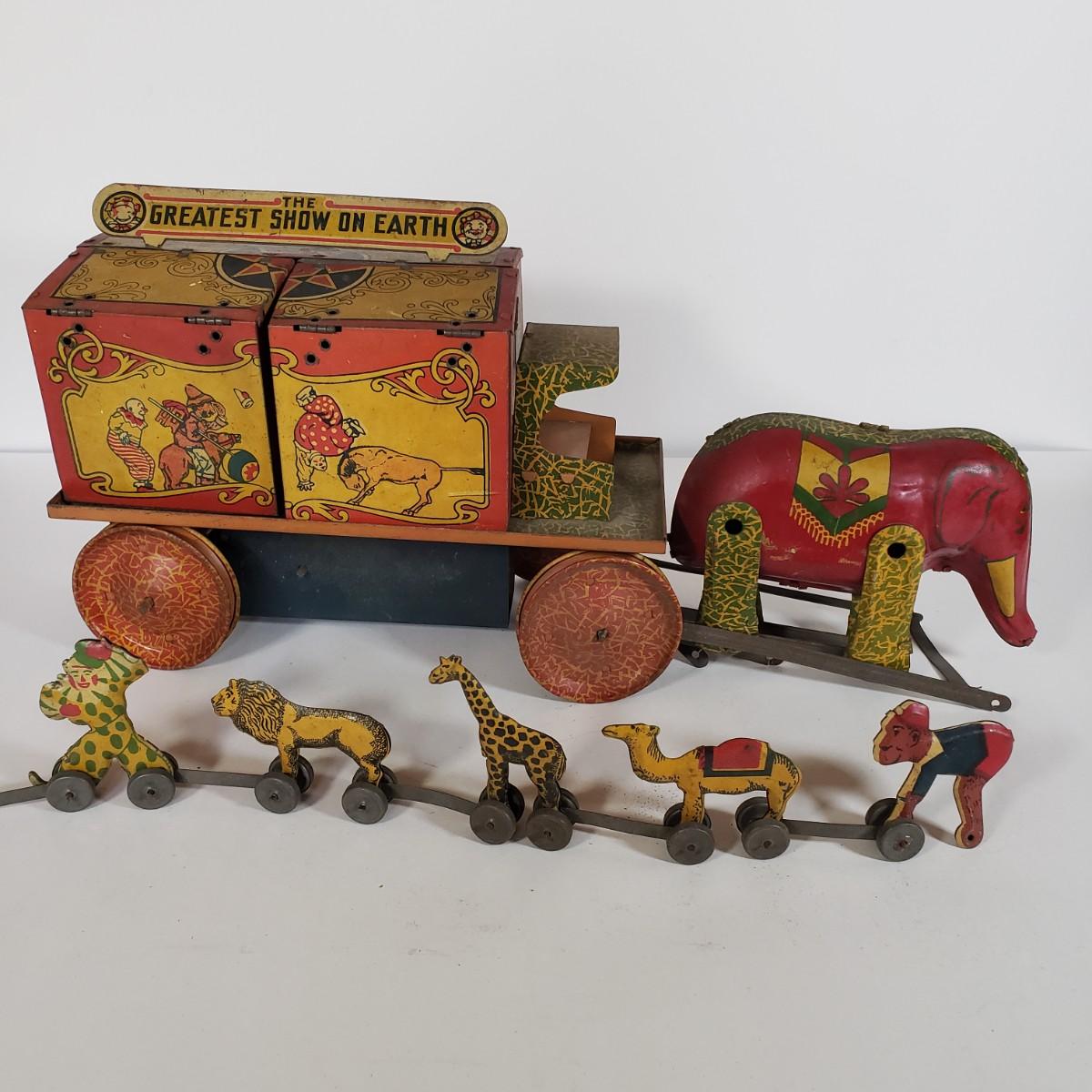 LOT 44P: 1930s Lindstrom Tin Litho Barnum & Bailey Circus Wagon with Animals