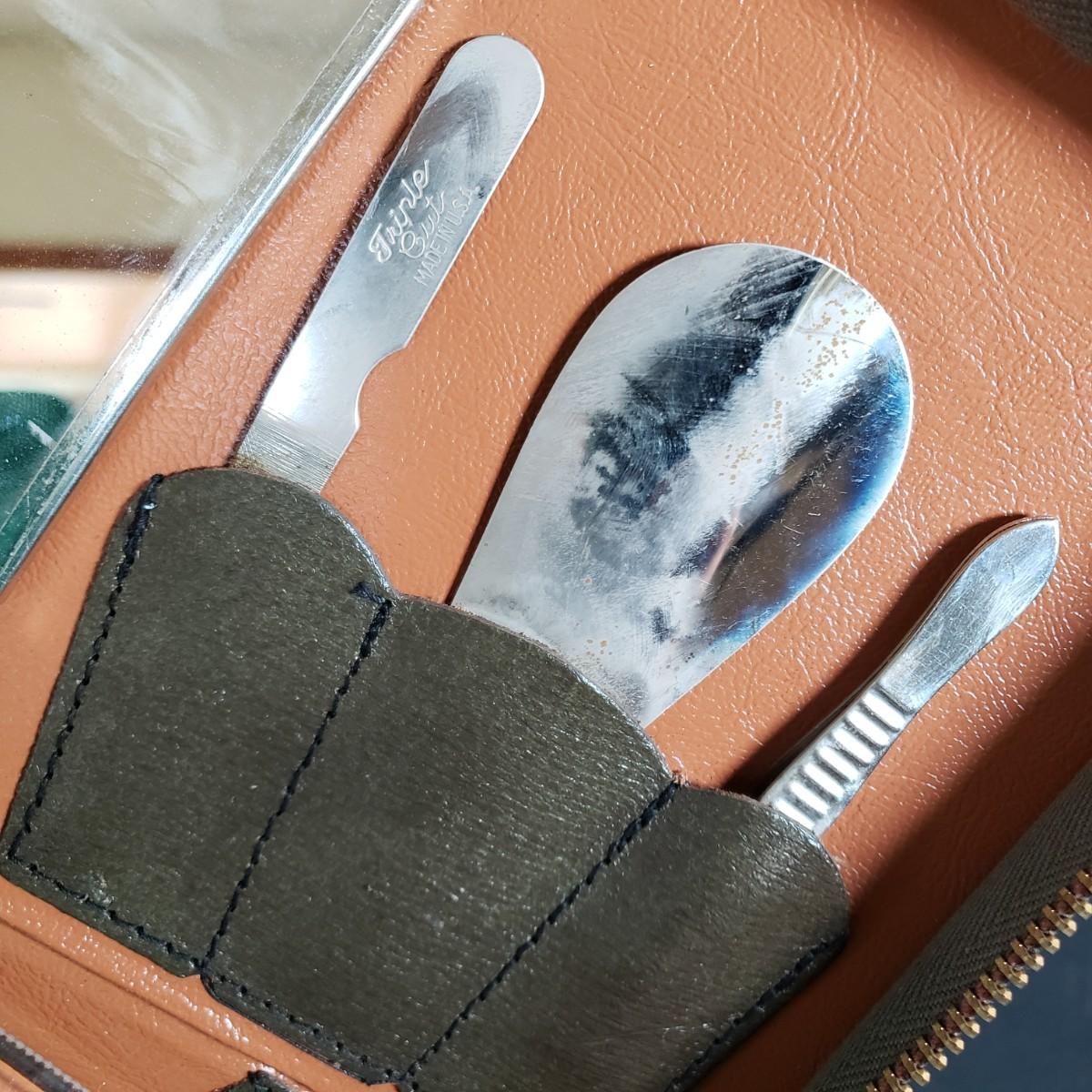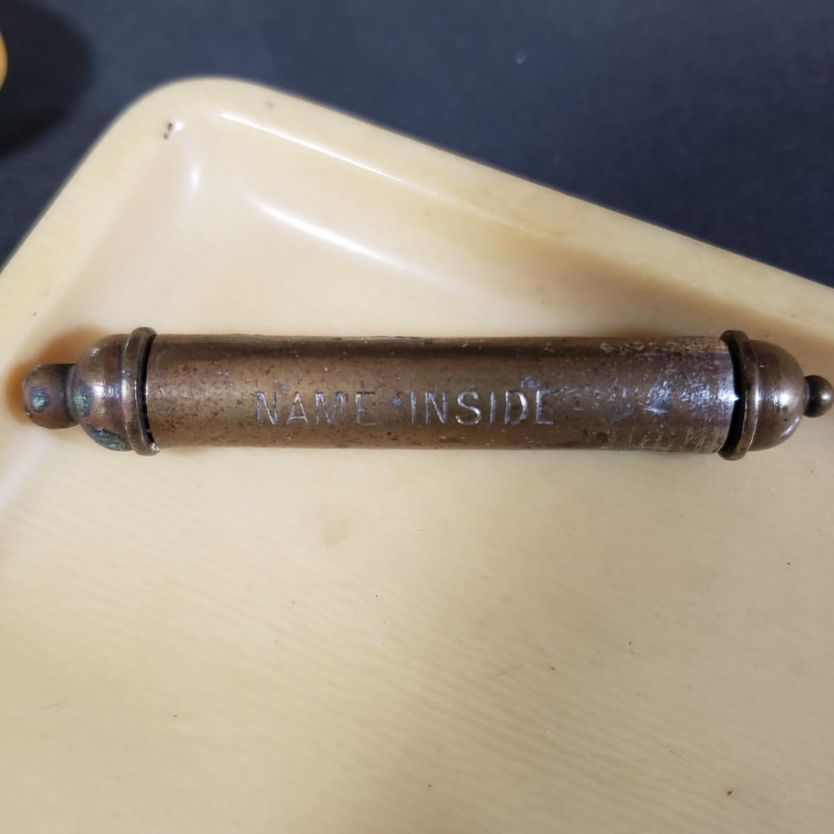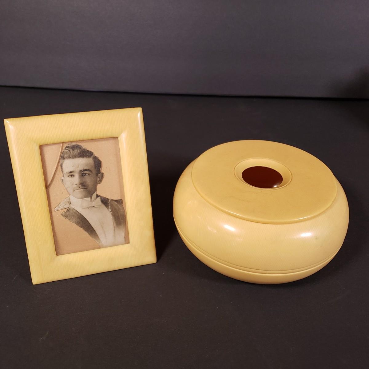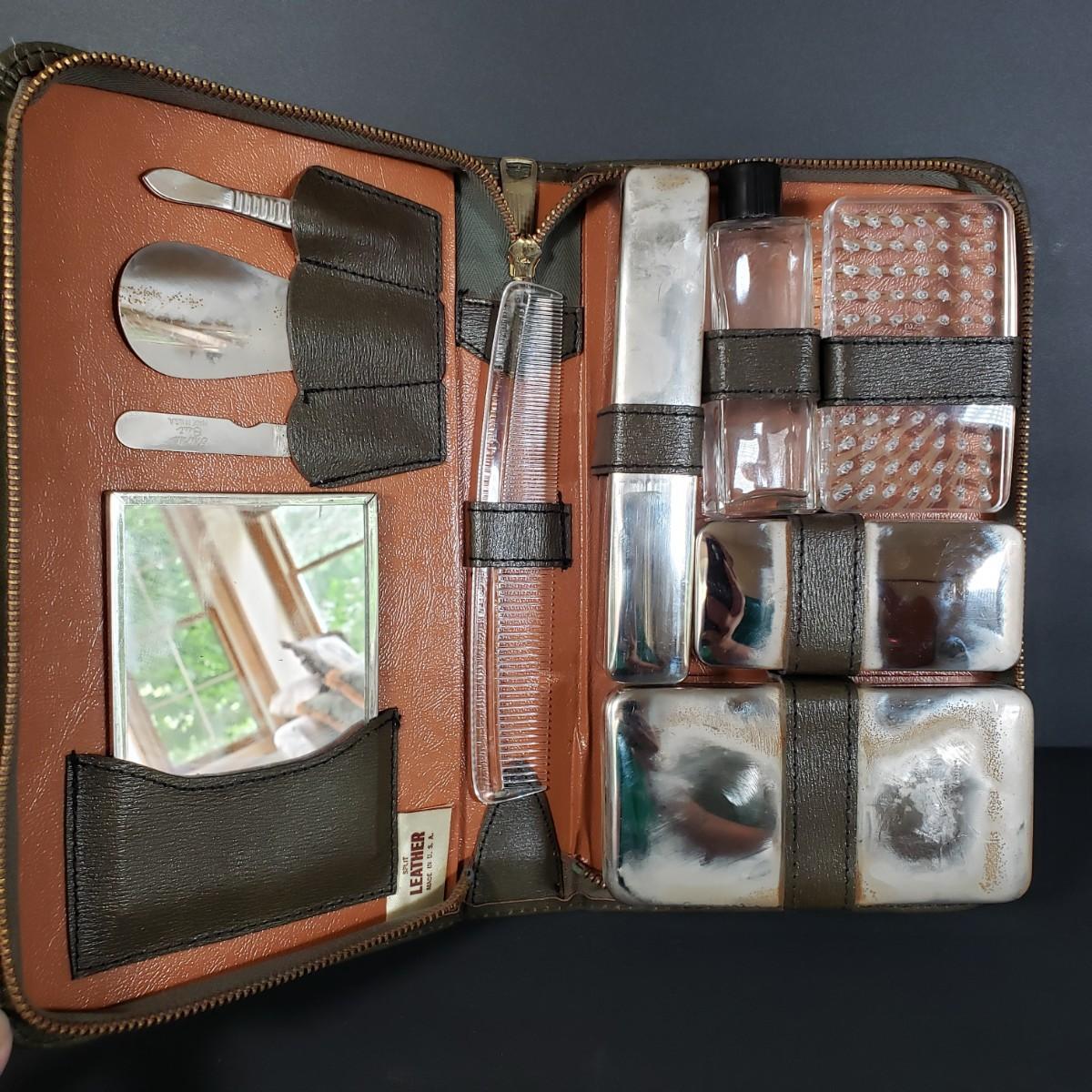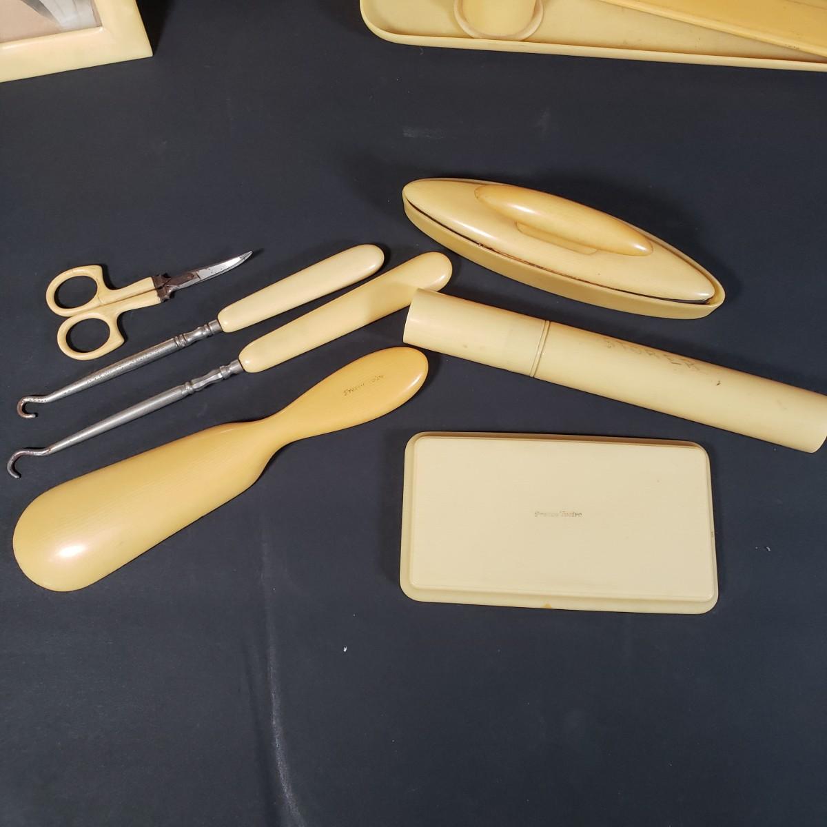 LOT 51L: Vintage Celluloid Ladies Vanity Set & Men's Travel Toiletry Set with Identity Indicator