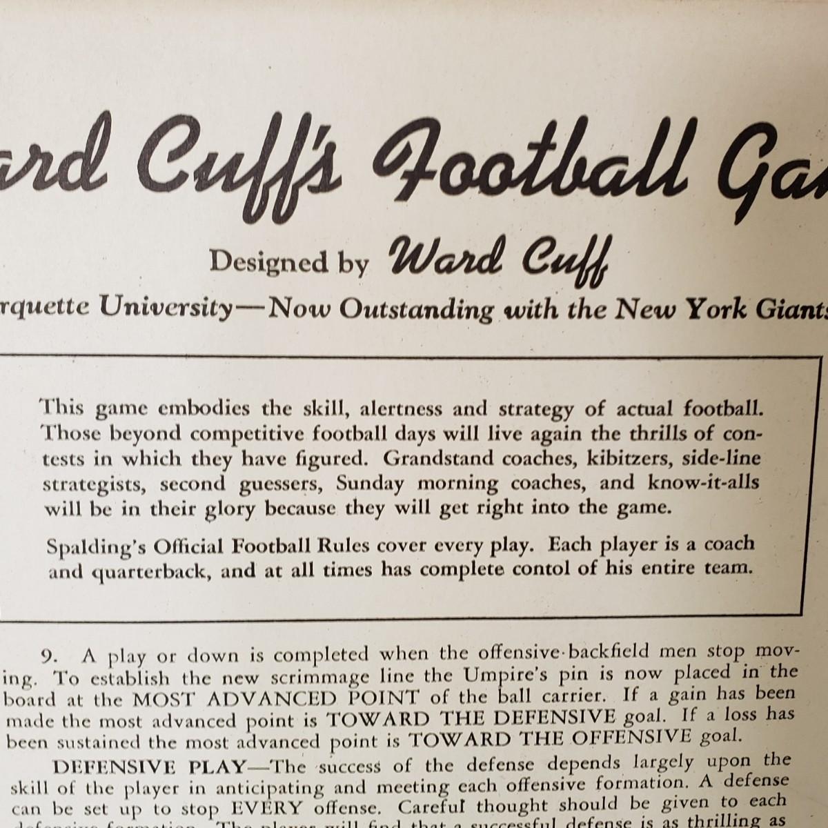LOT 56L: Ward Cuff's 1938 Strategic Football Game "Actual Men in Scrimmage"