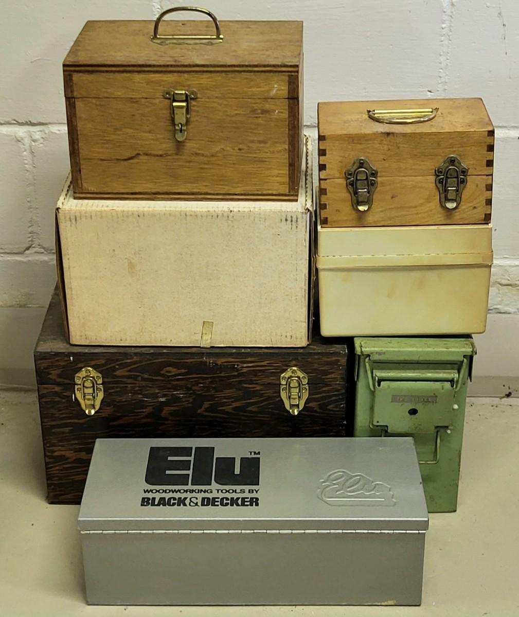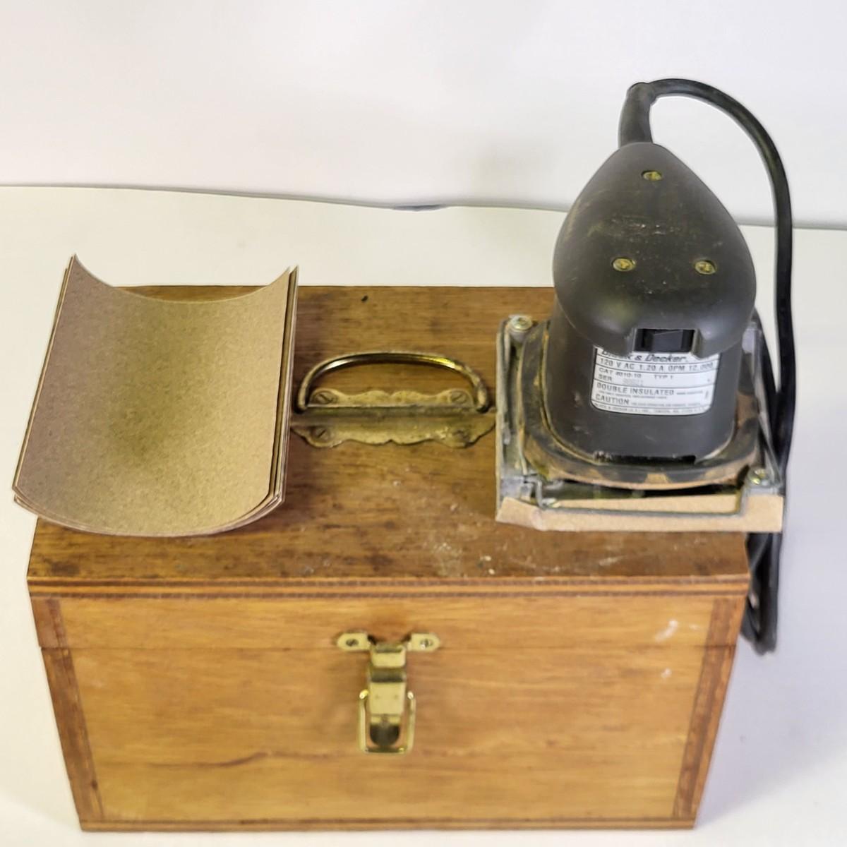 LOT 64B: Multi-Tool Lot Including Black & Decker Jointer/Spliner and Variety of Electric Sanding Tools with Chest of Extra Sandpaper and Drums