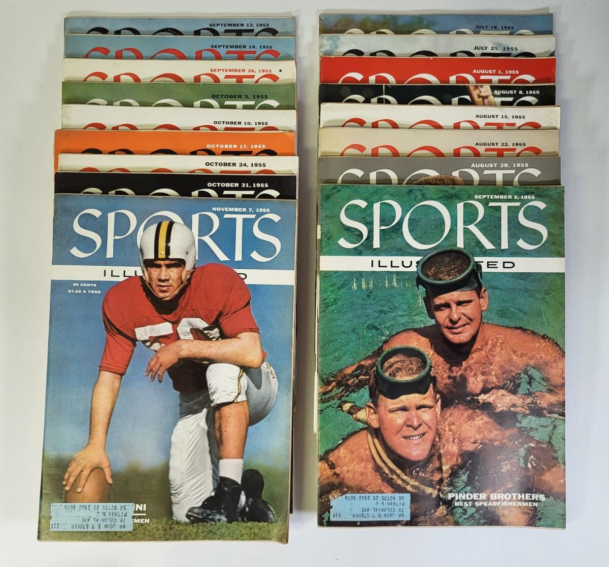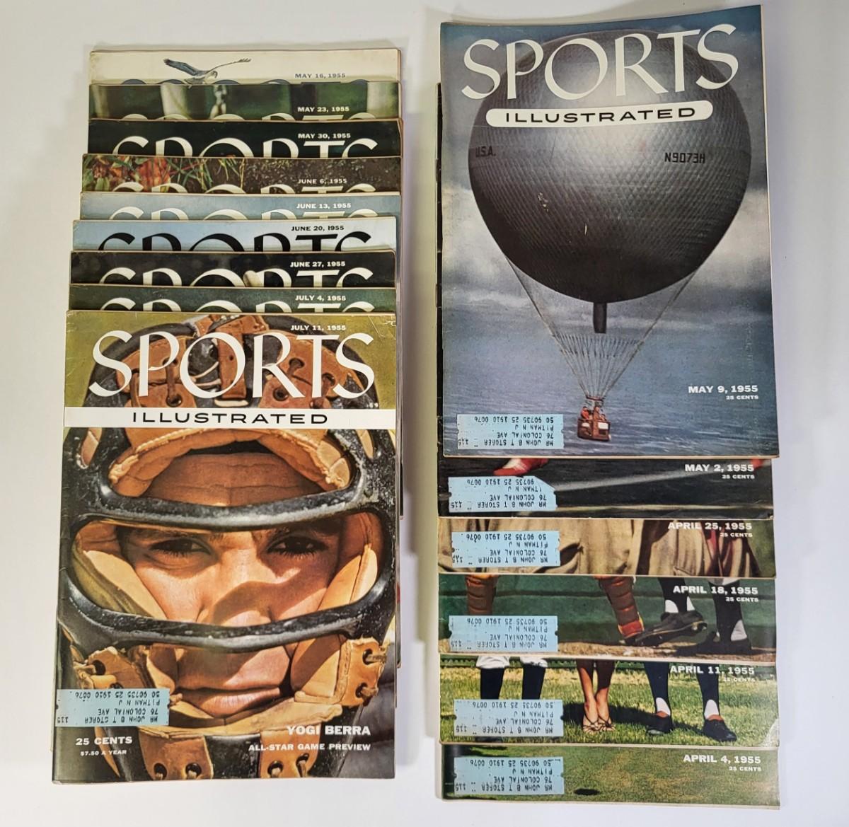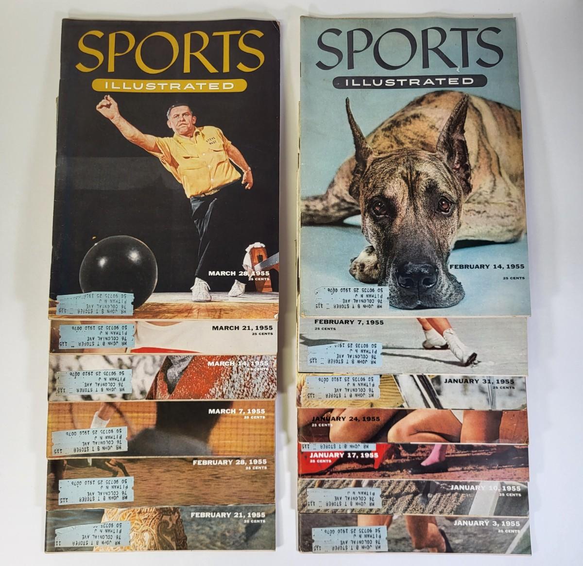 LOT 69P: Vintage Second Year Sports Illustrated Magazine Collection from January to November 1955