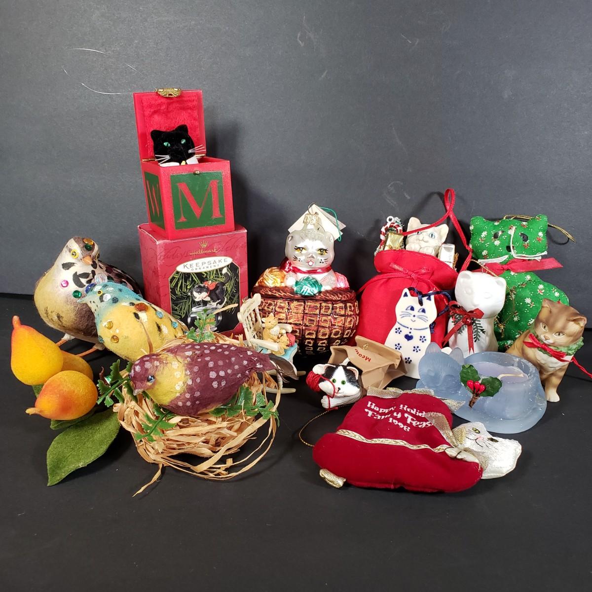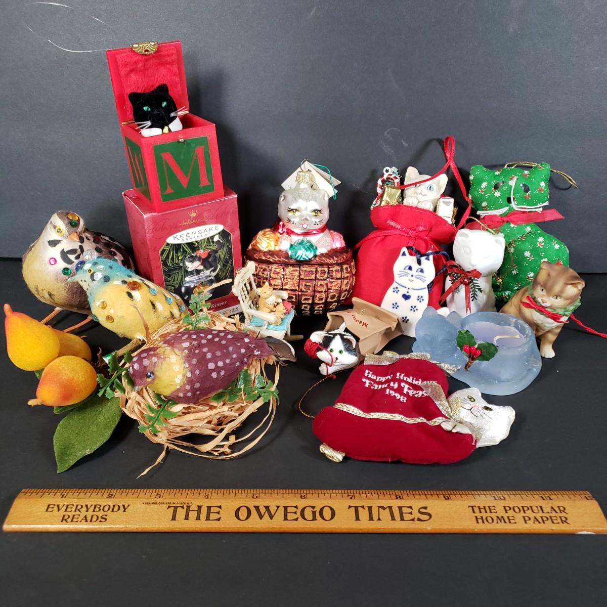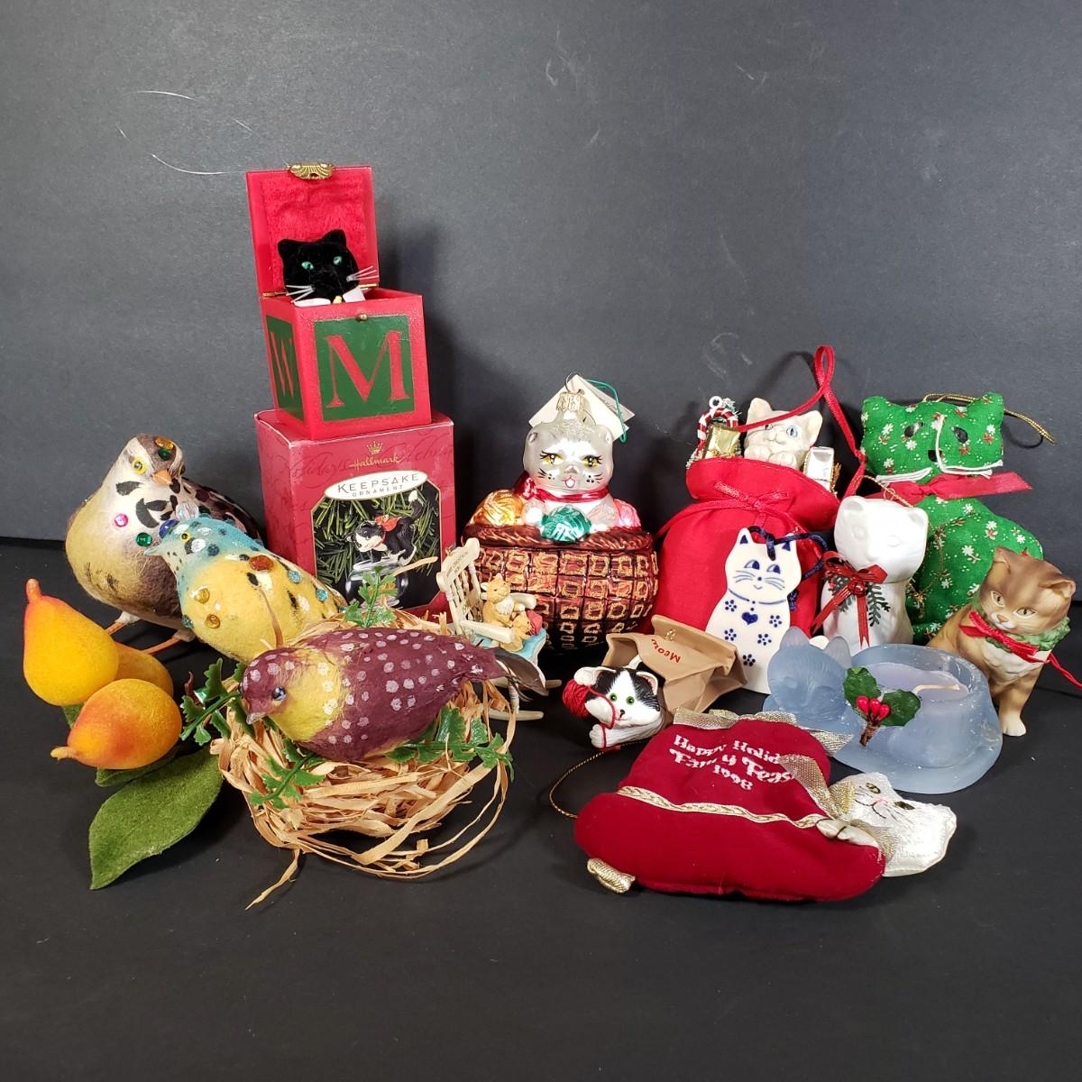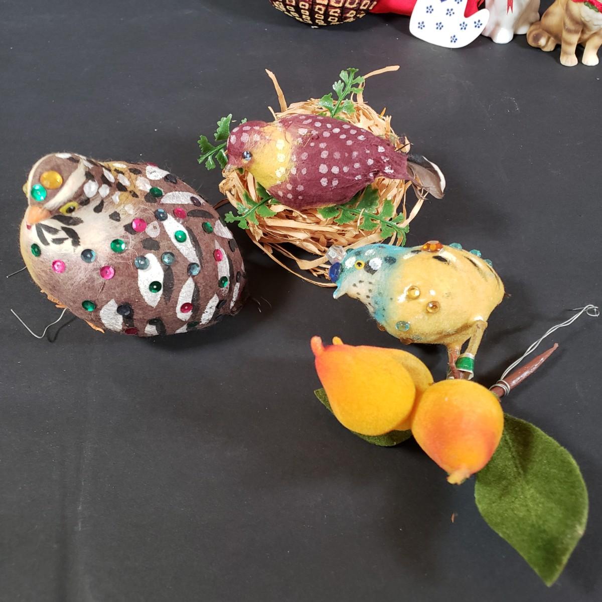 LOT 90P: Vintage Christmas Decorations; Radko, Hallmark, Clip on Beaded Birds, & More