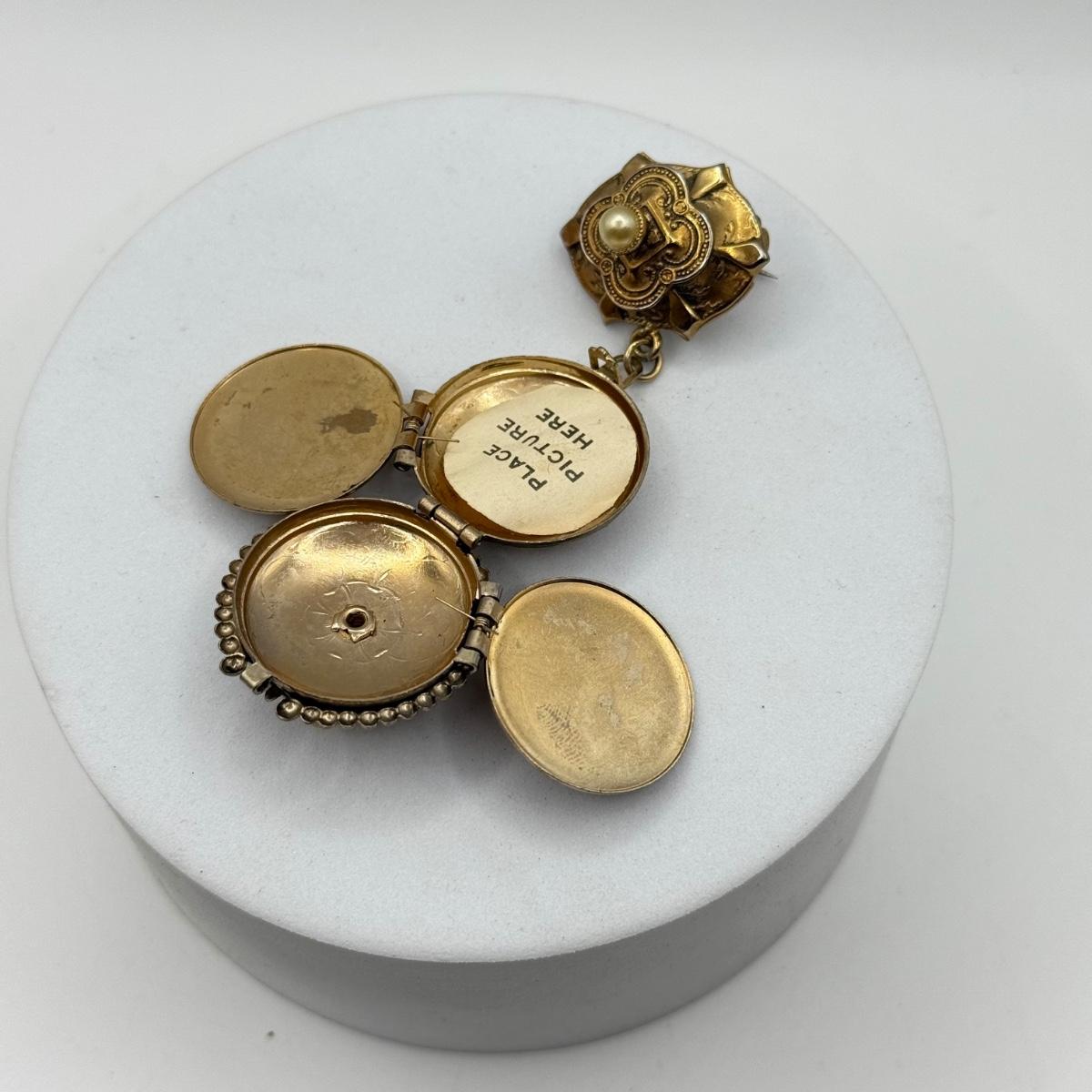 LOT 102J: Vintage Locket Pin, Coro Bow Pin & Goldtone Locket
