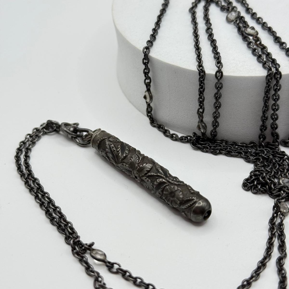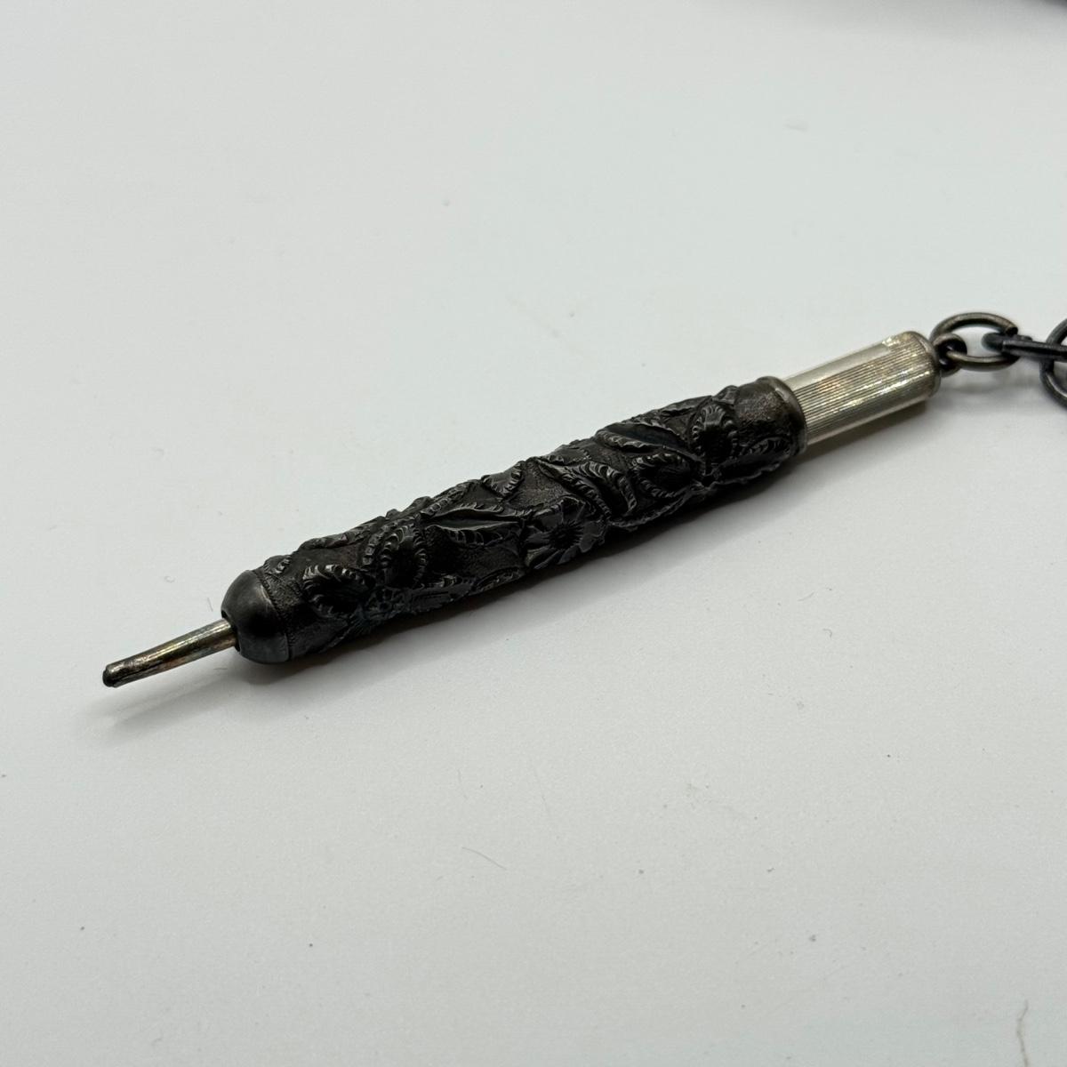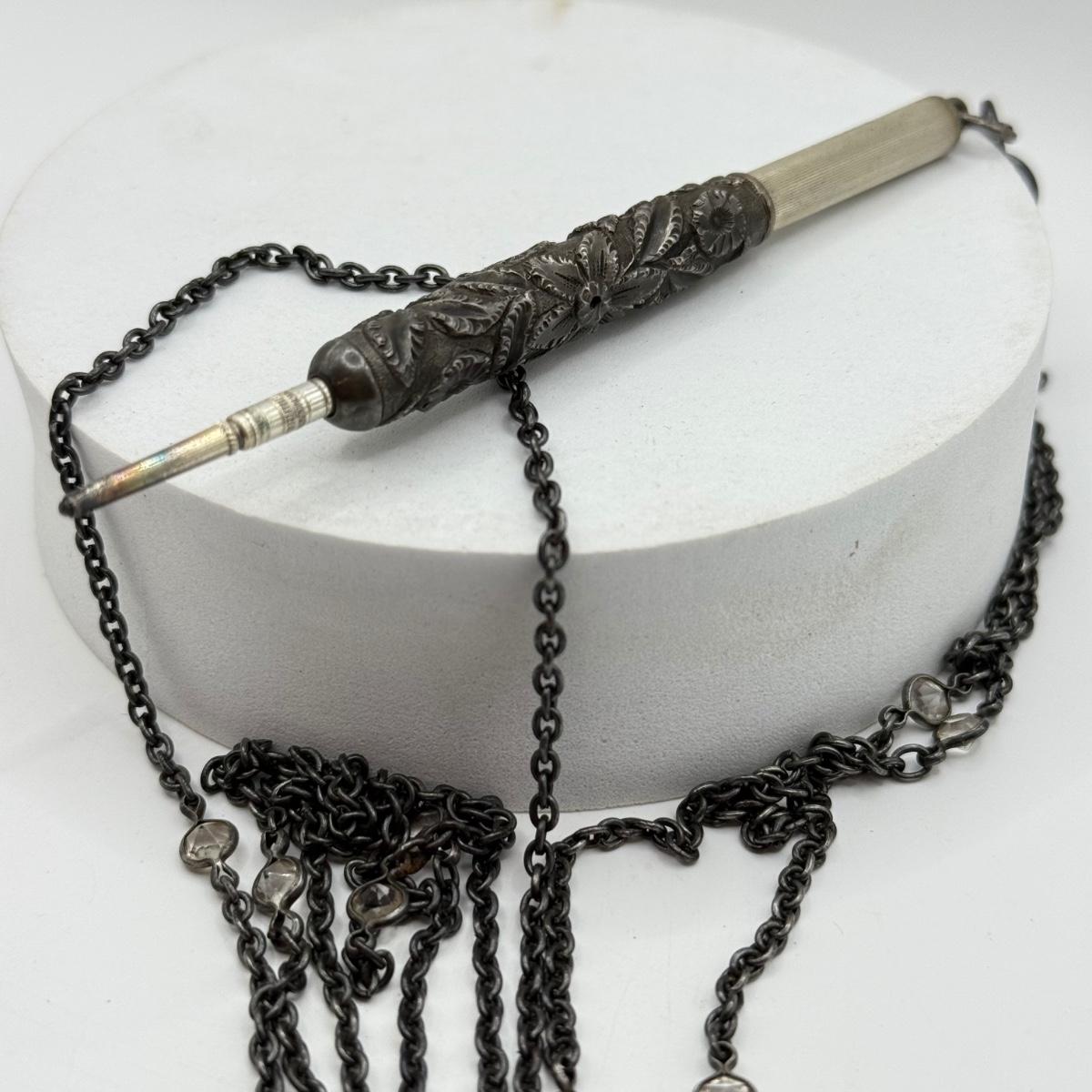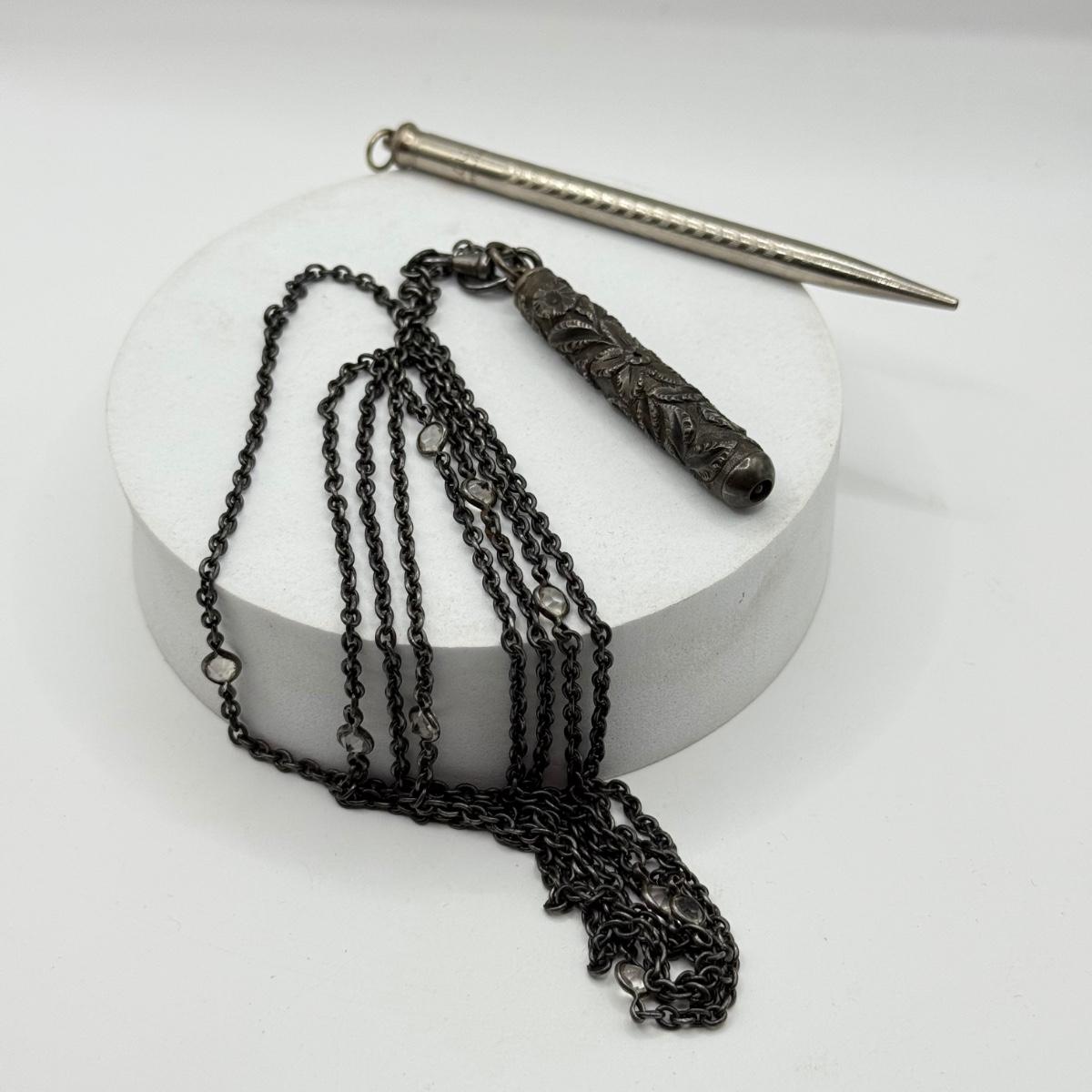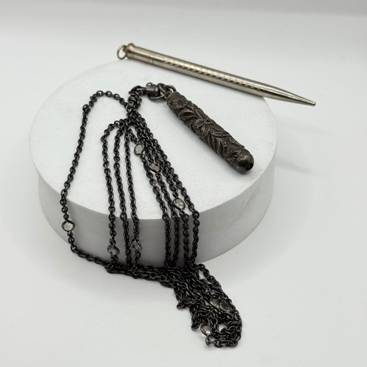 LOT 106H: Vintage Sterling Silver Lead Pencil Necklace (11.7g) & Etched Redint Lead Pencil