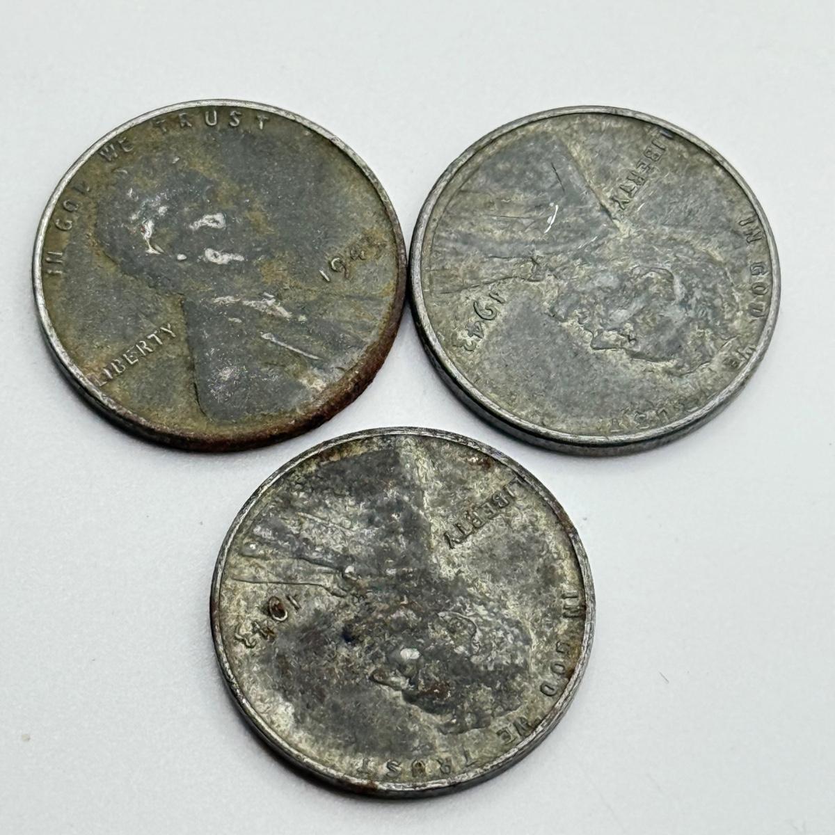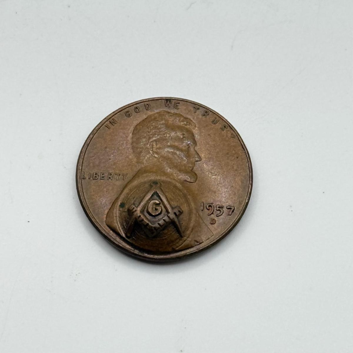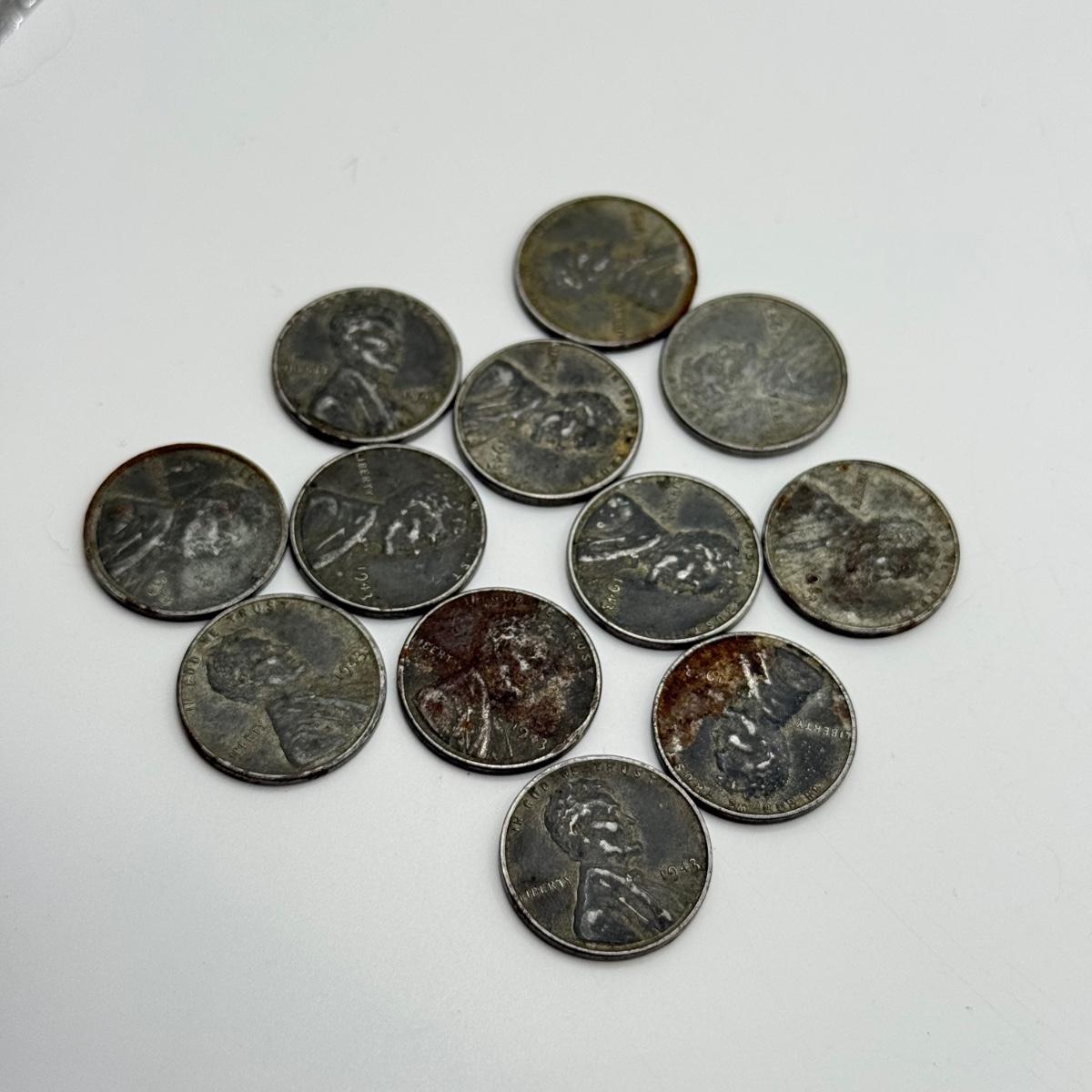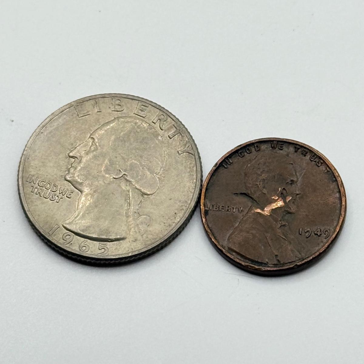 LOT 109J: US Coin Collection: 13 Steel Pennies (1943), 1949 Penny and 1965 Quarter w/ No Mint Marks, Buffalo Nickels (3), Mason Penny & More