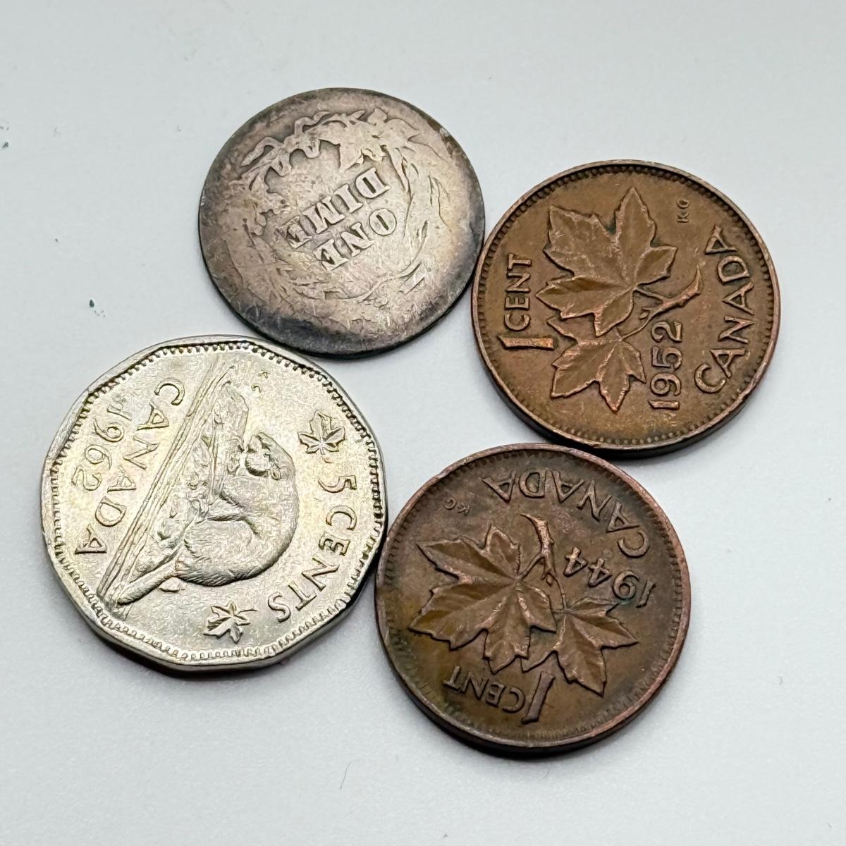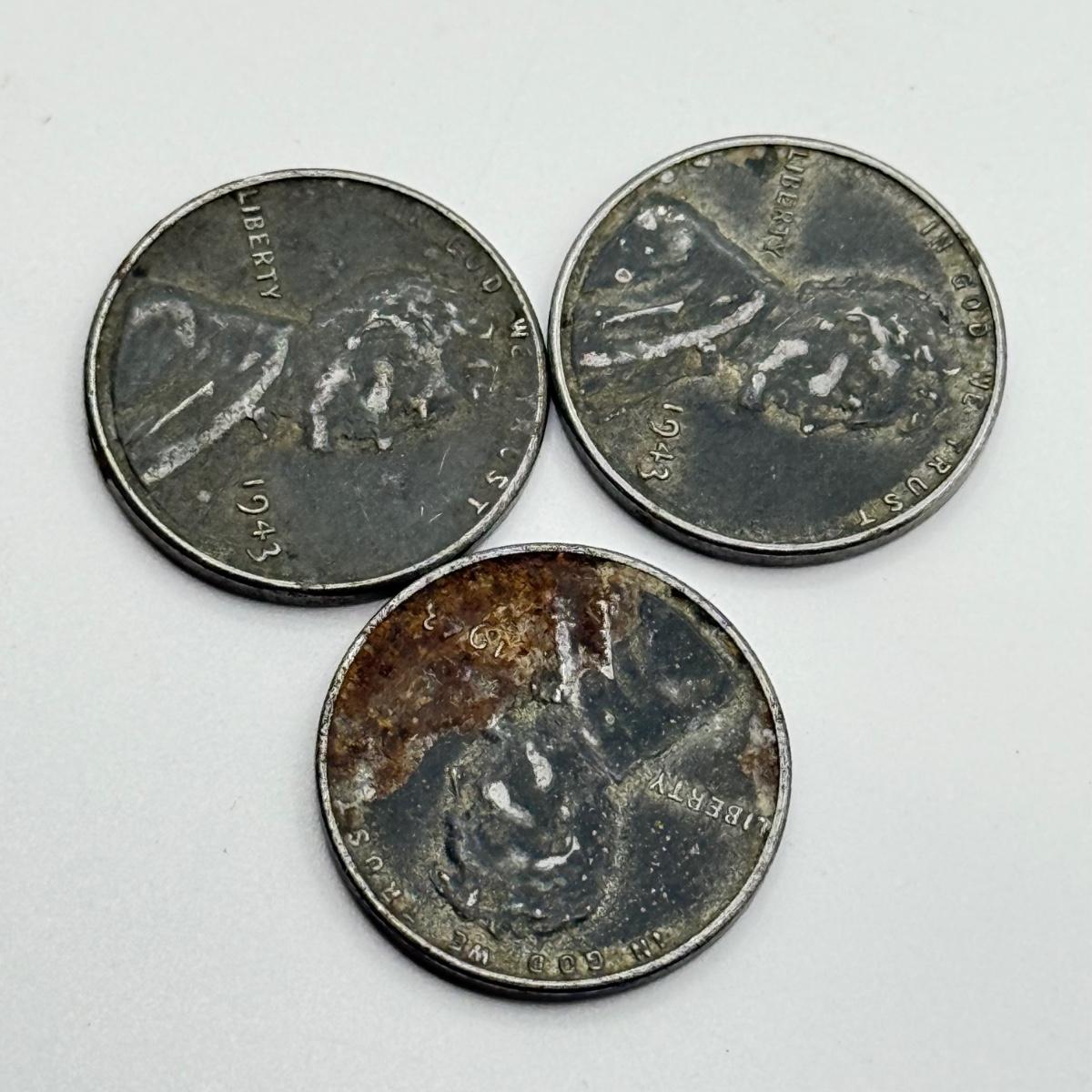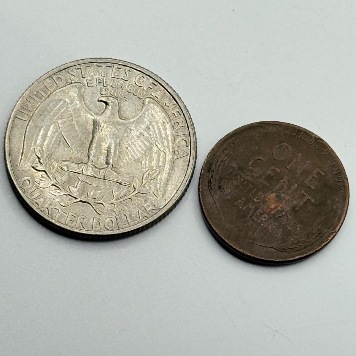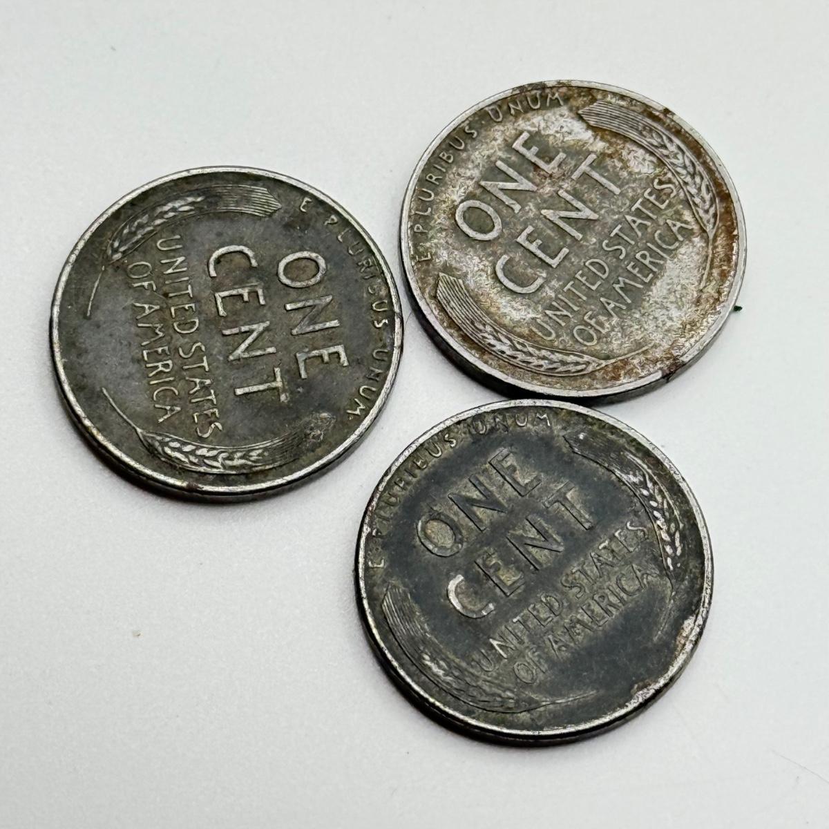 LOT 109J: US Coin Collection: 13 Steel Pennies (1943), 1949 Penny and 1965 Quarter w/ No Mint Marks, Buffalo Nickels (3), Mason Penny & More