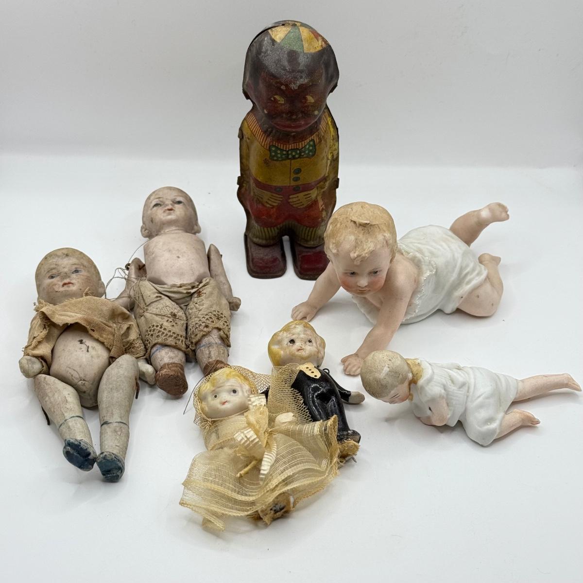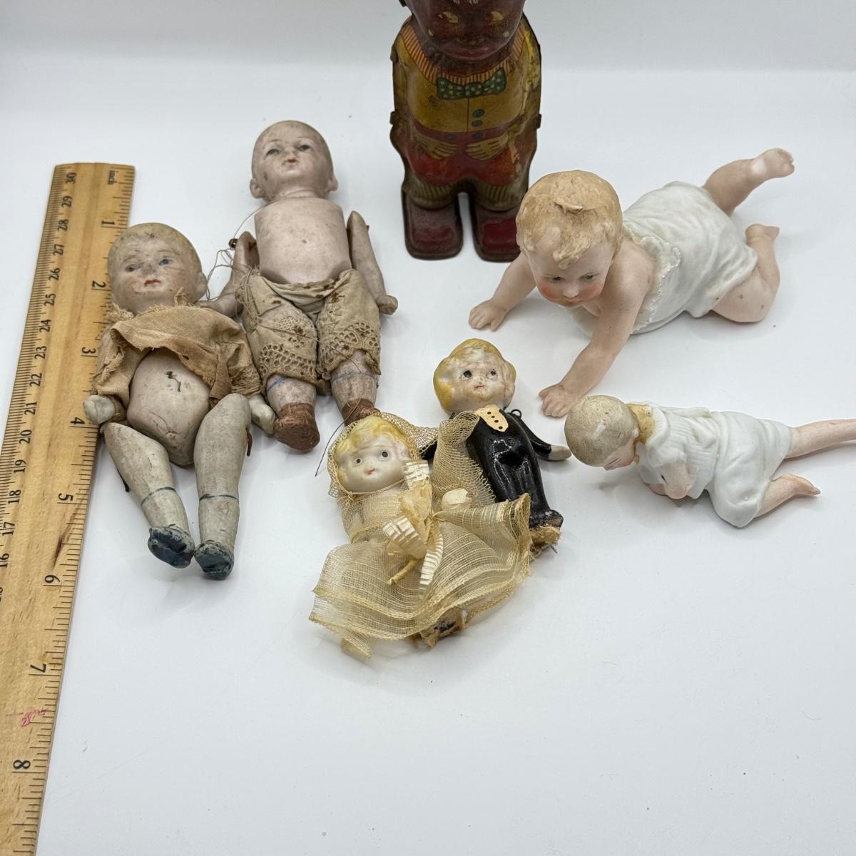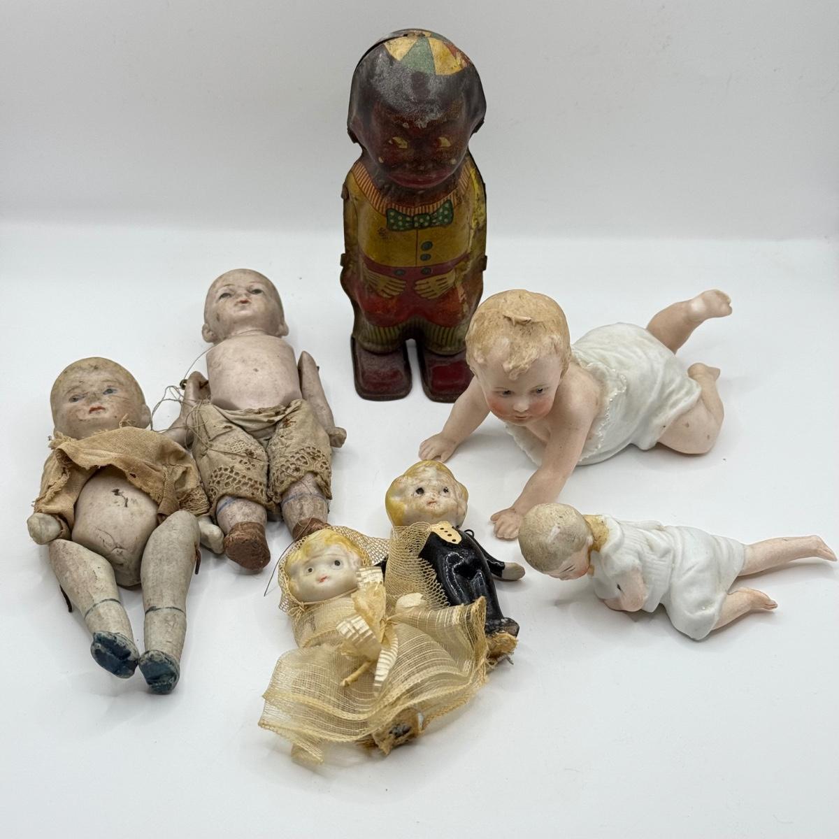 LOT 119K: Vintage Wind Up Tin Litho Toy & Ceramic Babies