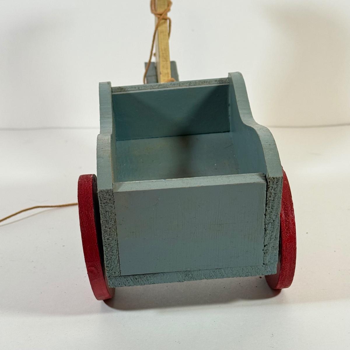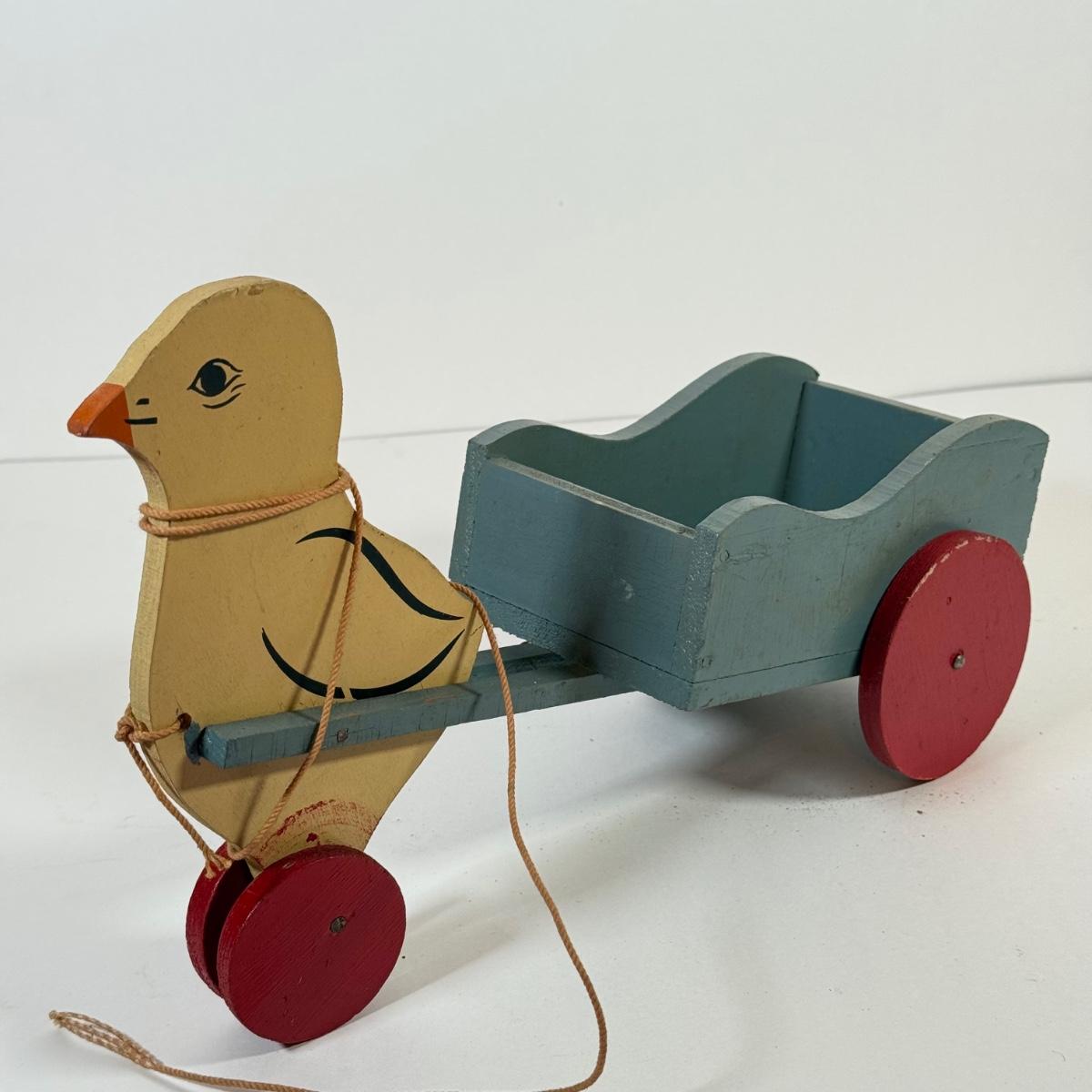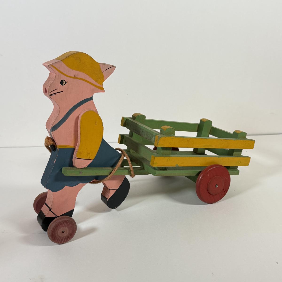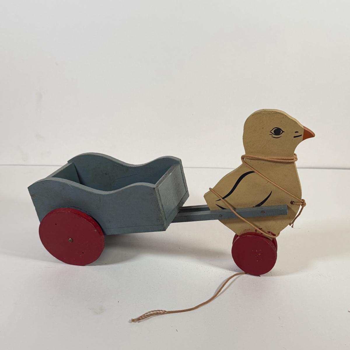 LOT 123L: Vintage Wooden Pull Toys w/ Wagons - one stamped "Toddler Toys"