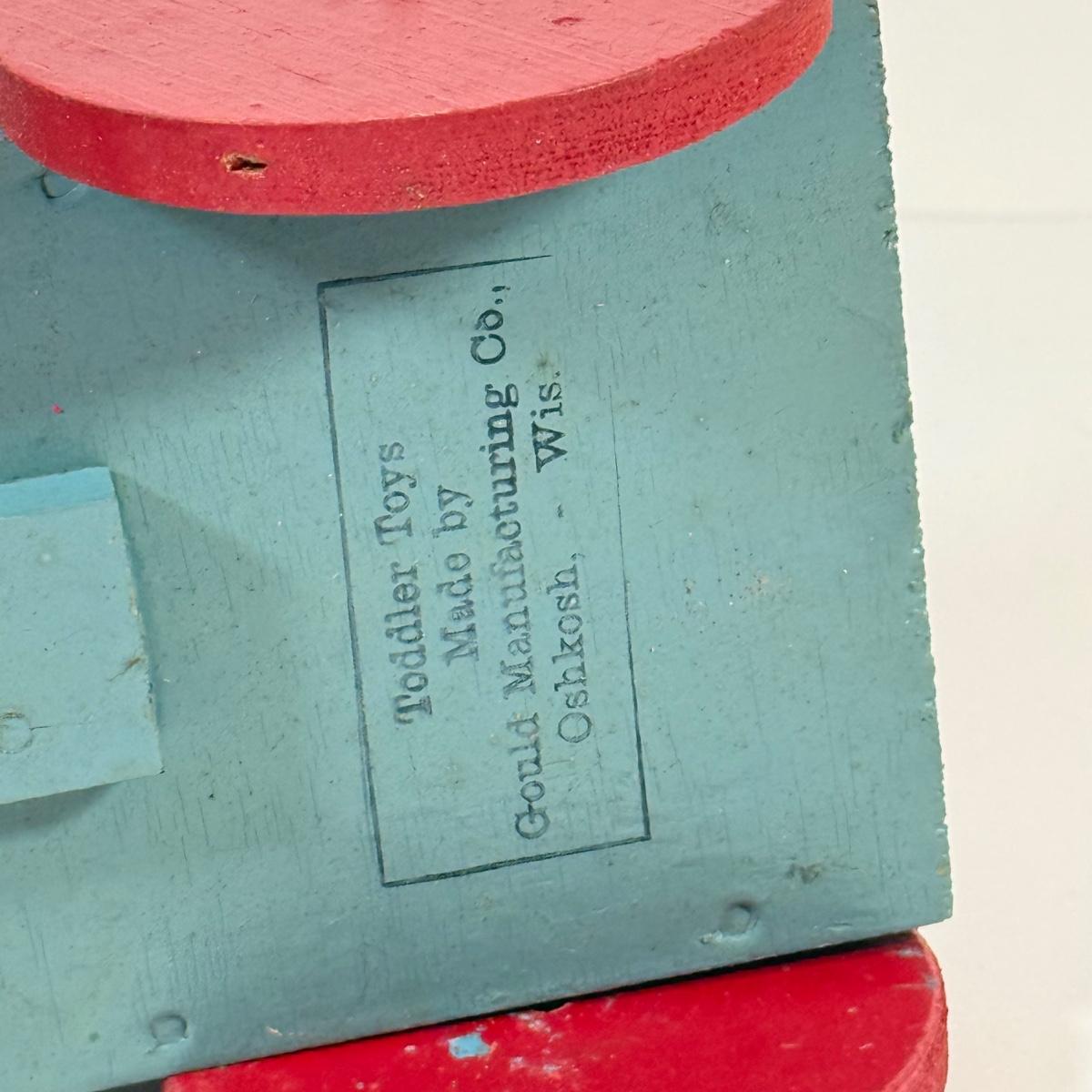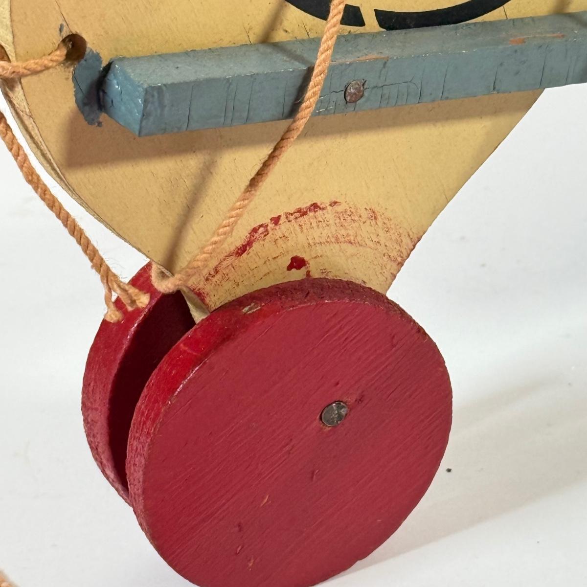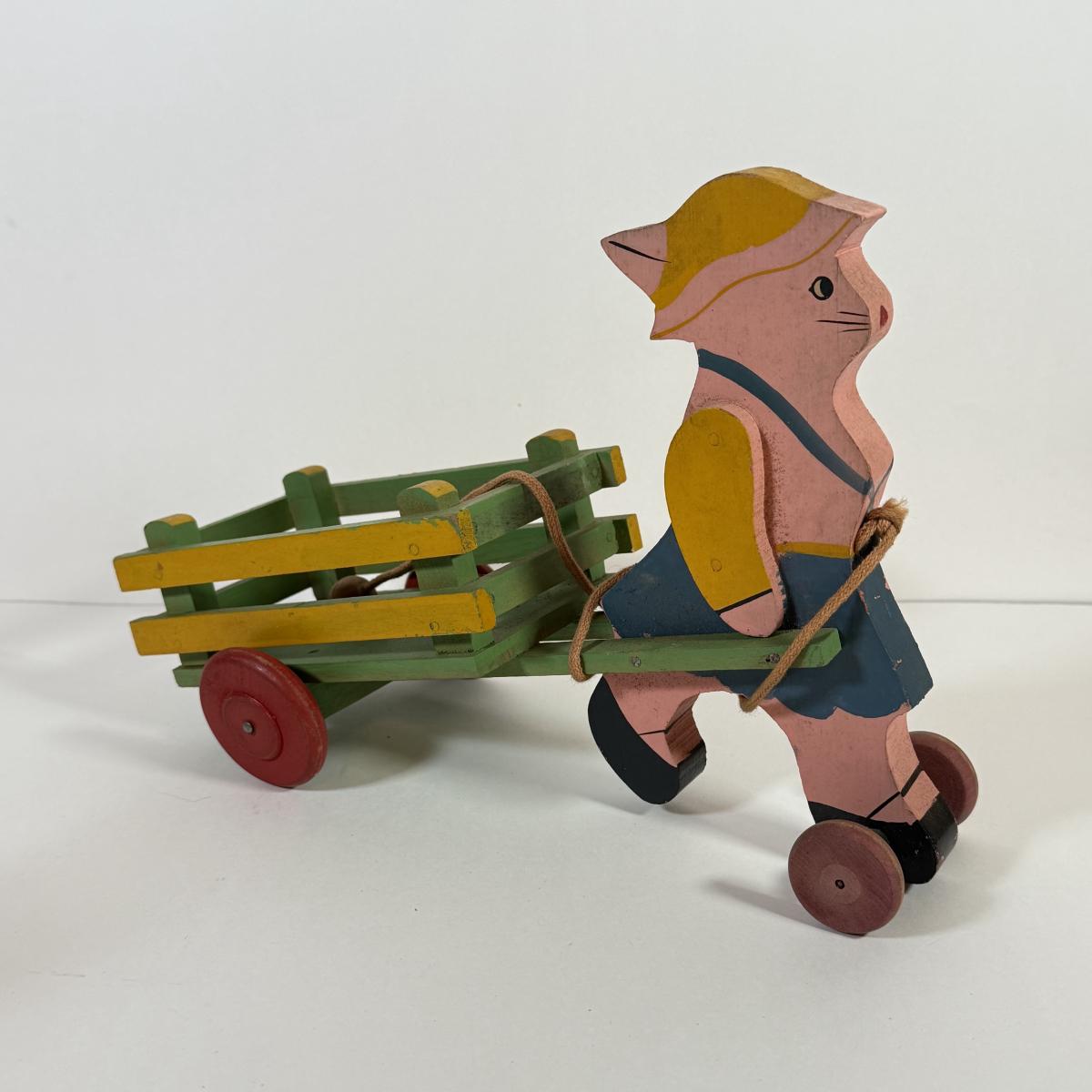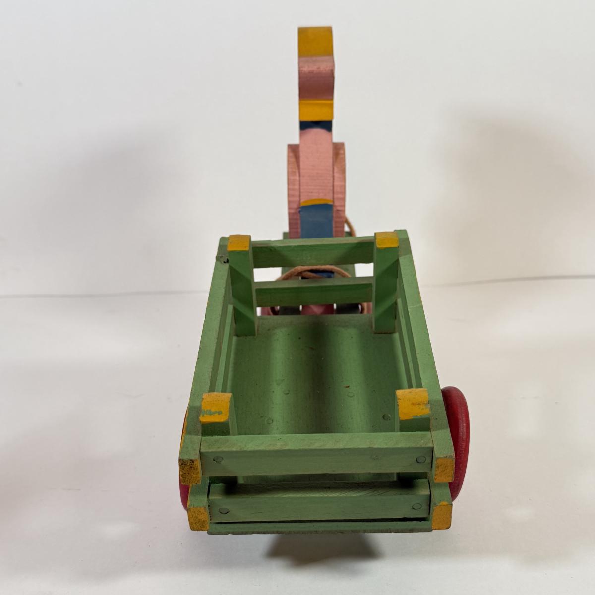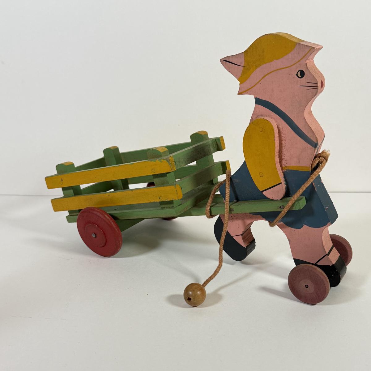 LOT 123L: Vintage Wooden Pull Toys w/ Wagons - one stamped "Toddler Toys"