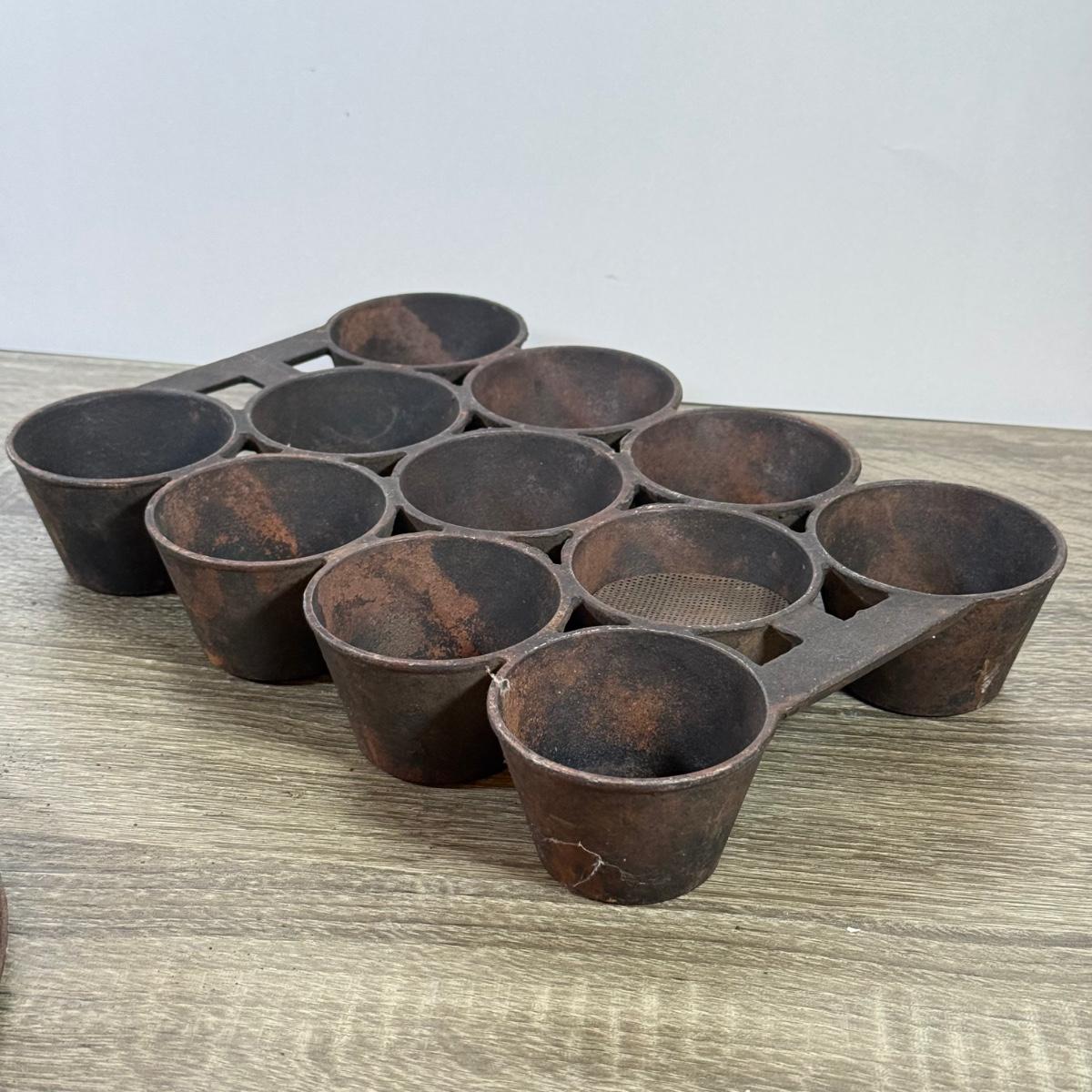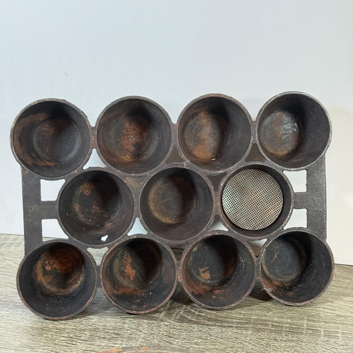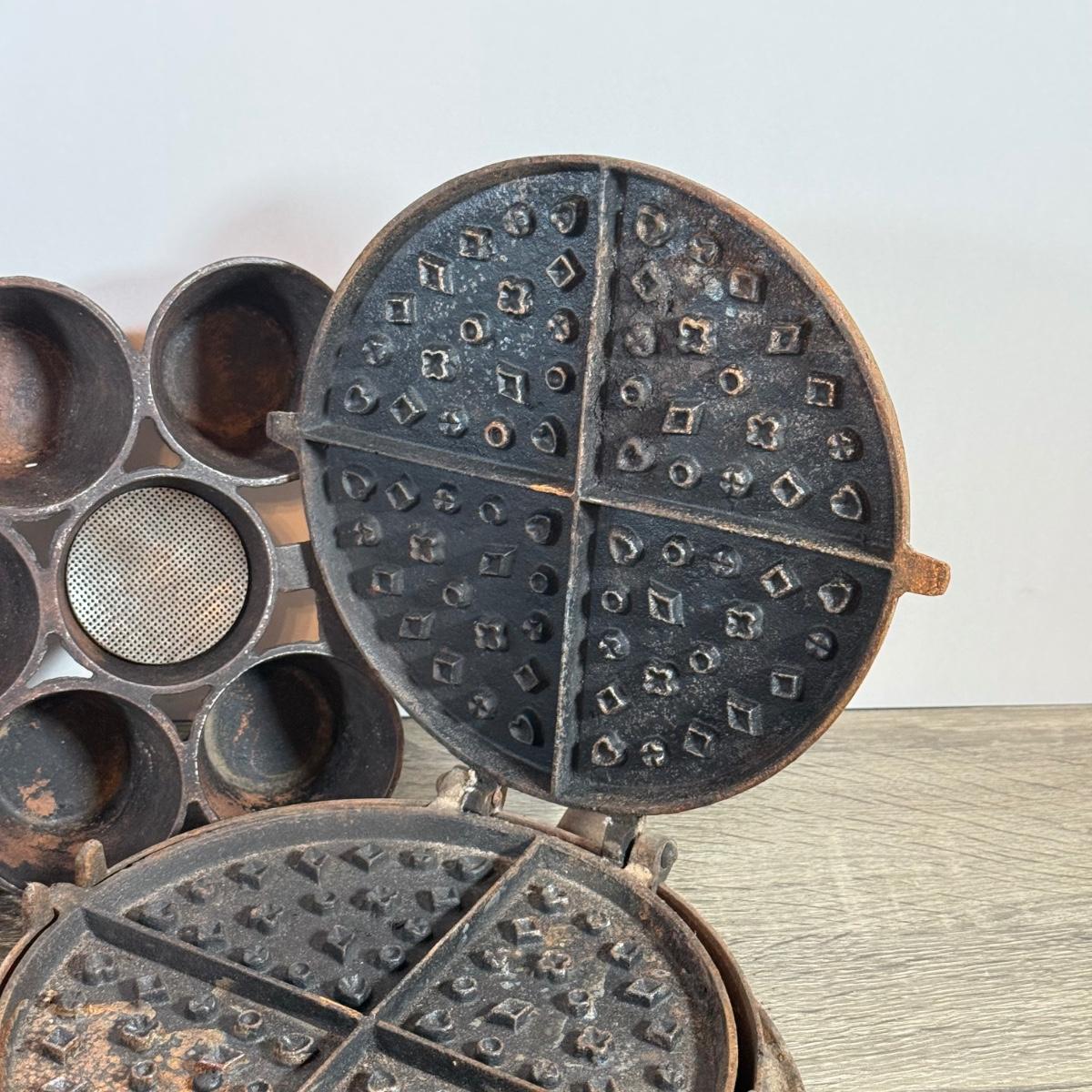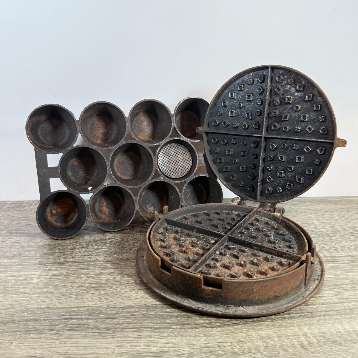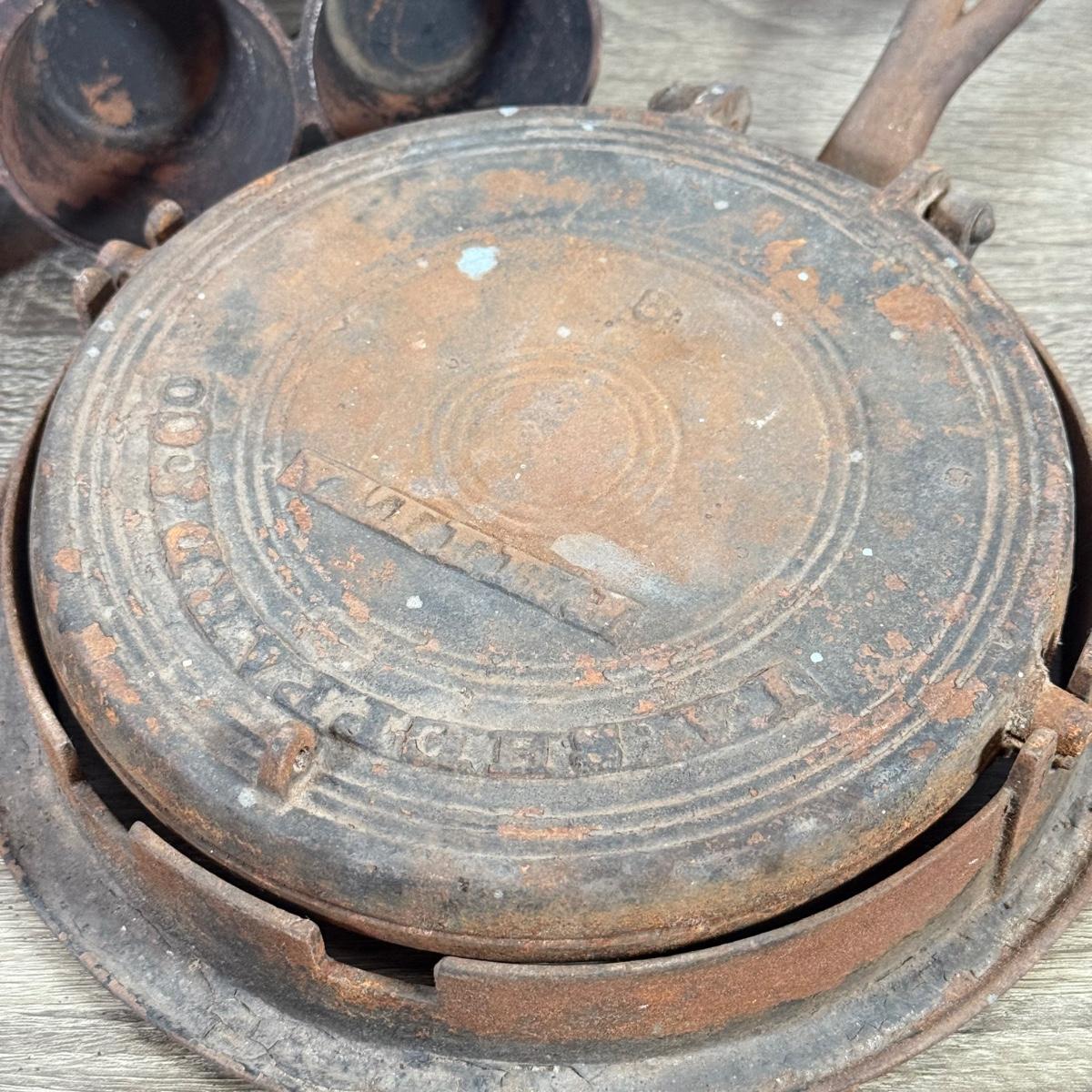 LOT 134L: Vintage Cast Iron Muffin Pan & Waffle Maker