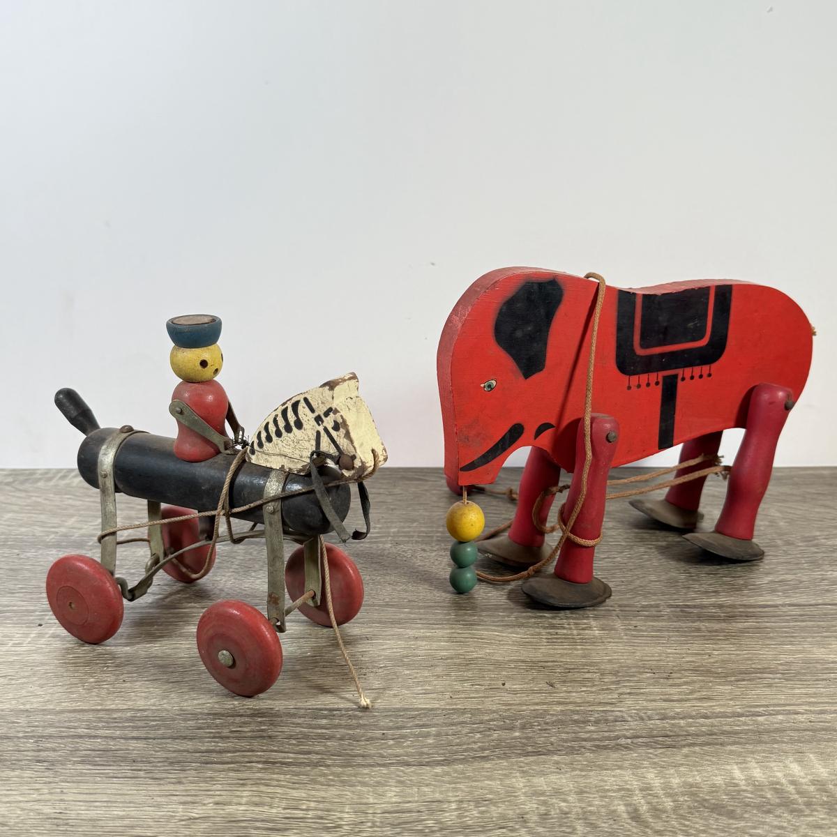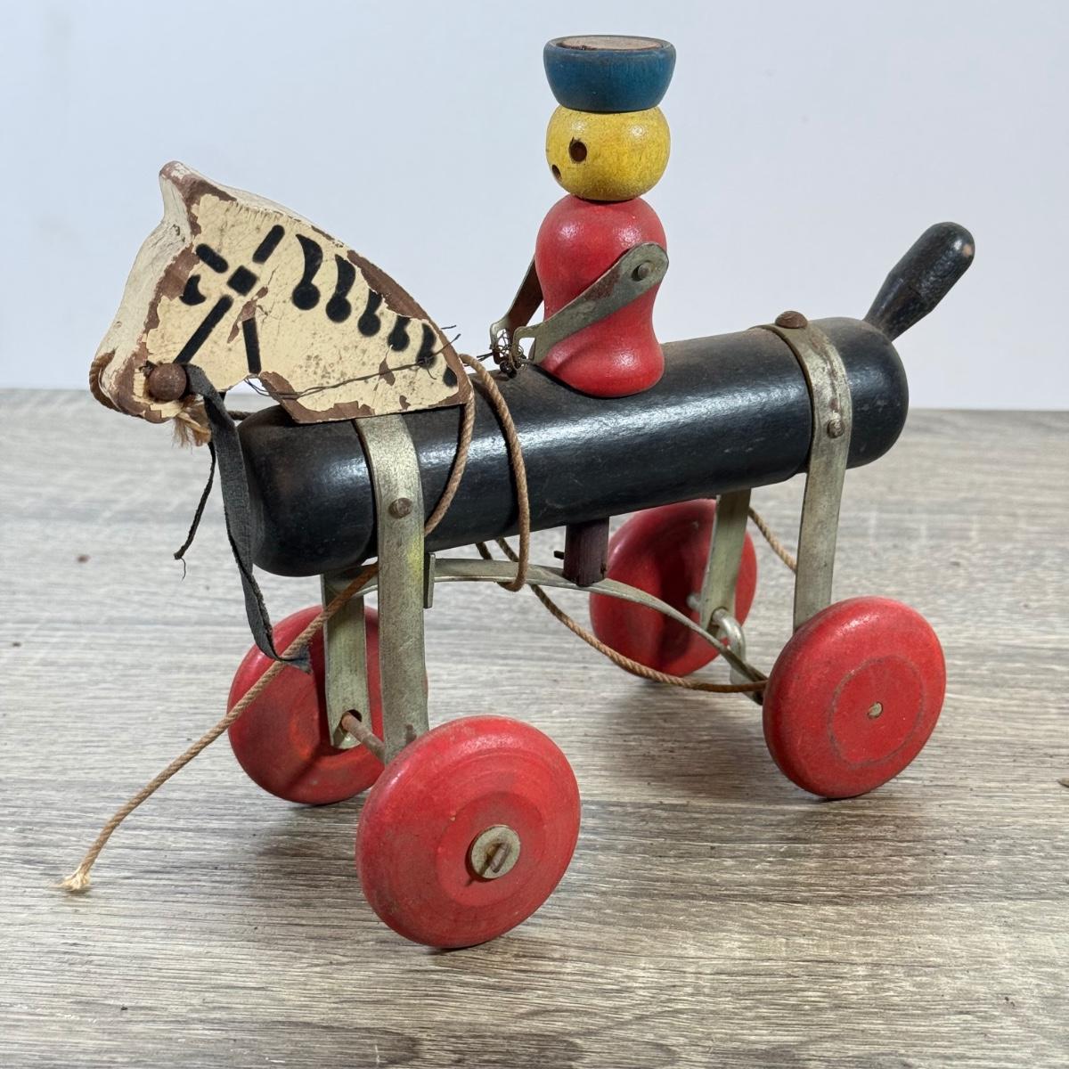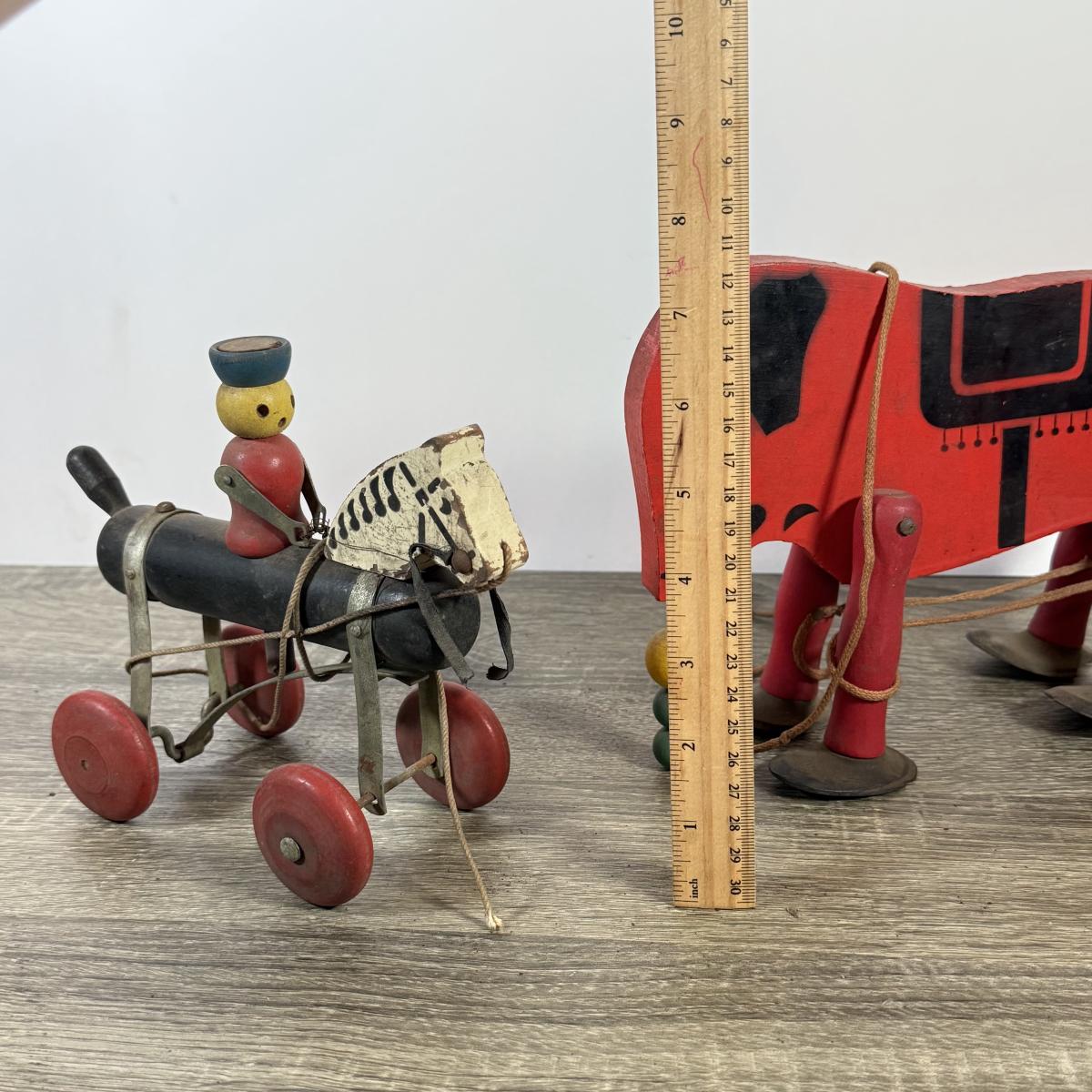 LOT 136L: Vintage Wooden Pull Toys incl. Hustler Toy Corporation USA