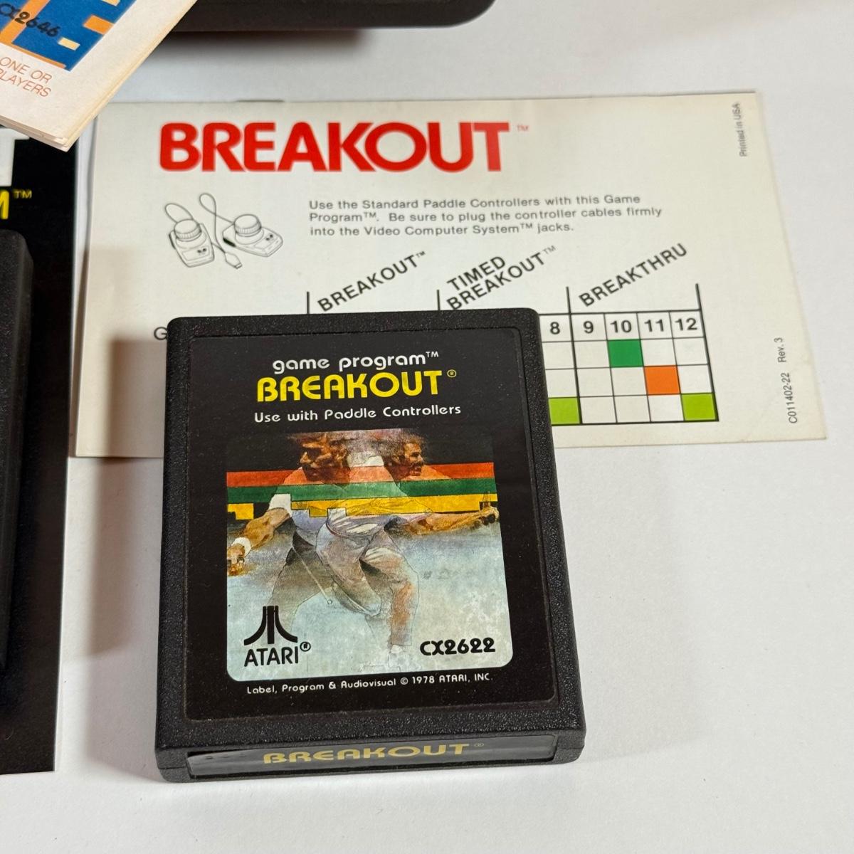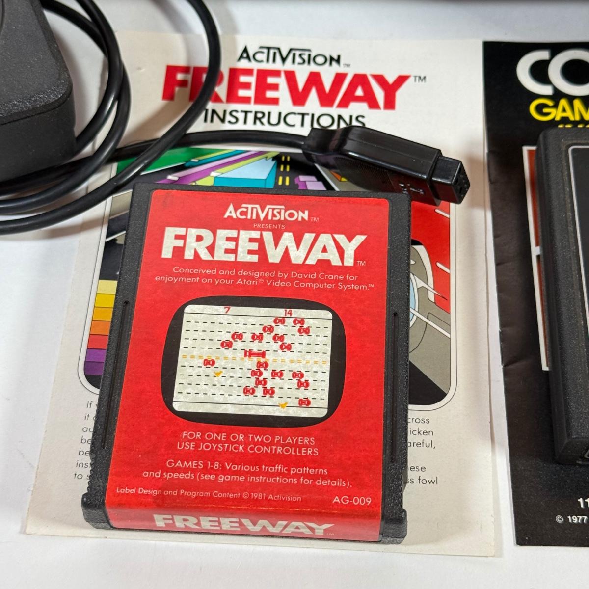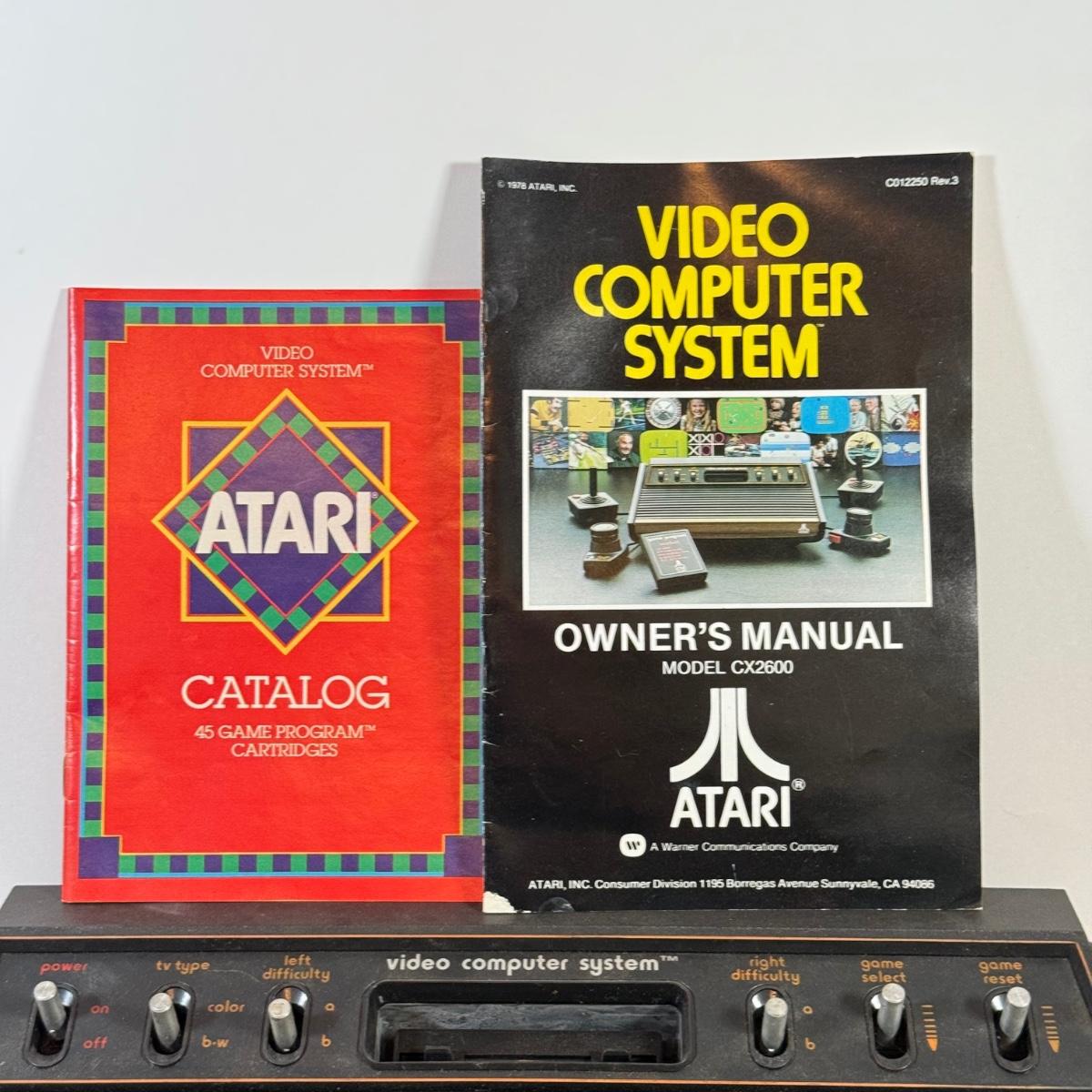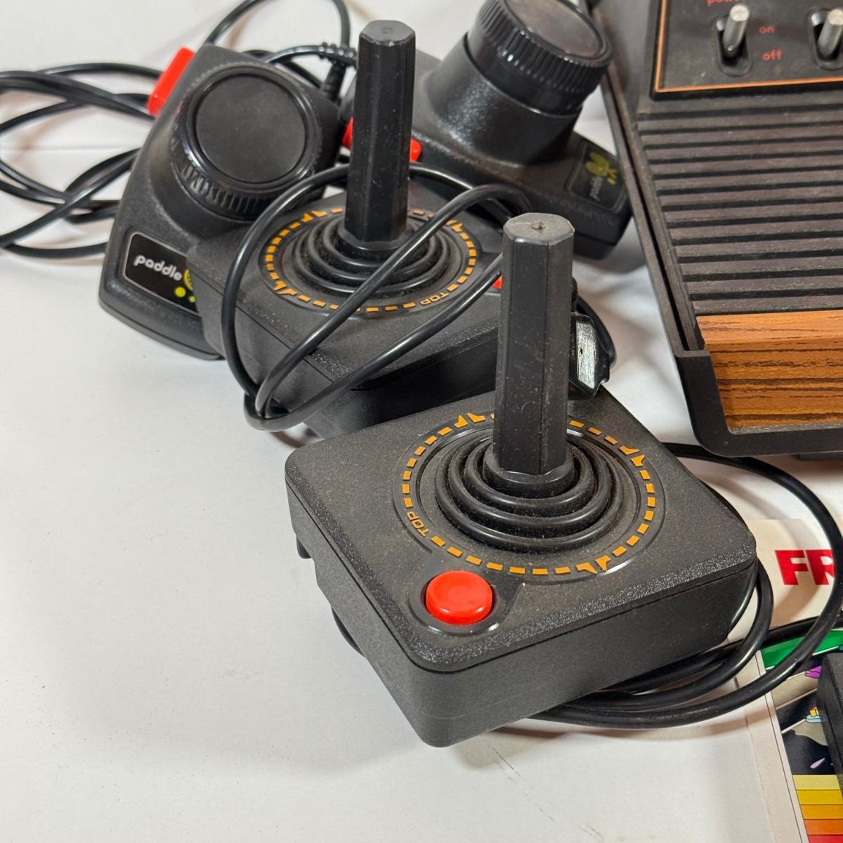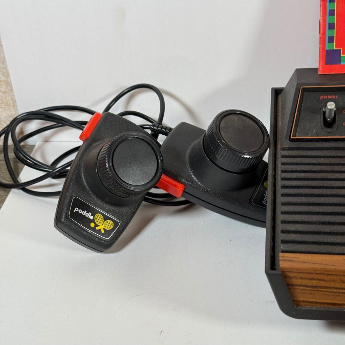 LOT 137L: Vintage 1980s Atari Video Computer System Model CX-2600 w/ Manual, 2 Joysticks, 2 Paddles, Power Cord & 4 Games w/ Booklets: Pacman, Breakout, Combat & Freeway