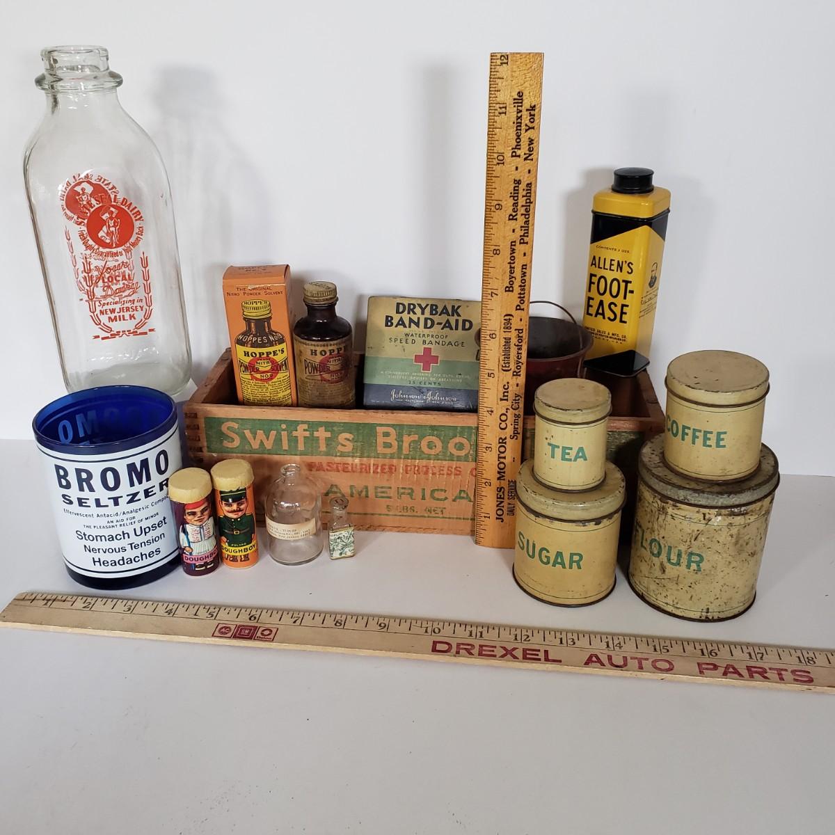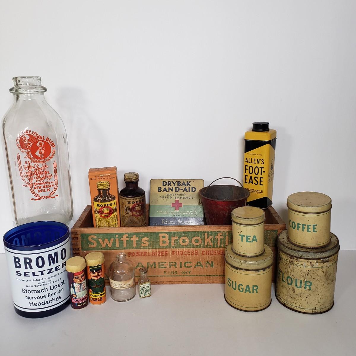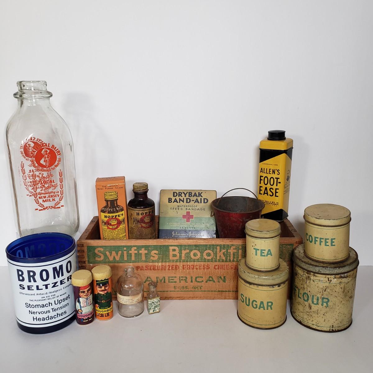 LOT 144L: Antique & Vintage Bottles, Tins, Household Items & More