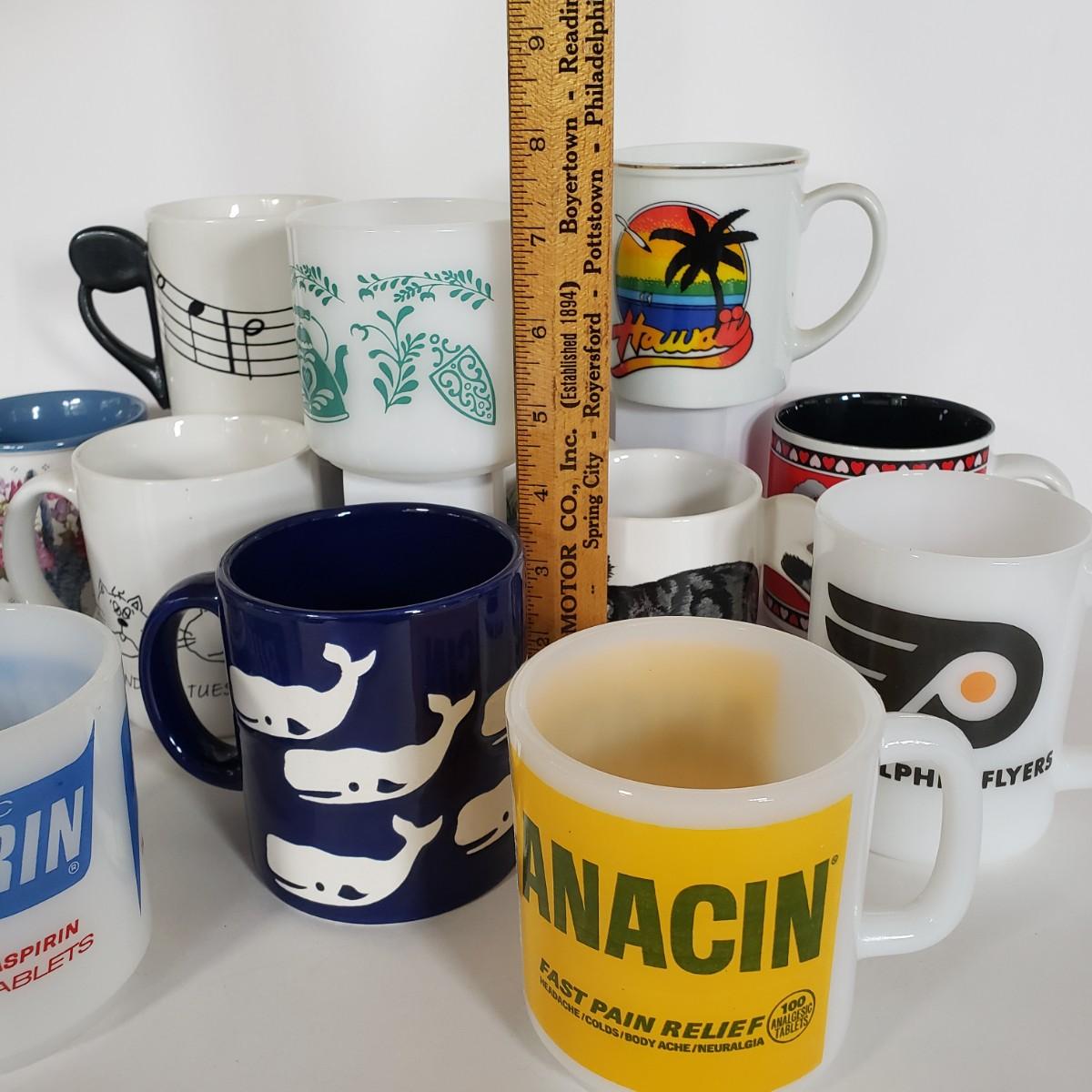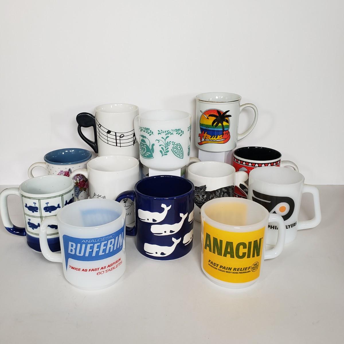 LOT 145P: Vintage Mug Collection; Milk Glass Advertising, Waechtersbach, Federal Glass & More