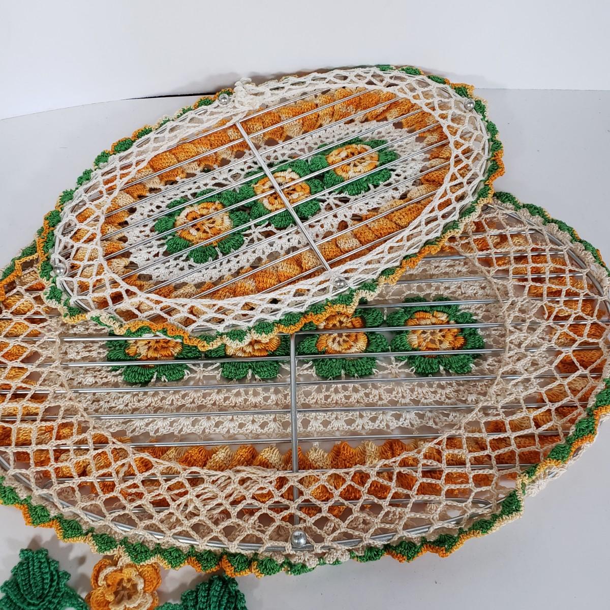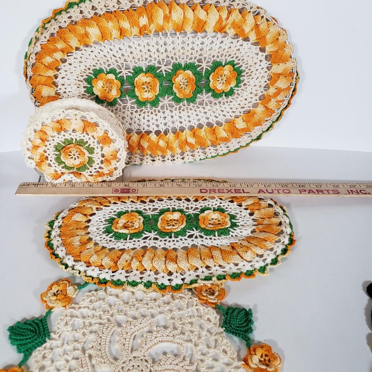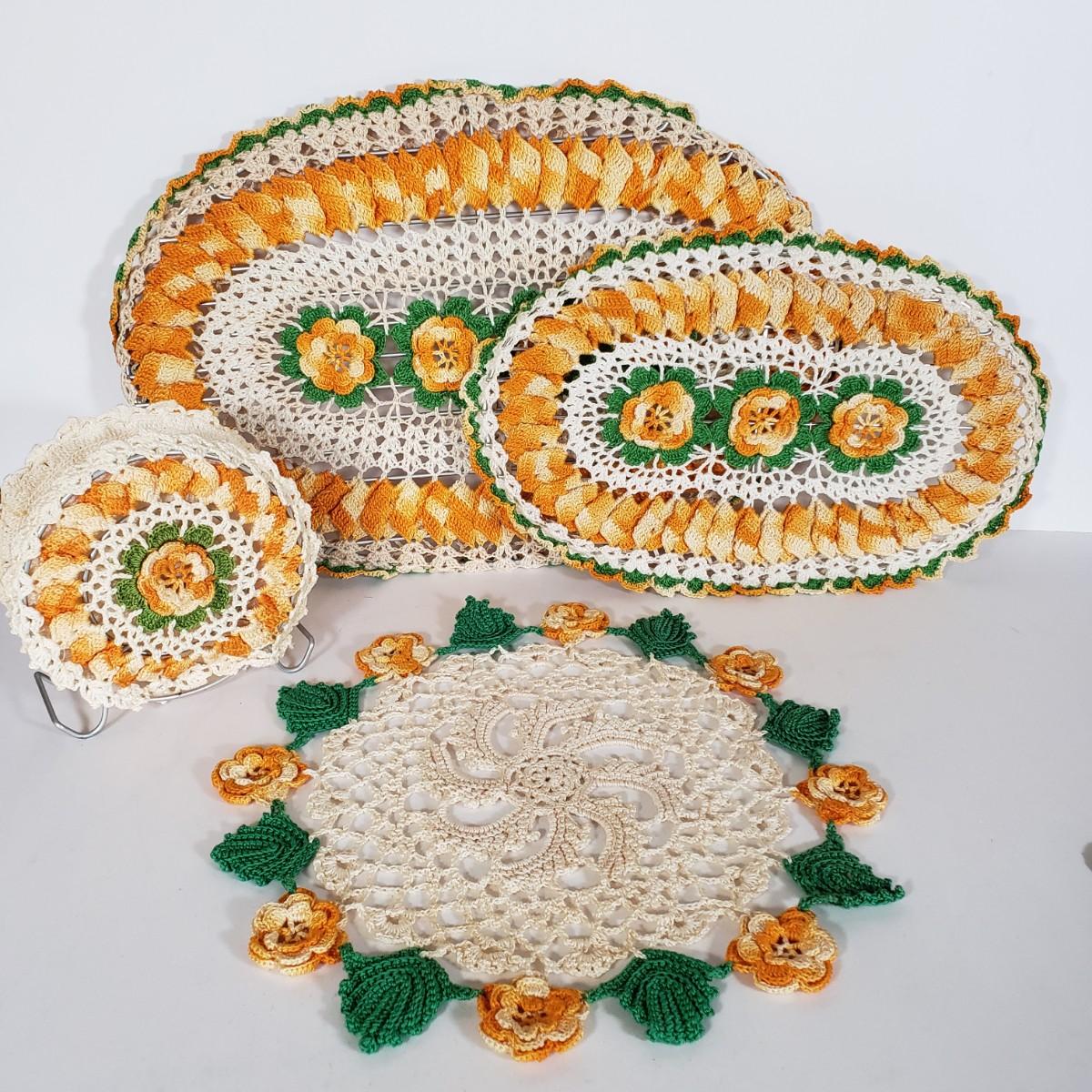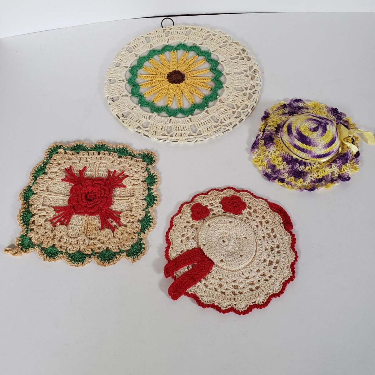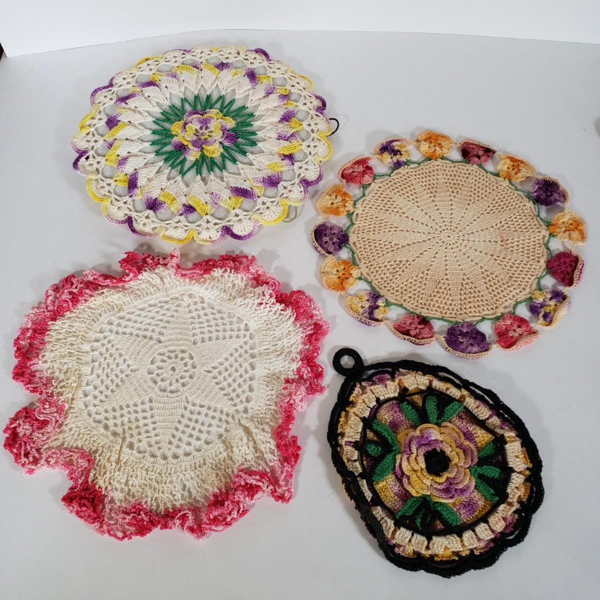 LOT 148L: Vintage Crocheted Trivets, Pot Holders, Doilies Tableware Set Hand Made