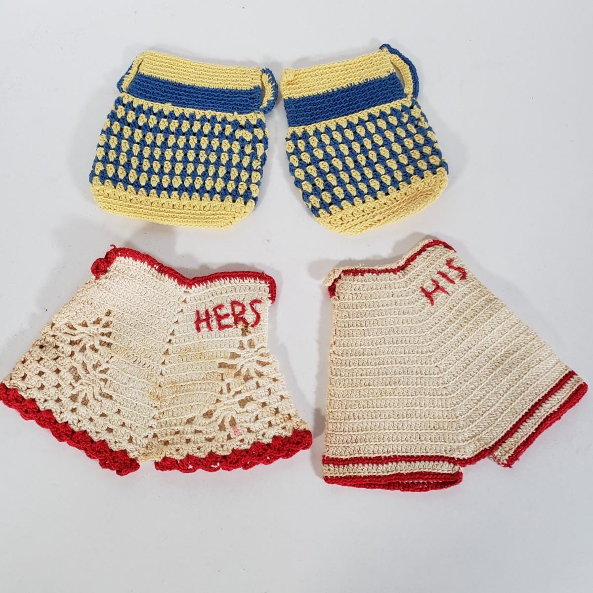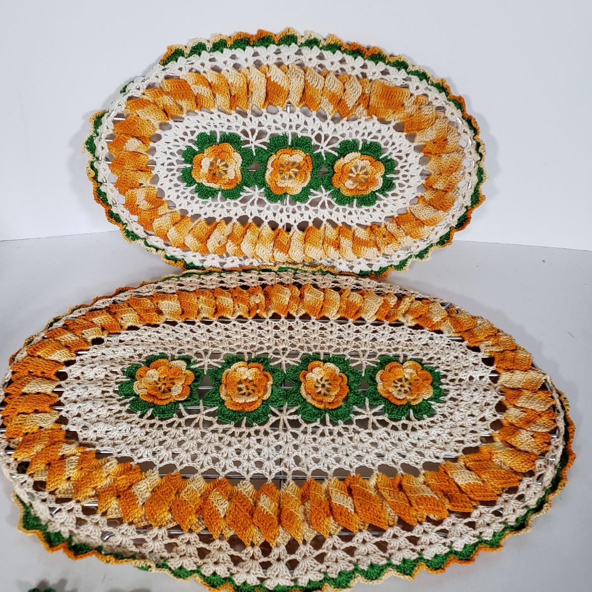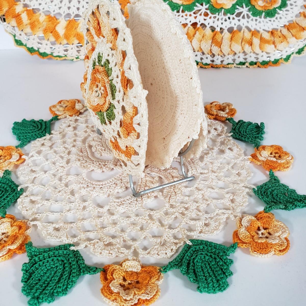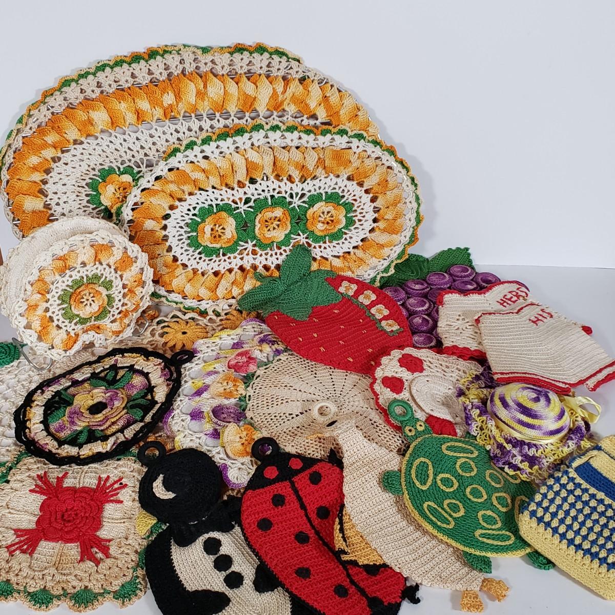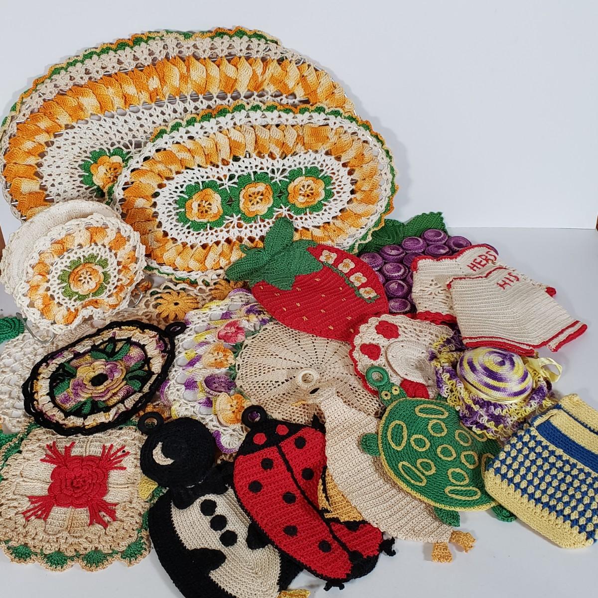 LOT 148L: Vintage Crocheted Trivets, Pot Holders, Doilies Tableware Set Hand Made