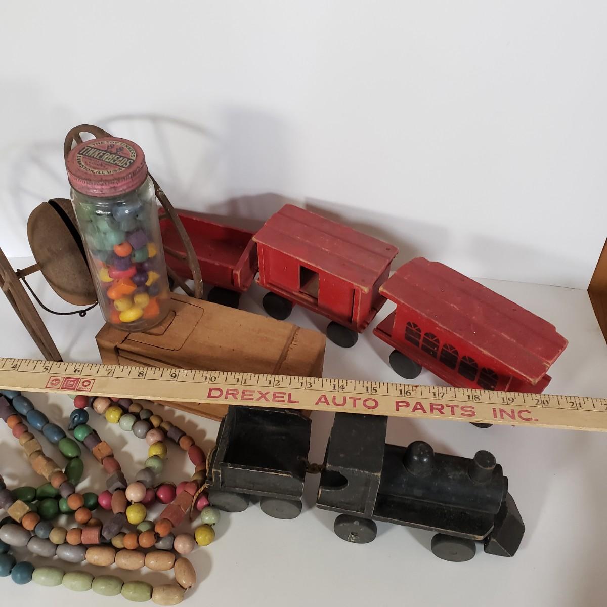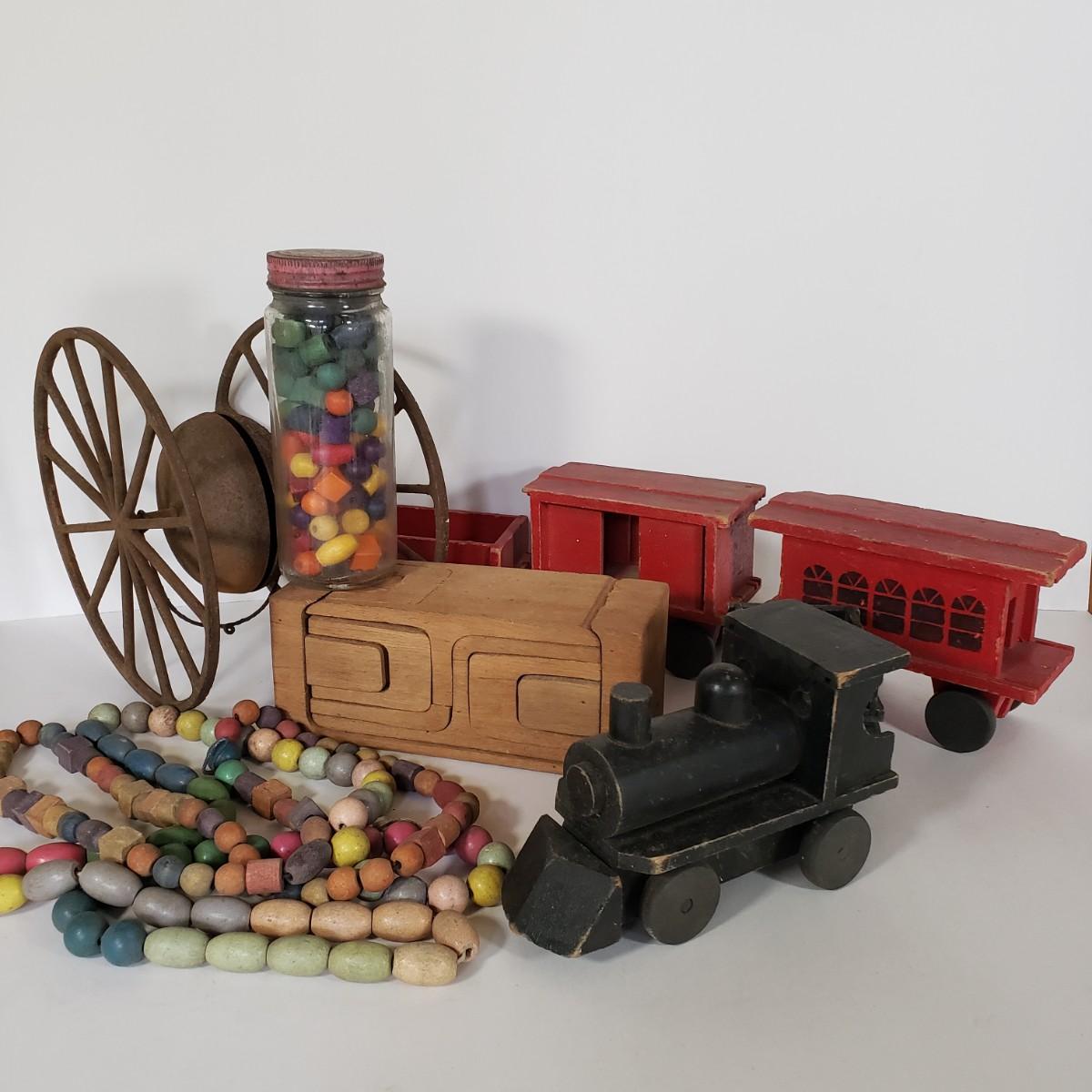 LOT 151L: Wooden Toy Collection; Tinker Beads, Trains, Puzzle Block & More
