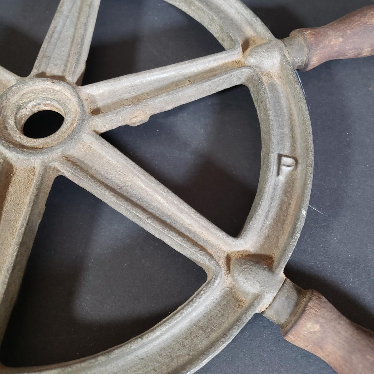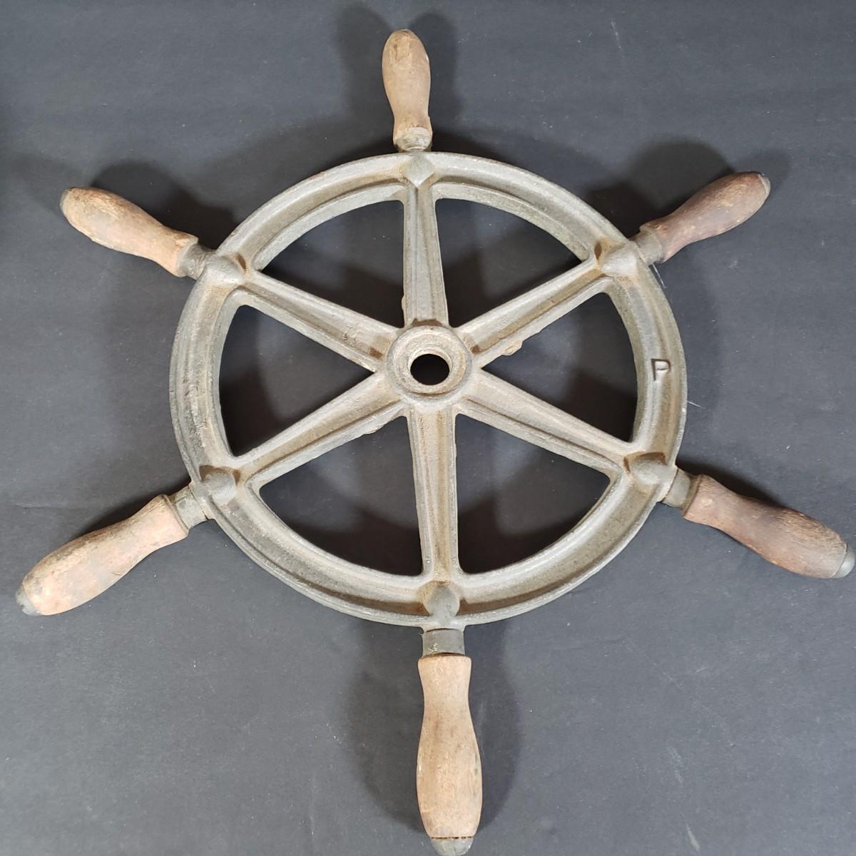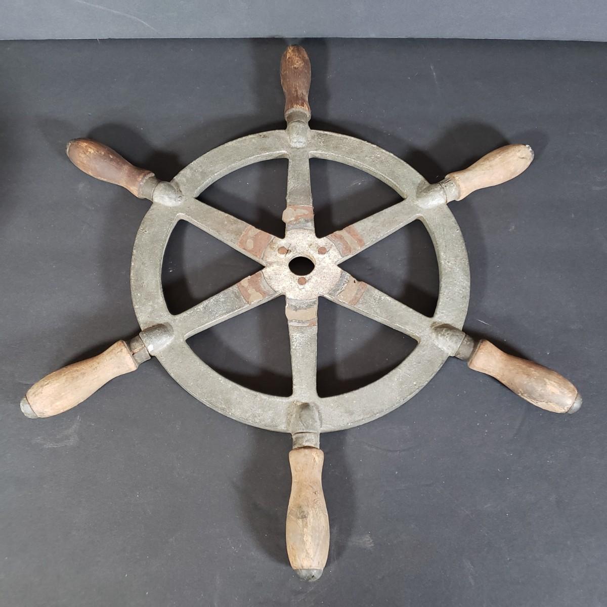 LOT 152P: Antique Metal Ships Wheel with Barometers and Weather Radio