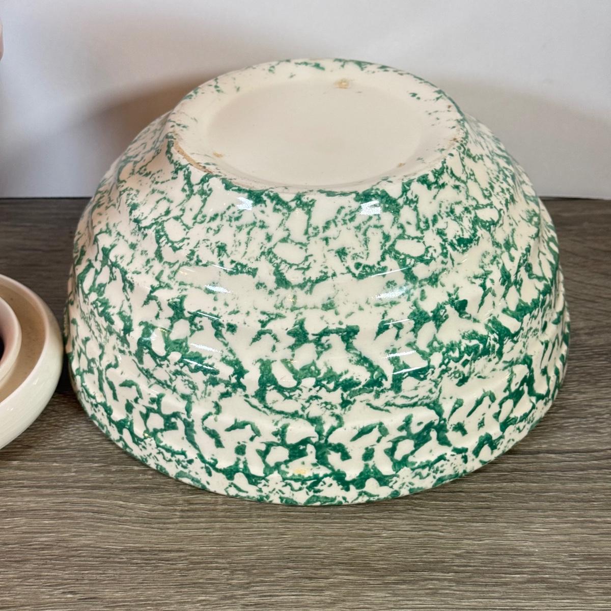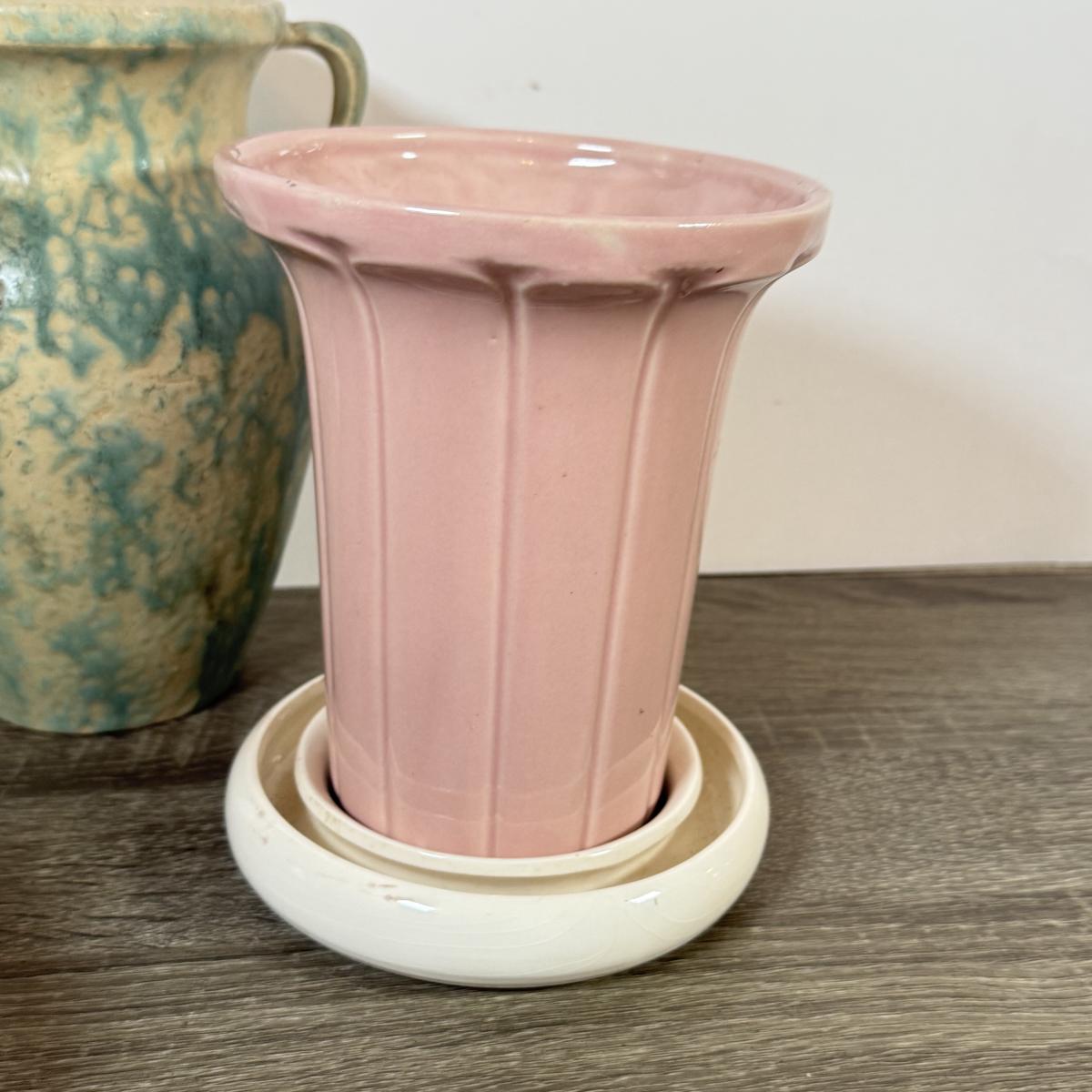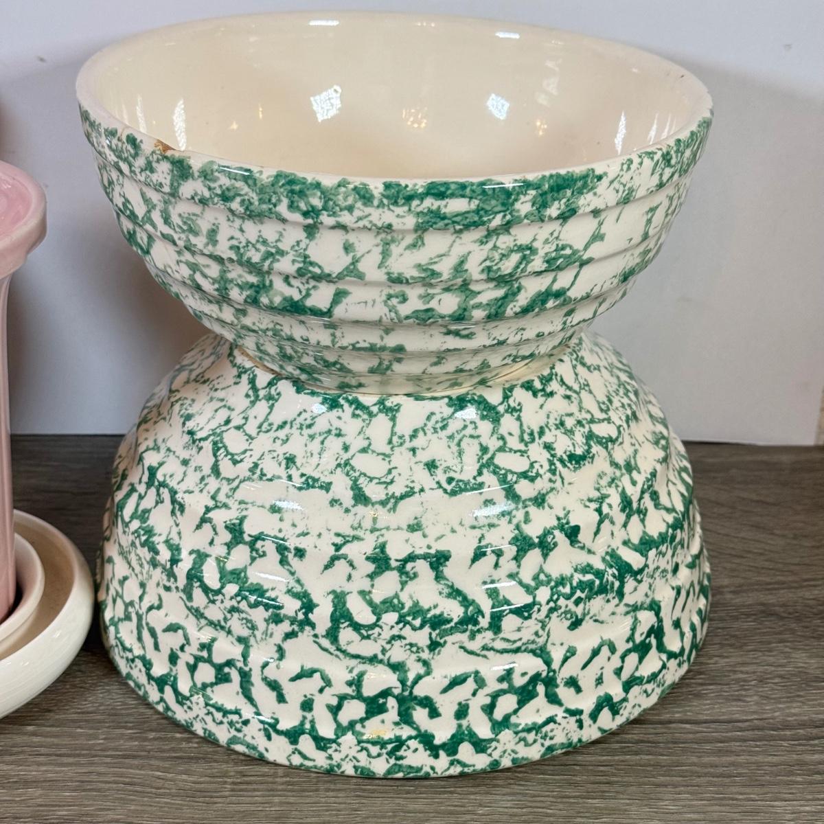LOT 165L: Pottery Collection: Pink Vase, Double Handle Vase, Stoneware Bowls & Flower Frogs