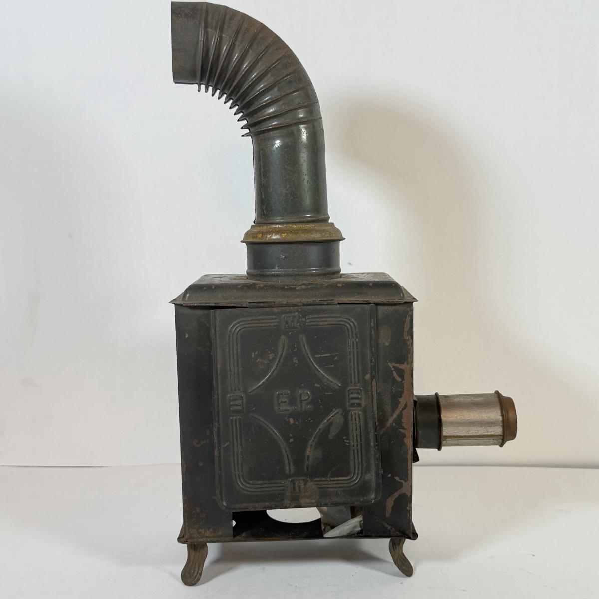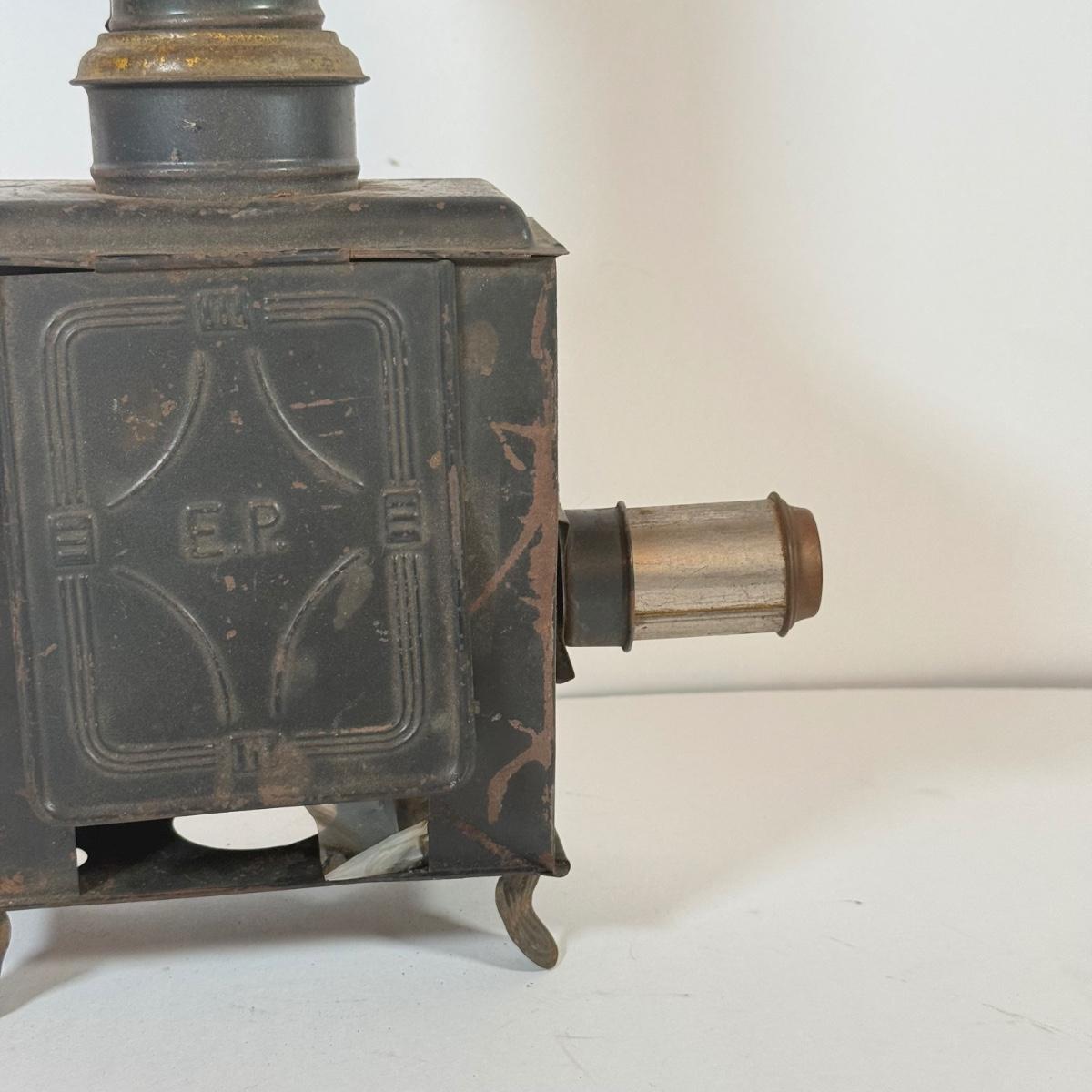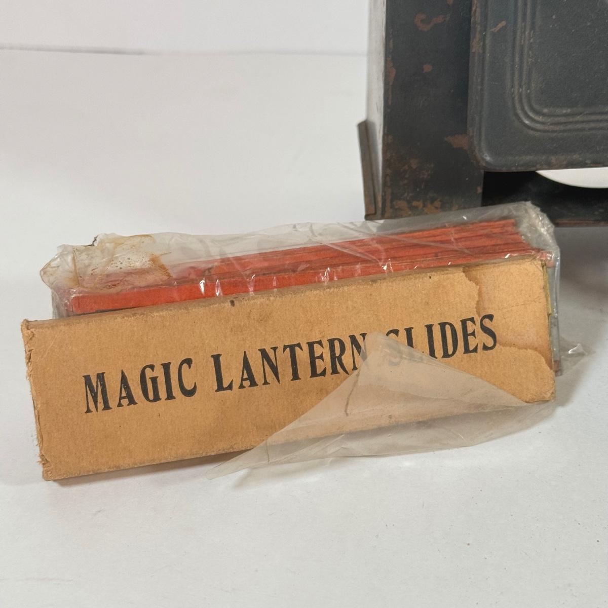LOT 166K: Miniature Metal Coal Stove w/ Salt & Pepper Shakers and Magic Lantern Slides