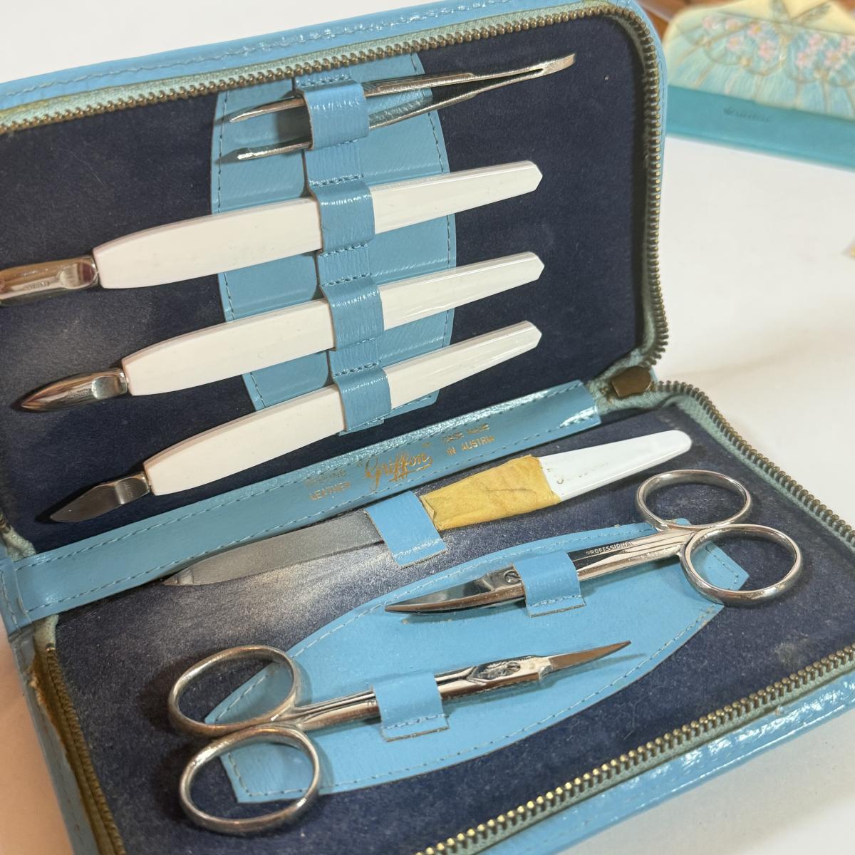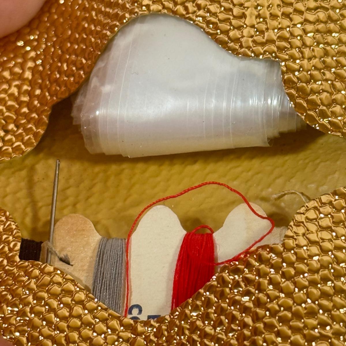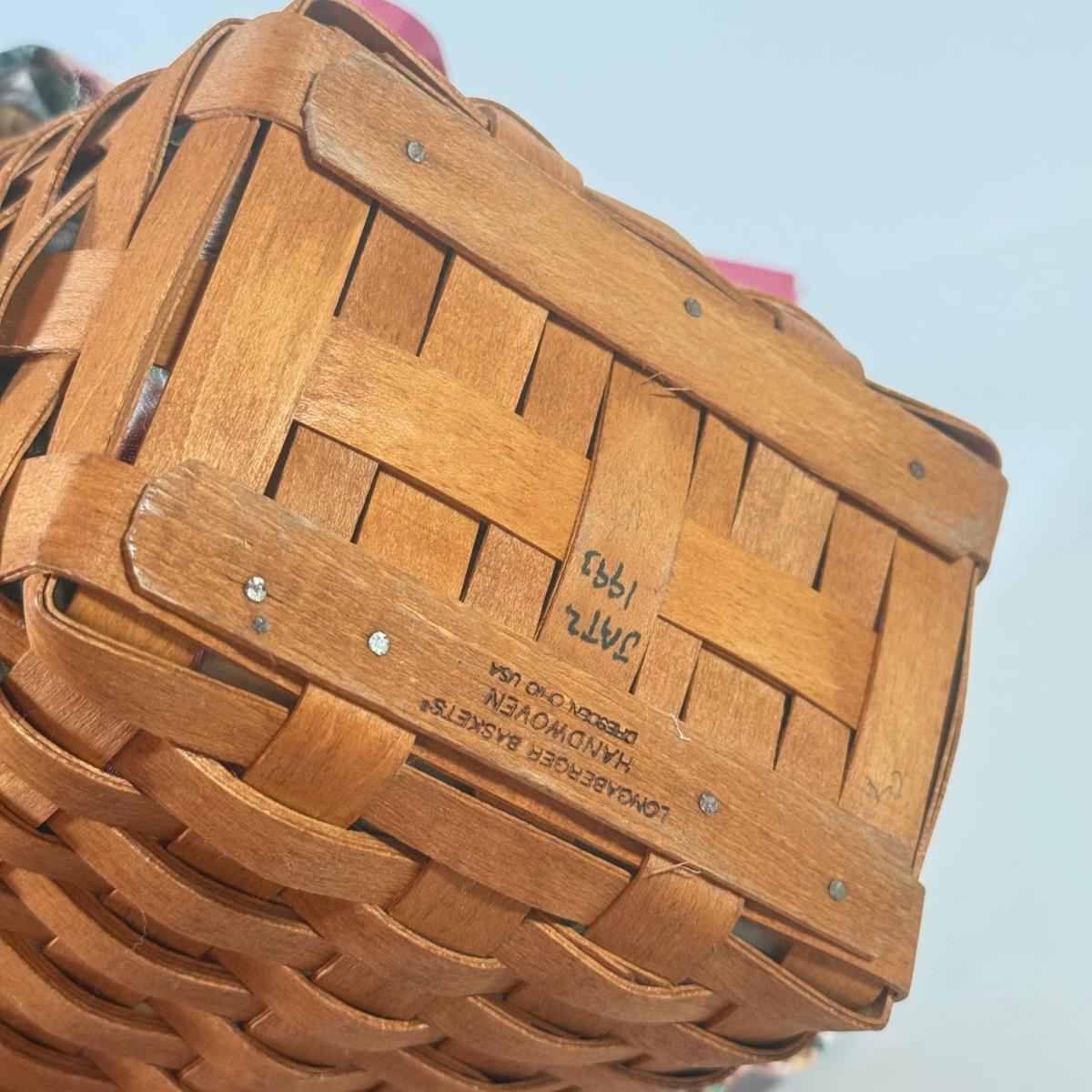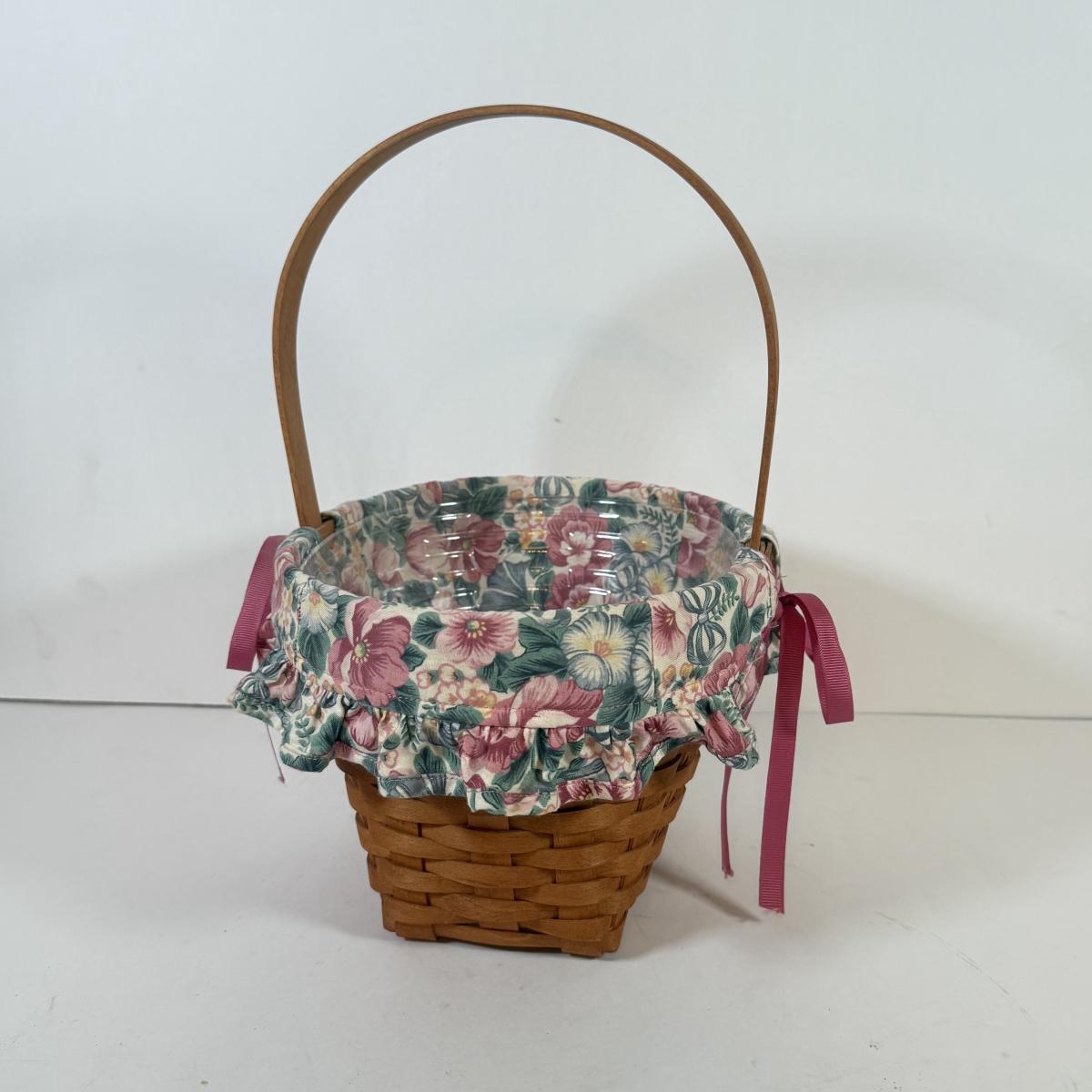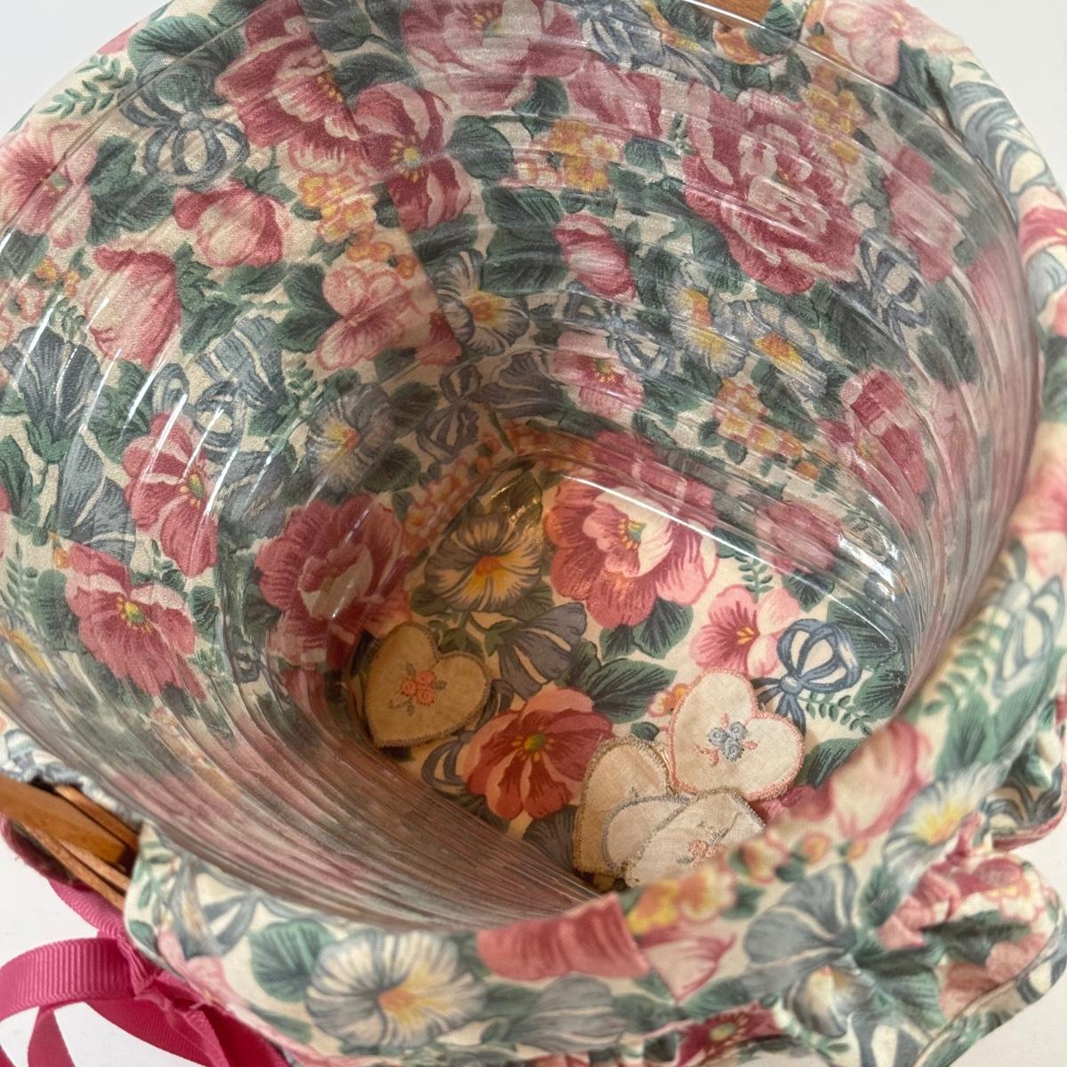 LOT 168L: Floral Lined Pink Ribbon Longaberger Basket Filled w/ Sewing Kits & Vintage Combs