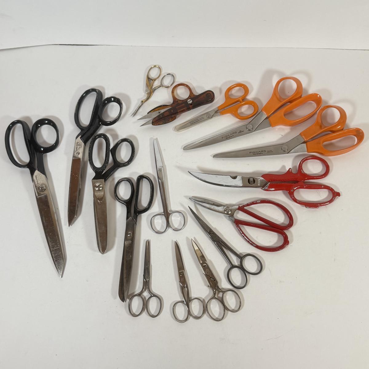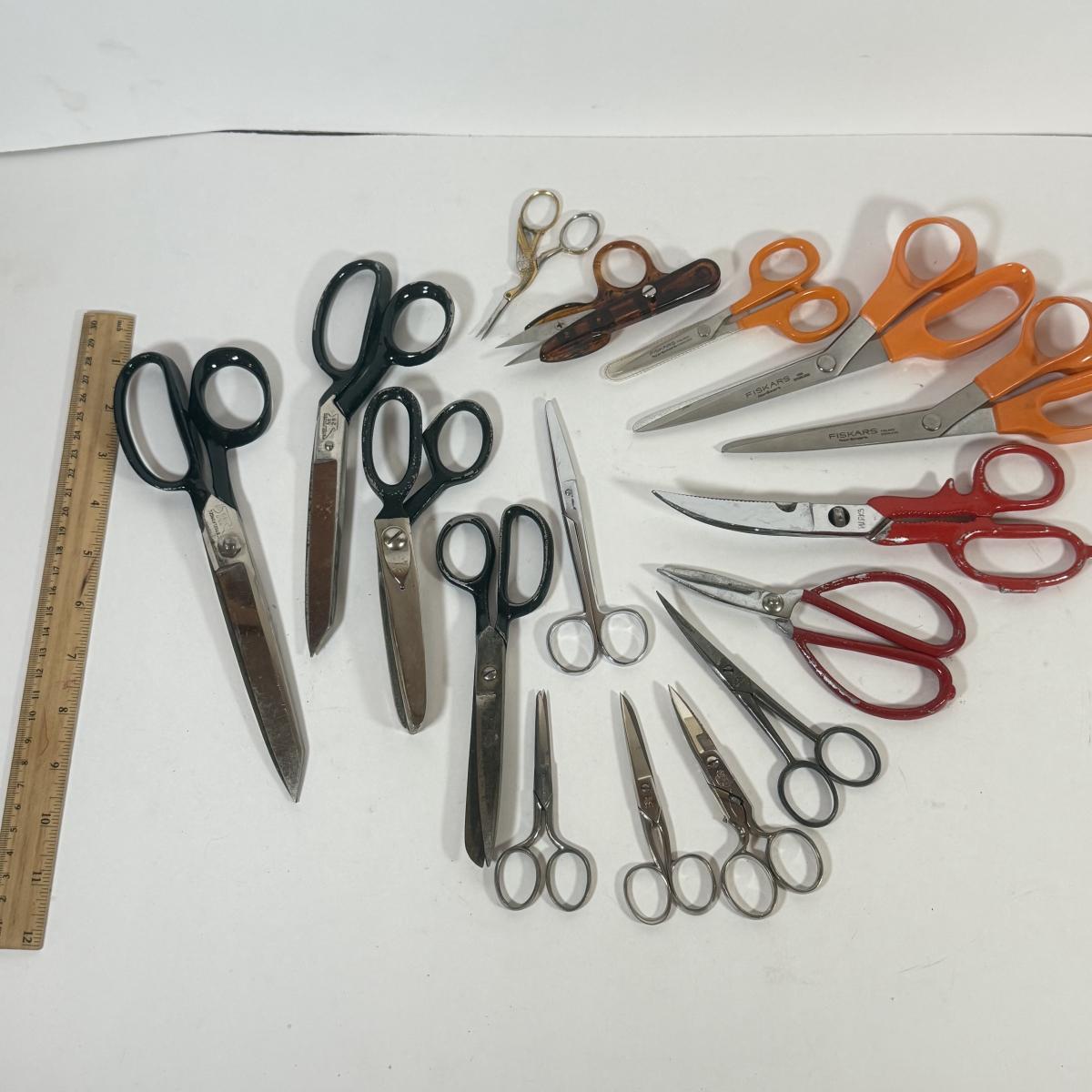 LOT 169K: Collection of Craft & Household Scissors: Fiskars, Marks, Wiss