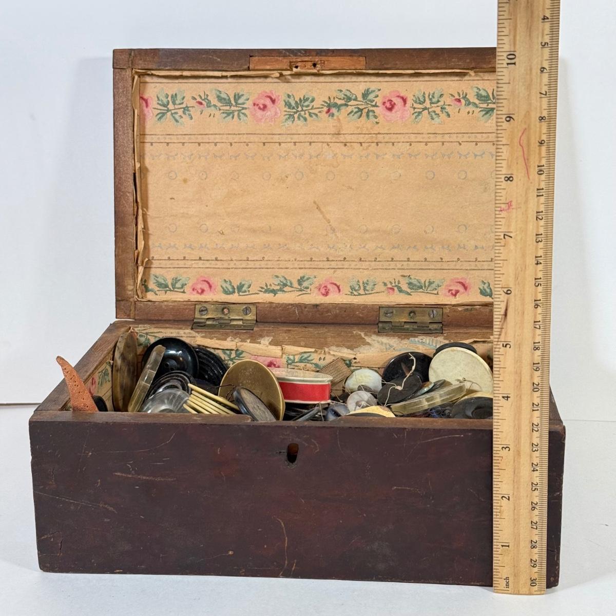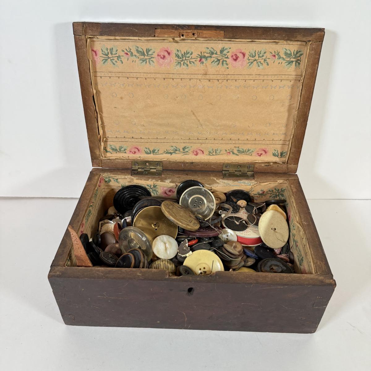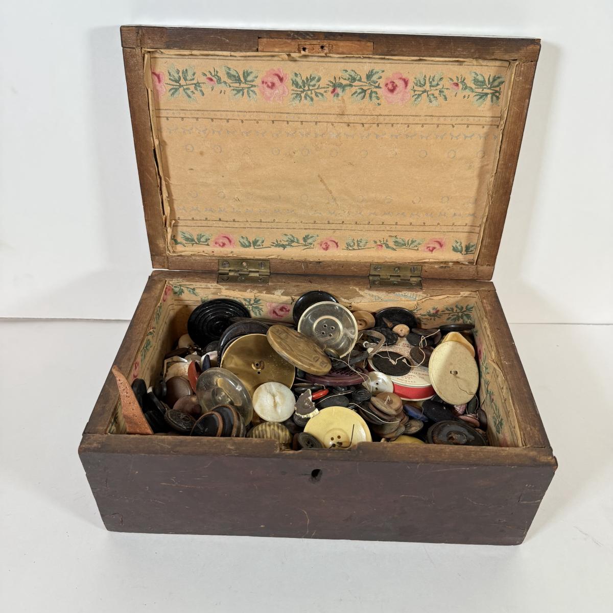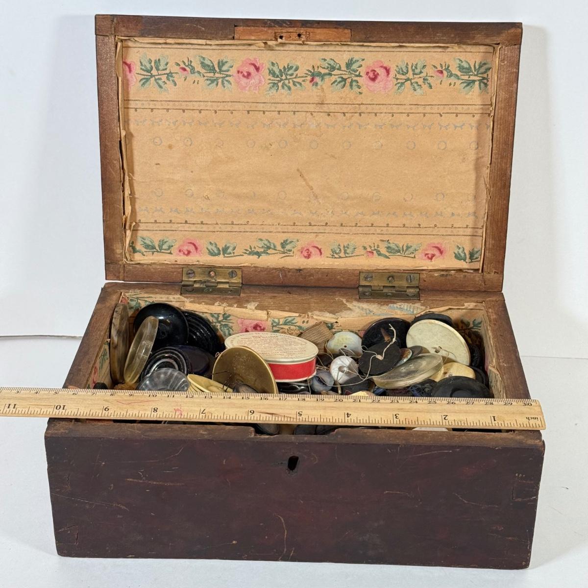 LOT 176K: Variety of Vintage Buttons in Vintage Wooden Box