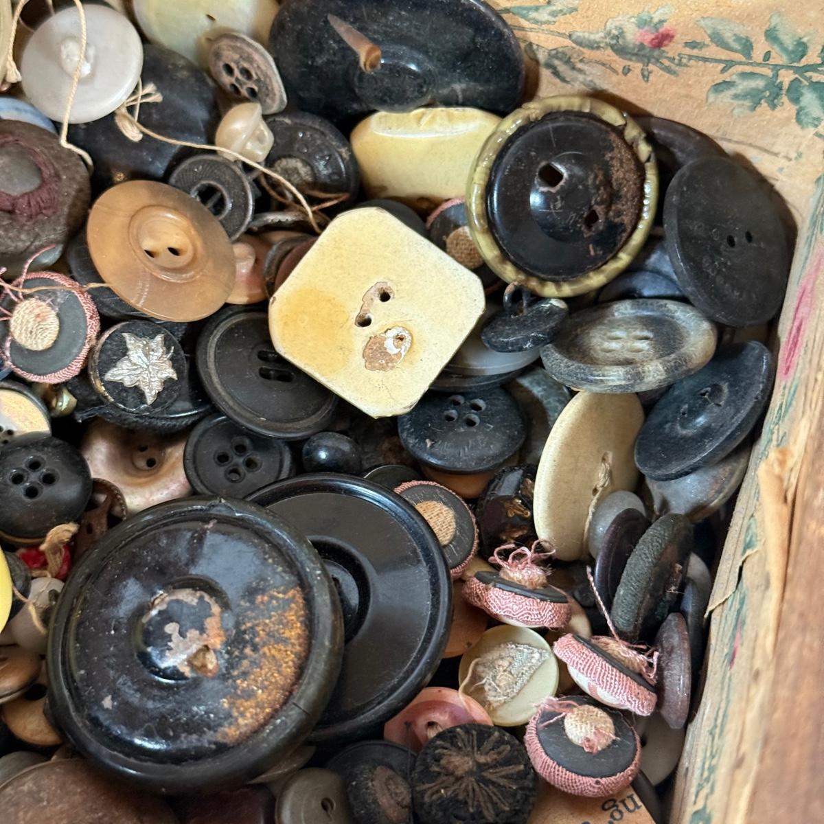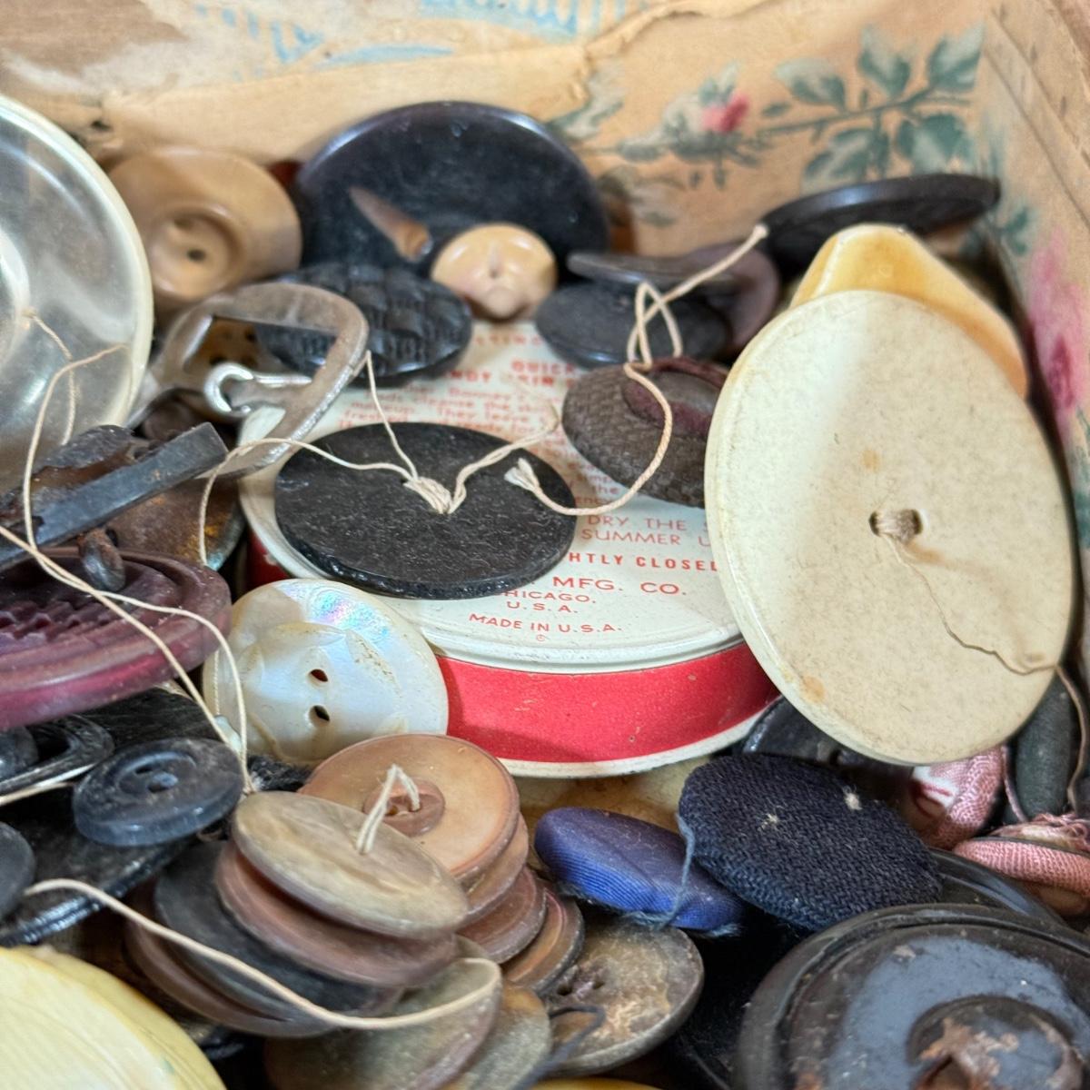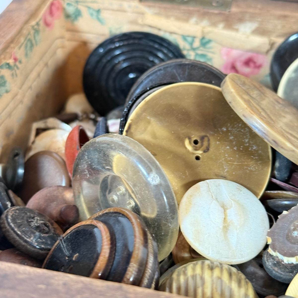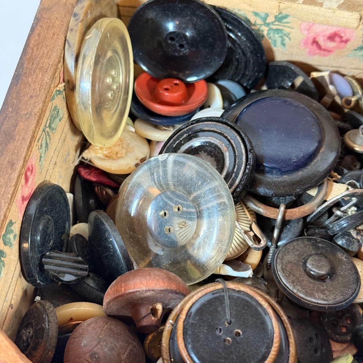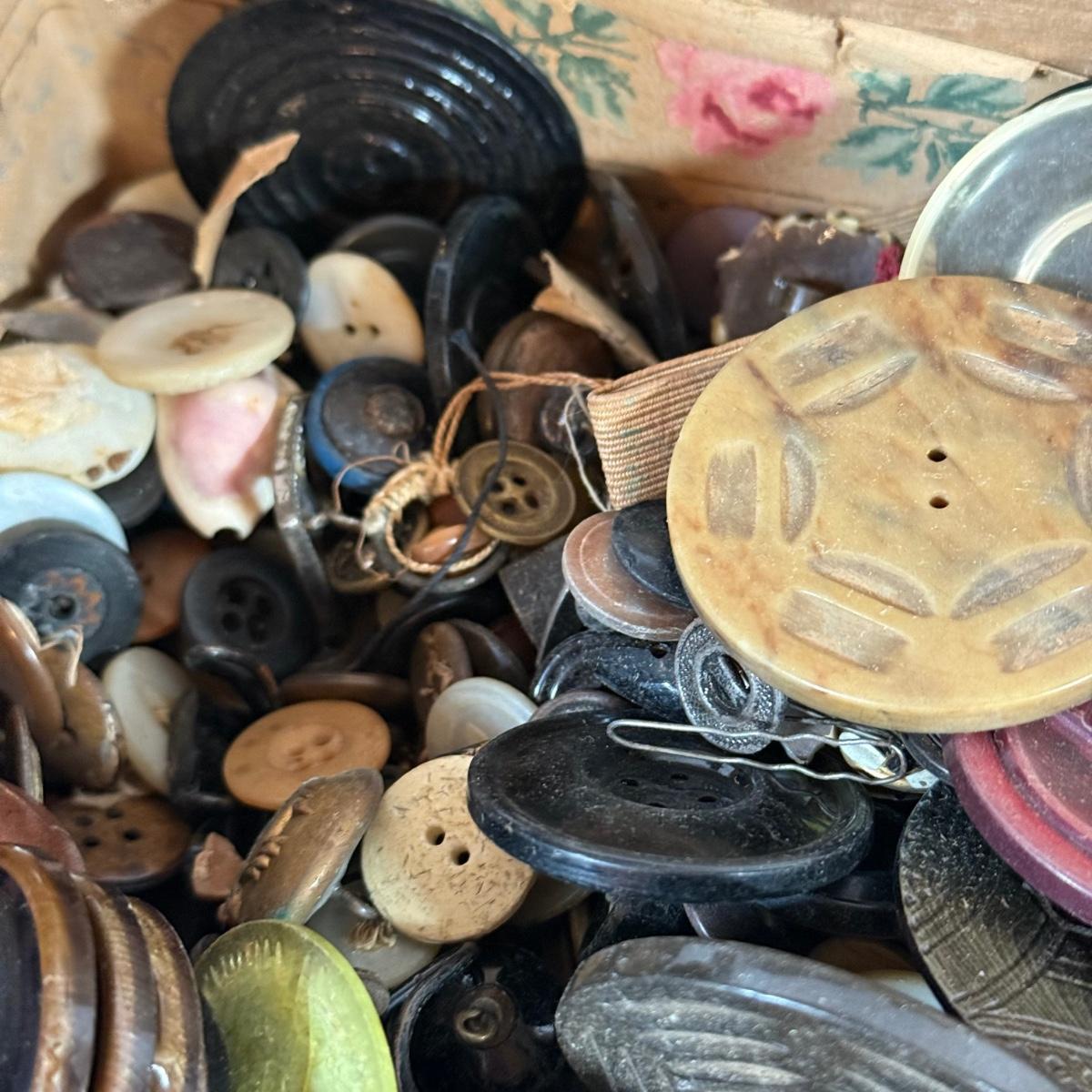 LOT 176K: Variety of Vintage Buttons in Vintage Wooden Box