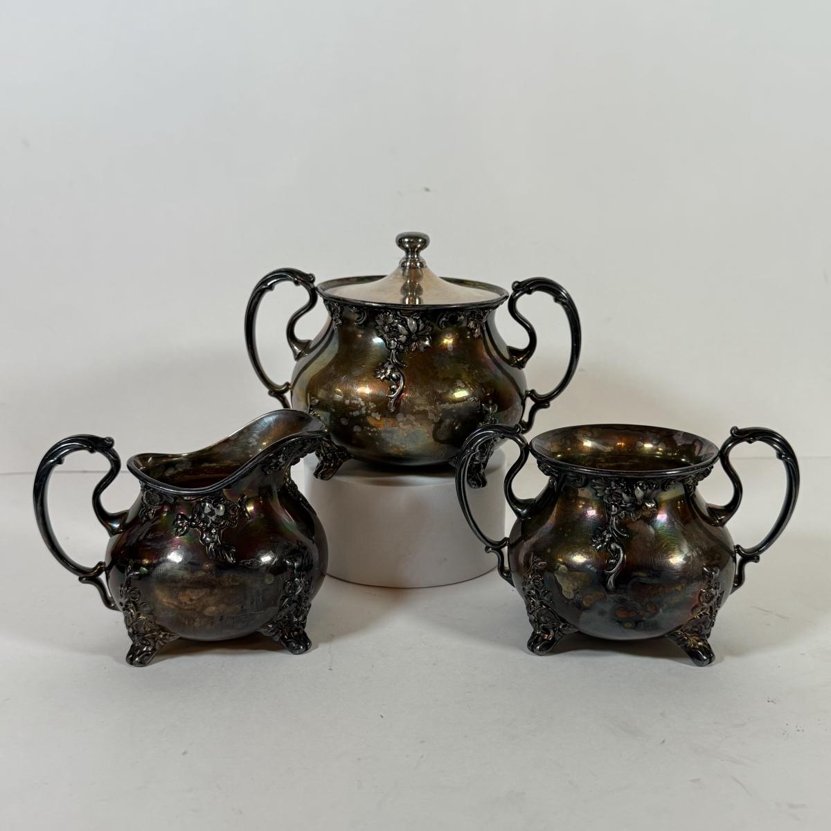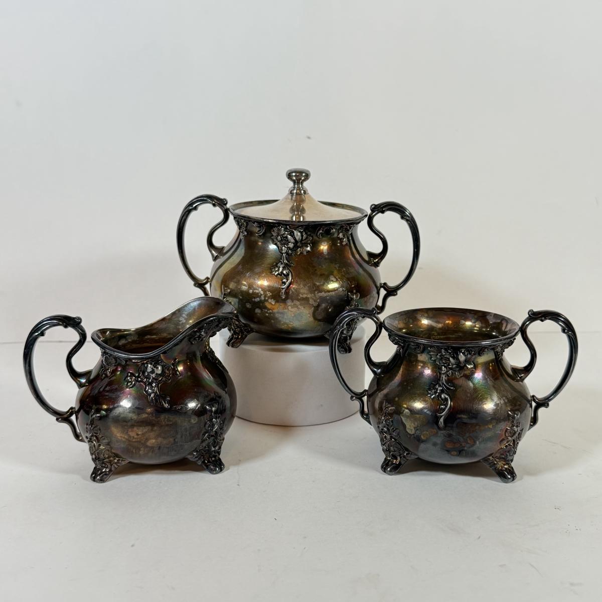 LOT 180K: Vintage Oneida Silver Venetian Scroll Sugar Bowls & Creamer