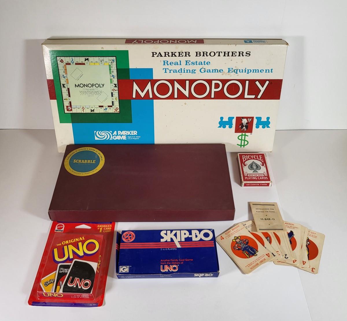 LOT 182L: Vintage Gaming Lot Including Monopoly, Scrabble, Skip-Bo and More