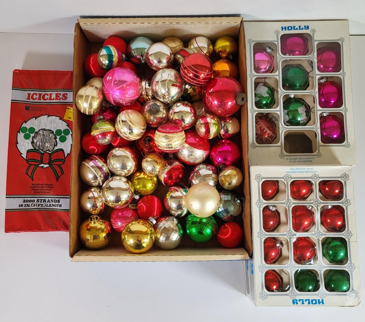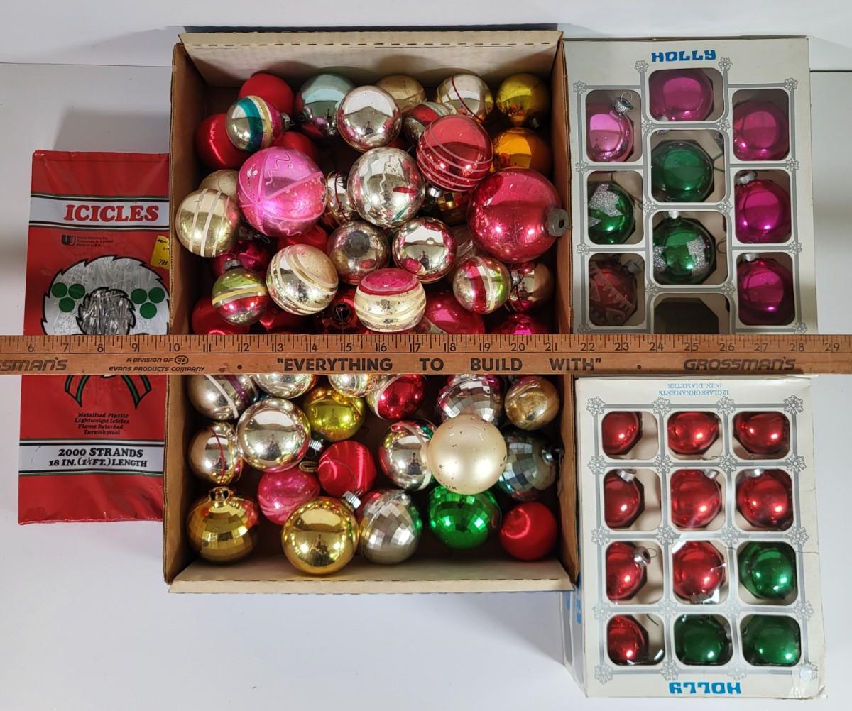 LOT 188L: Vintage Holiday Ball Ornaments Made in USA, Shiny Brite and More