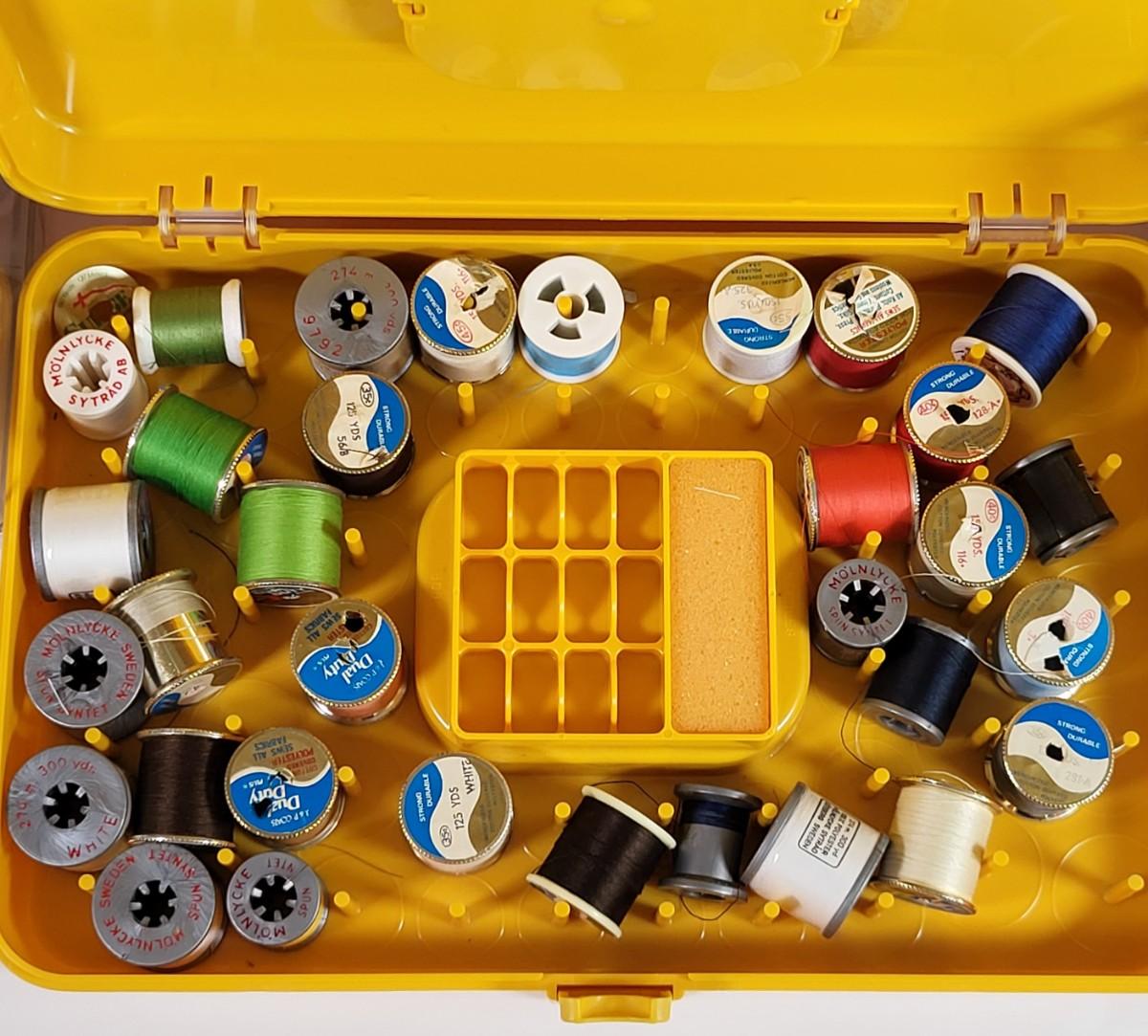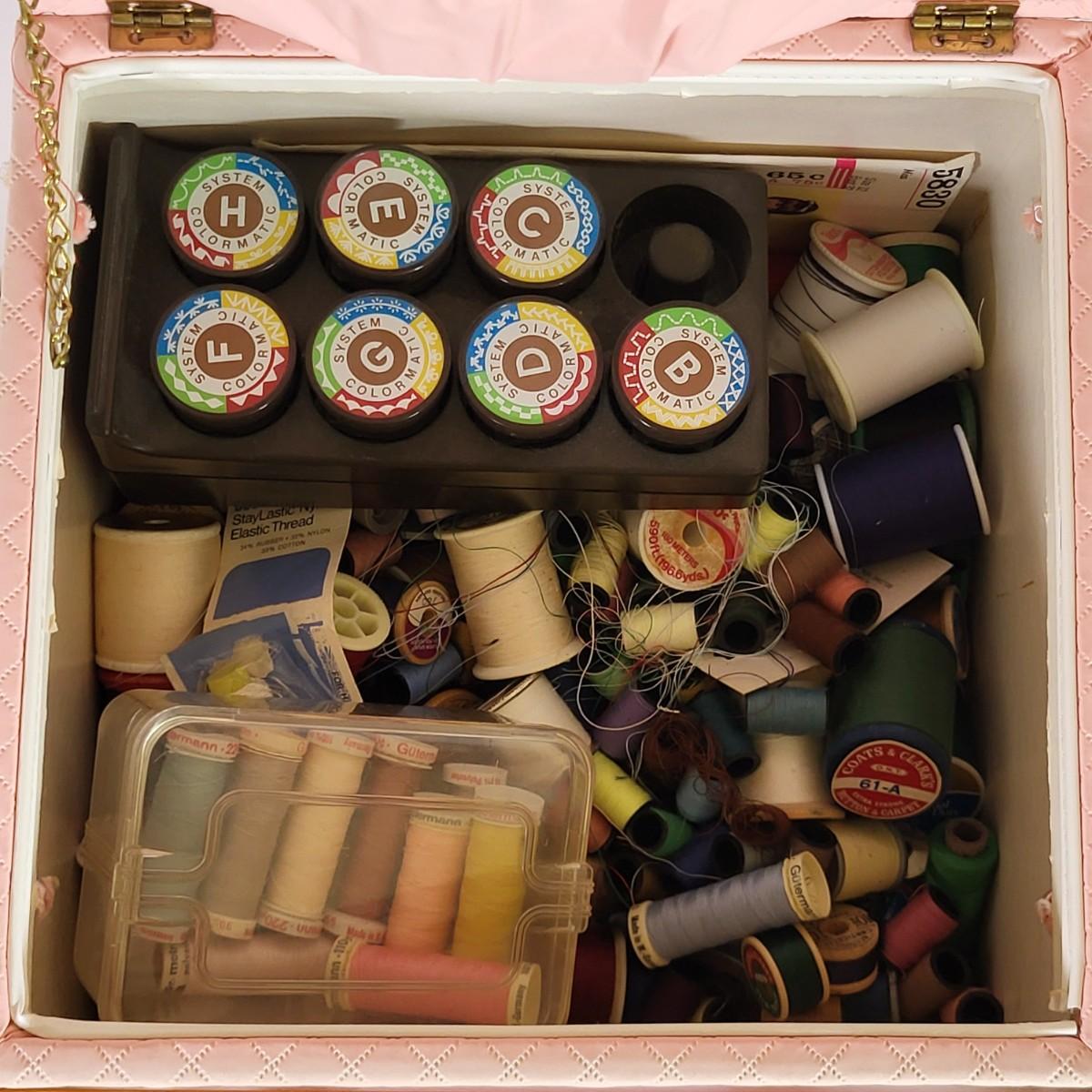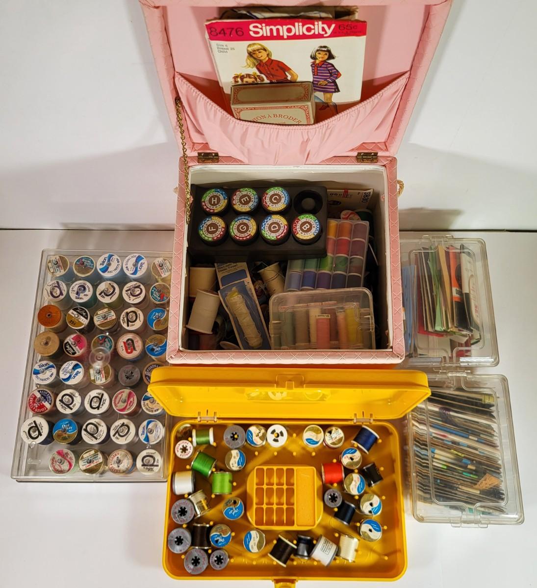 LOT 190L: Mutliple Containers of Various Vintage Sewing Tools Including Thread, Needles and More