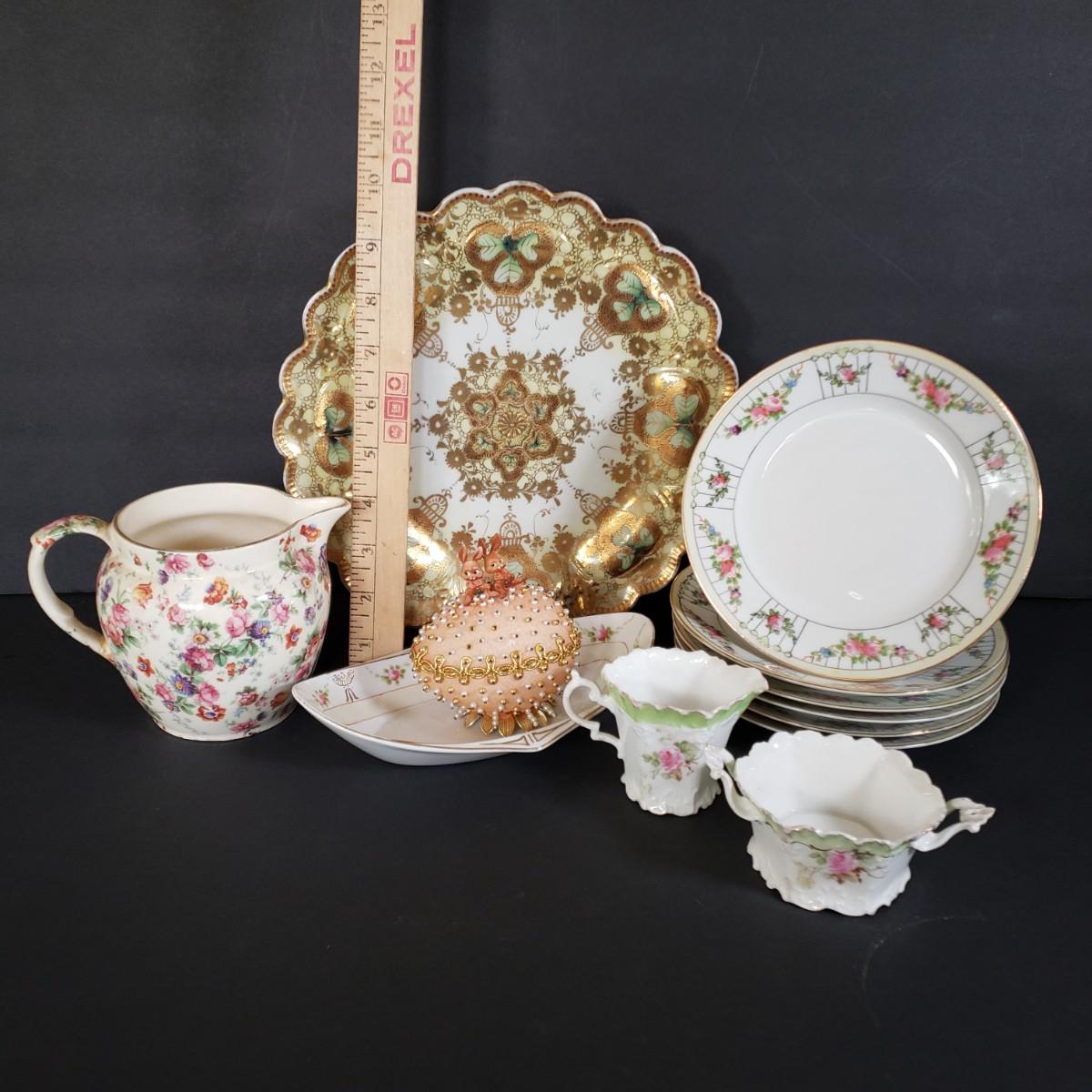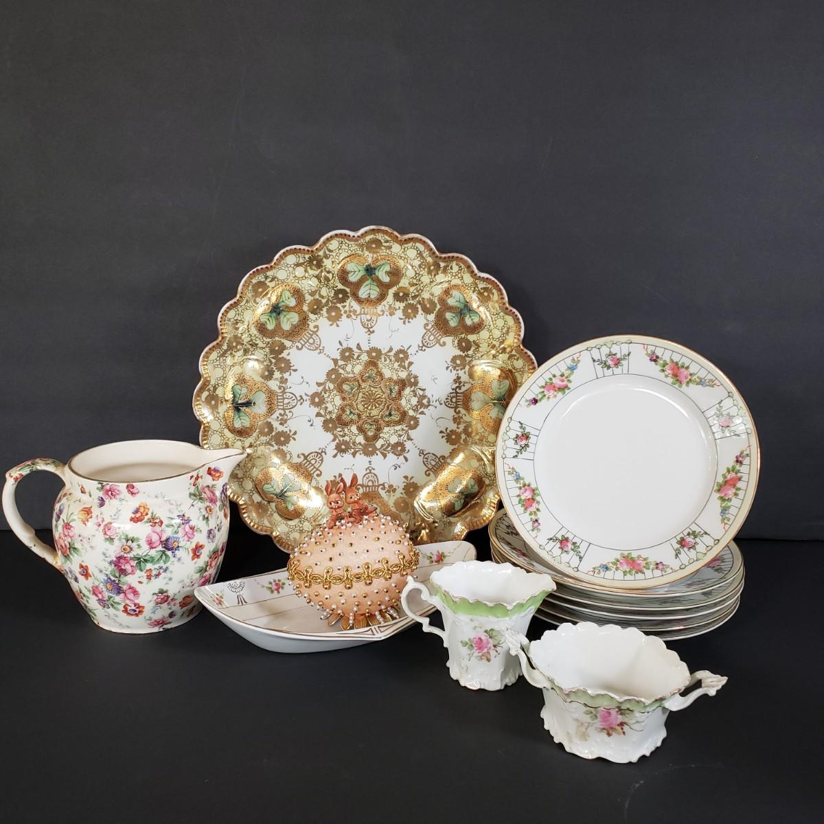 LOT 198L: Hand Painted Nippon, Erphila Floral Chintz Pitcher & More