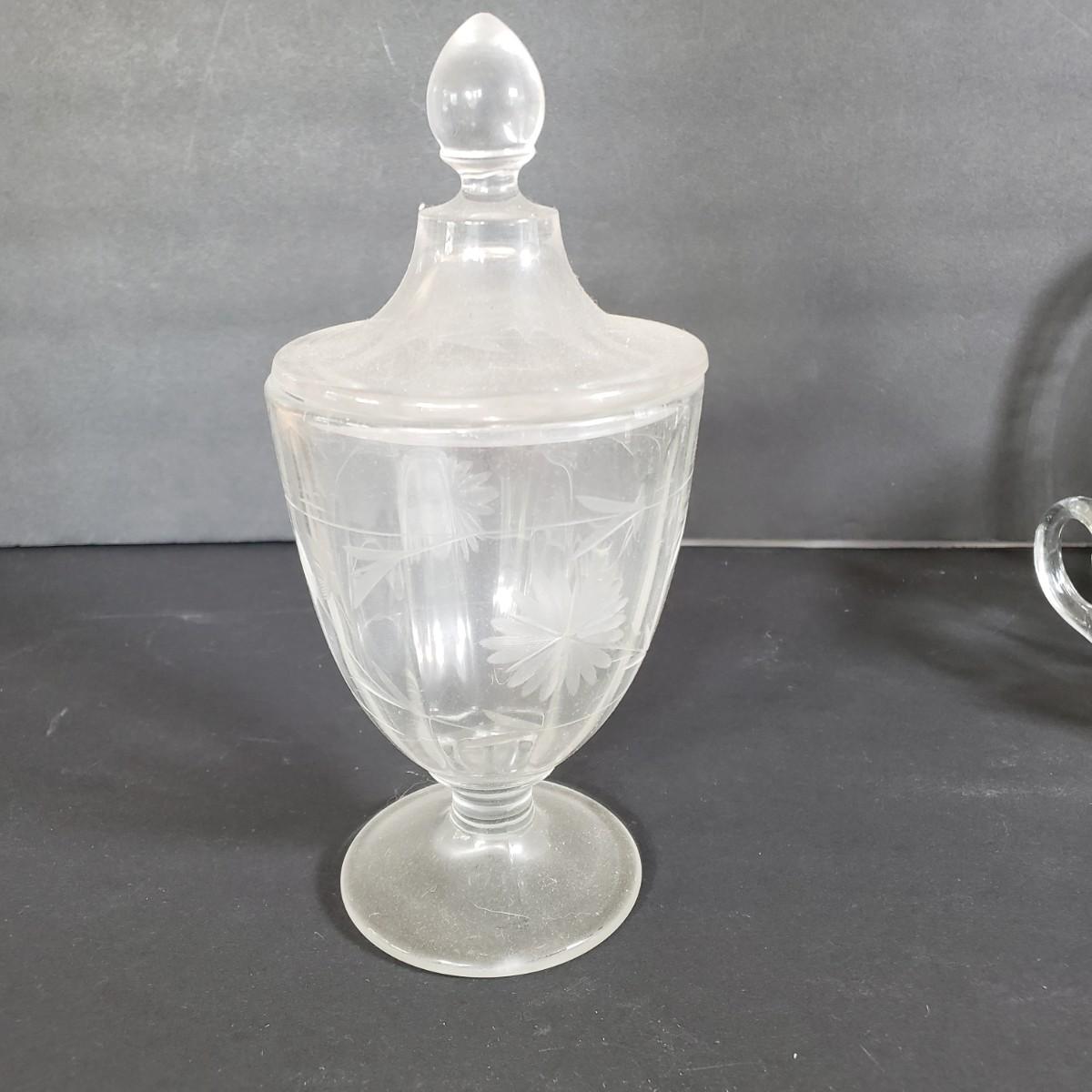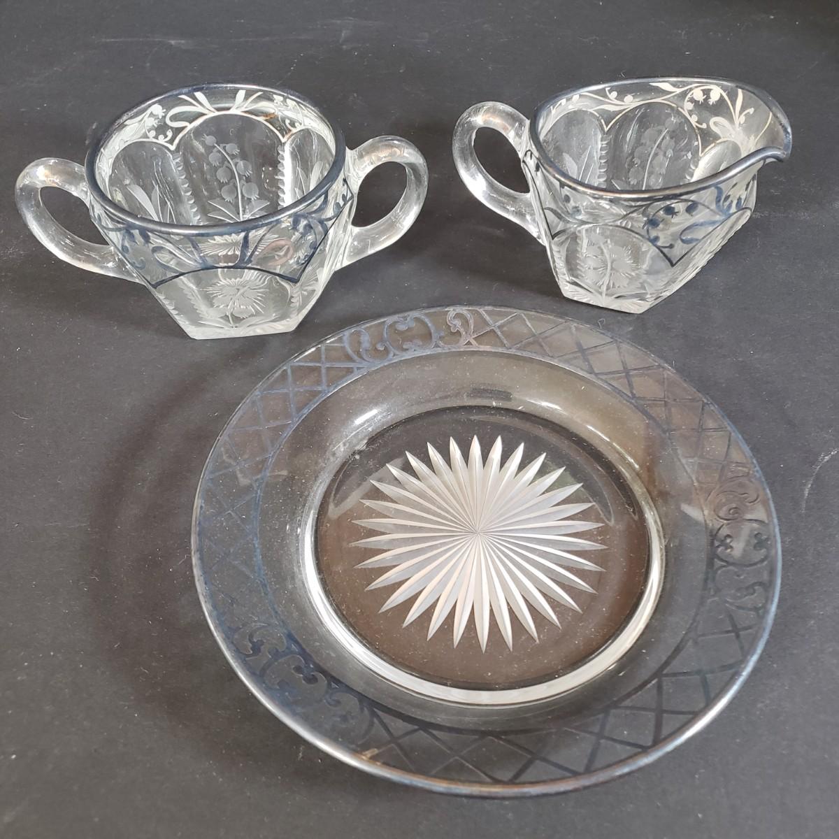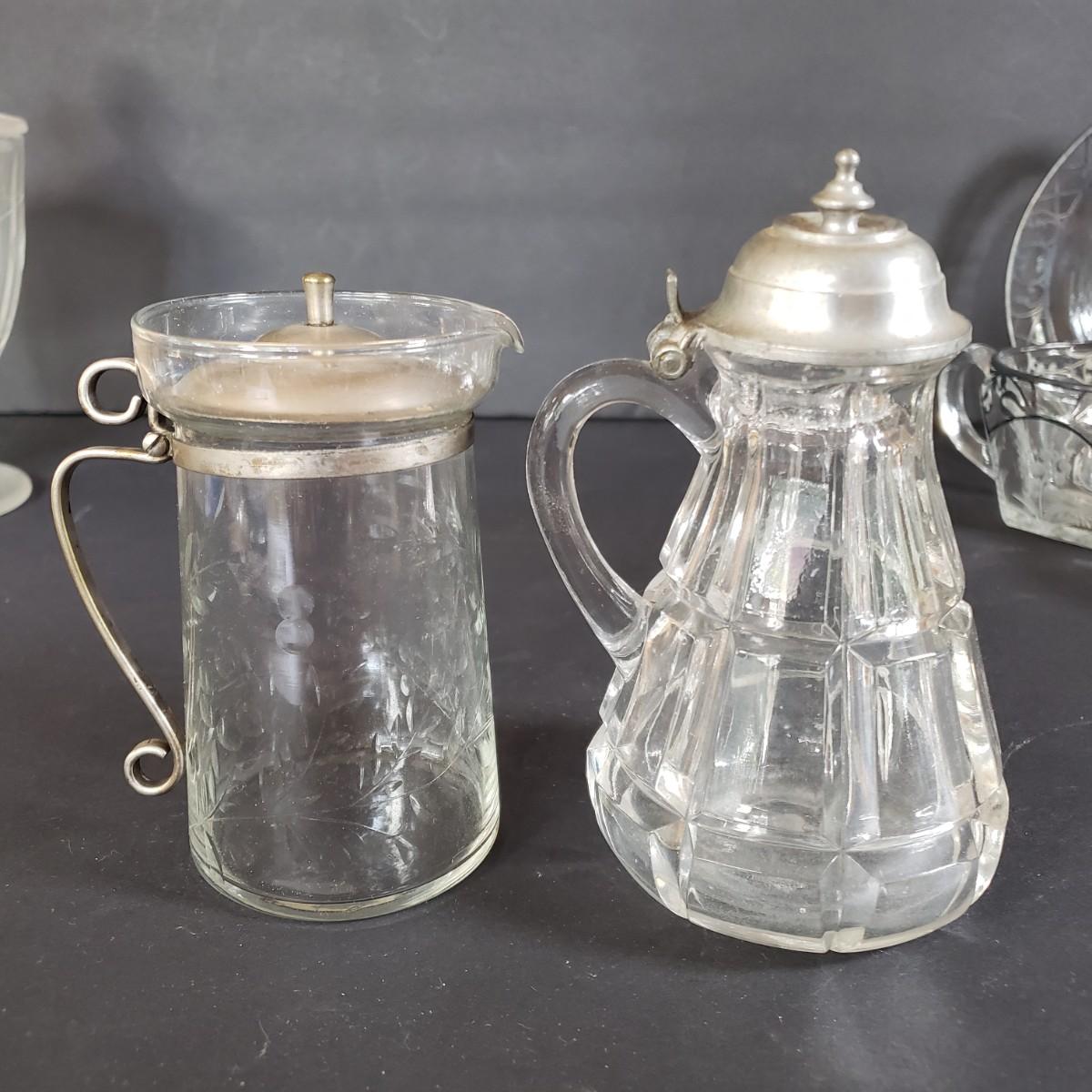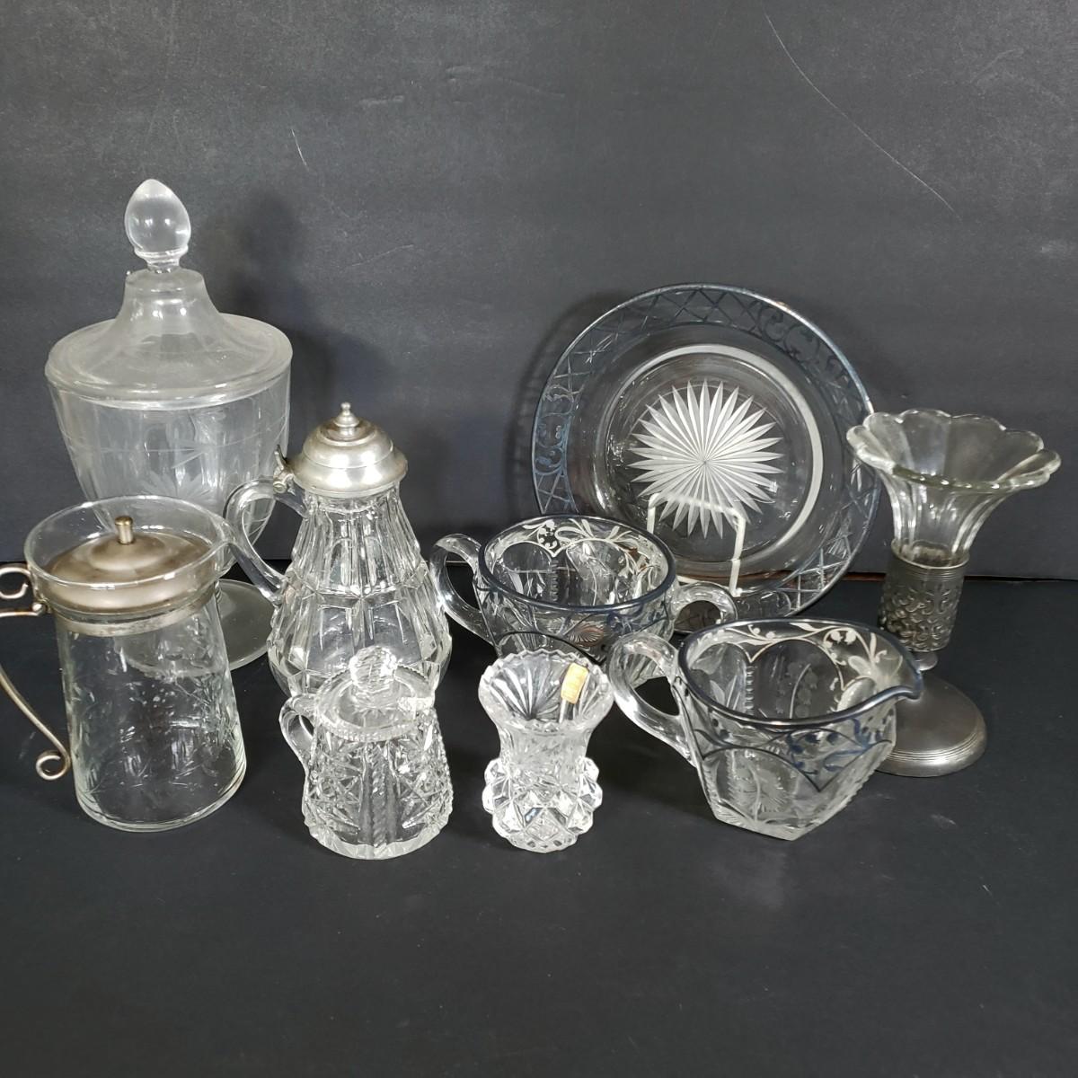 LOT 200L: Silver Overlay Lily of the Valley Set, EAPG Molasses Pourer, ABP Mustard Jar & More