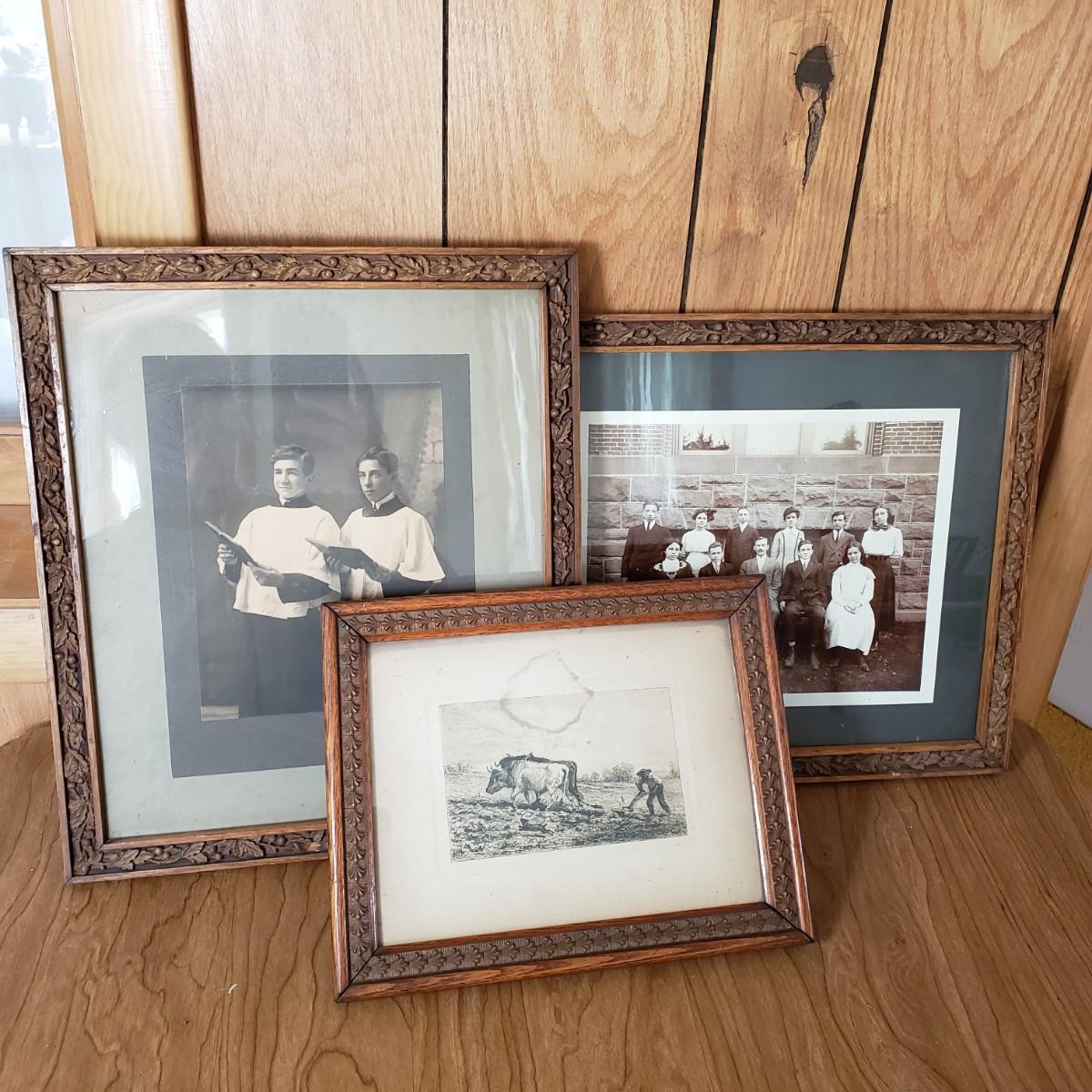 LOT 201P: Set of 3 Antique Hand Carved Wooden Frames