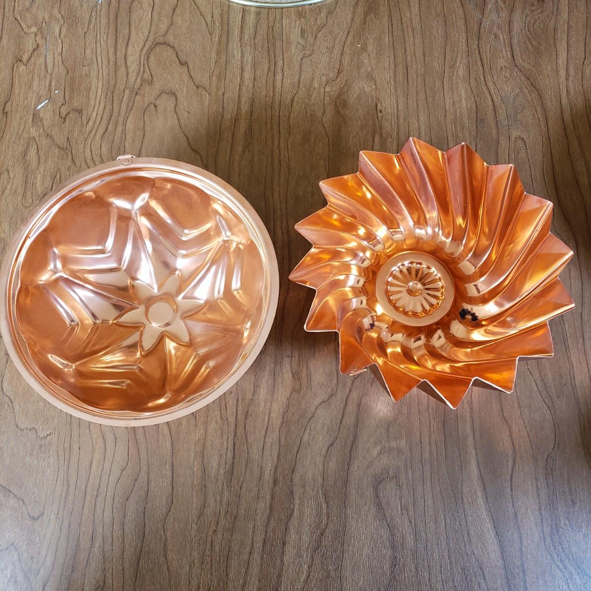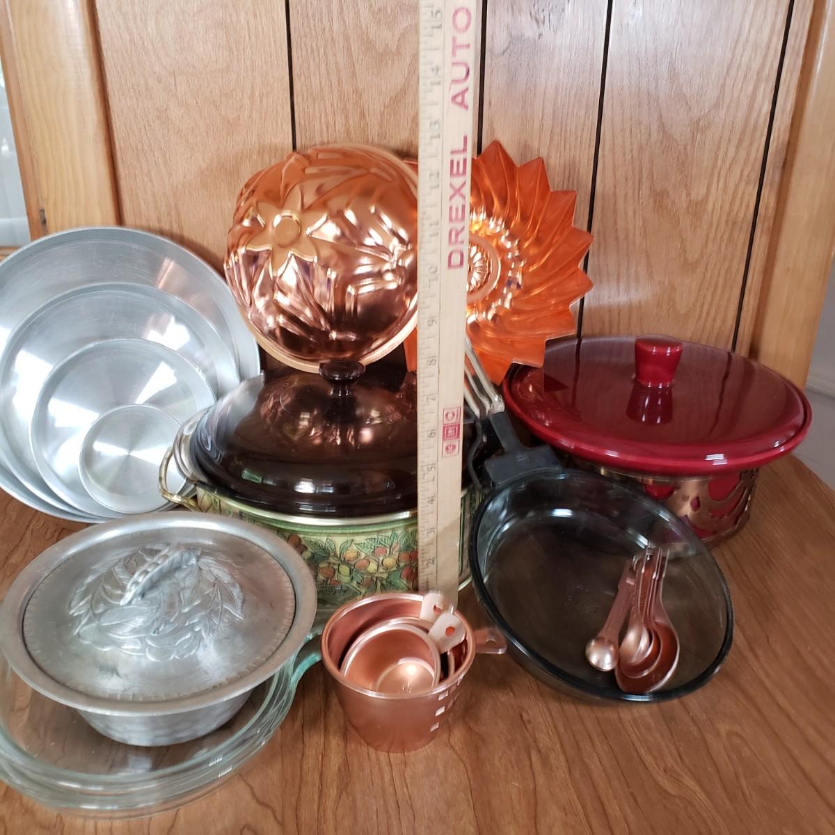LOT 204L: Vintage Pyrex, Copper Bundt Mold Pans, Aluminum Cake Pans New in Box & More