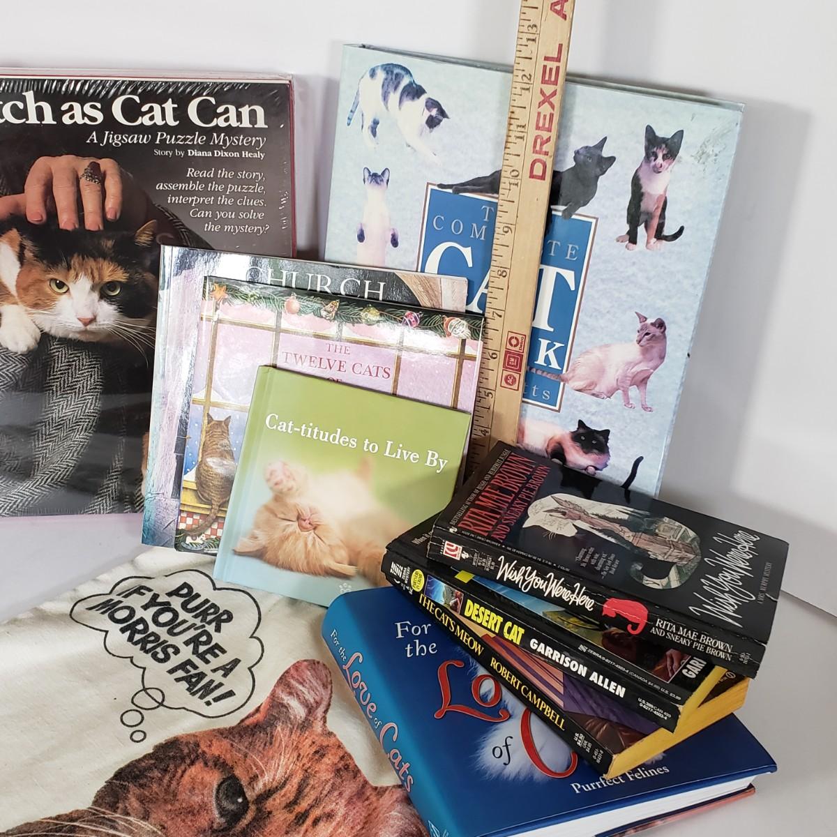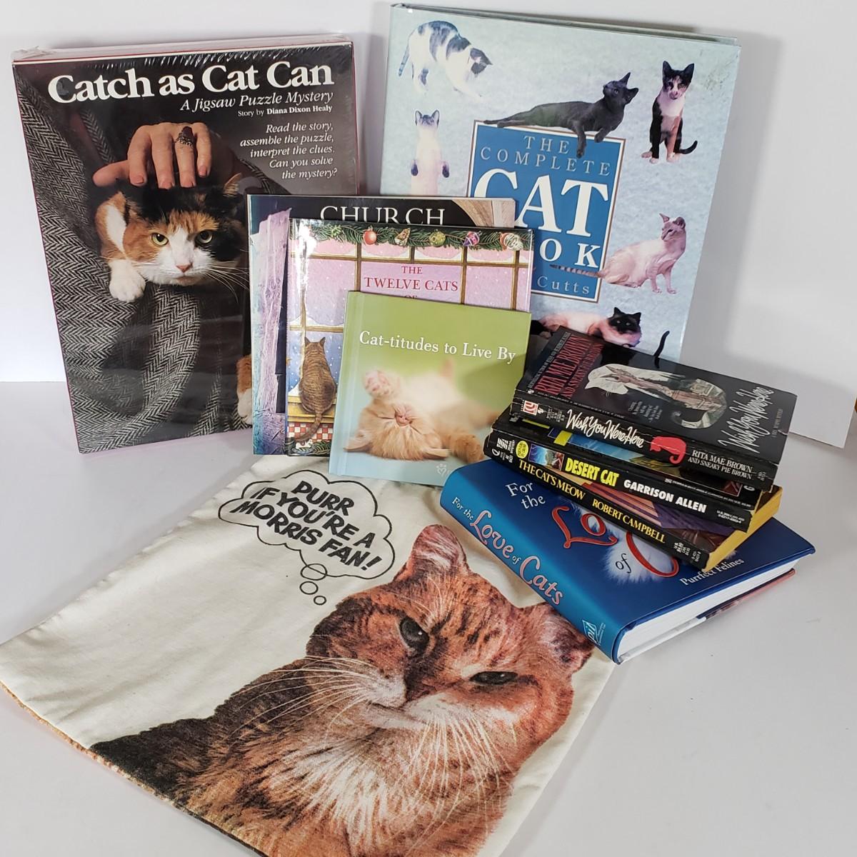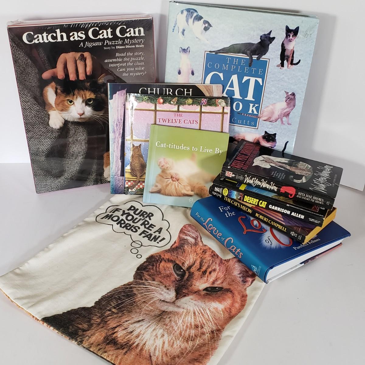 LOT 208L: Vintage Morris the Cat Canvas Bag, Unopened Puzzle, Cat Books