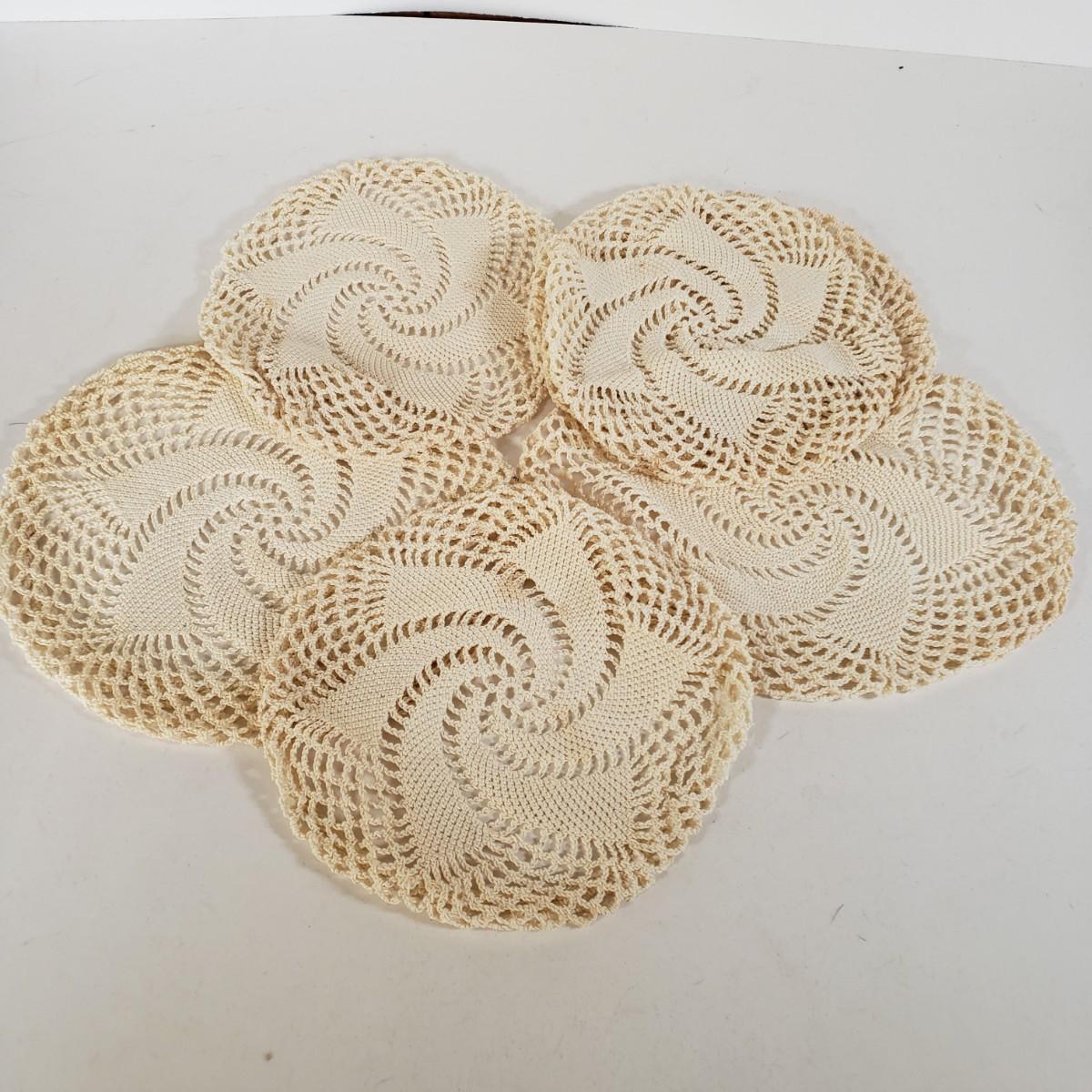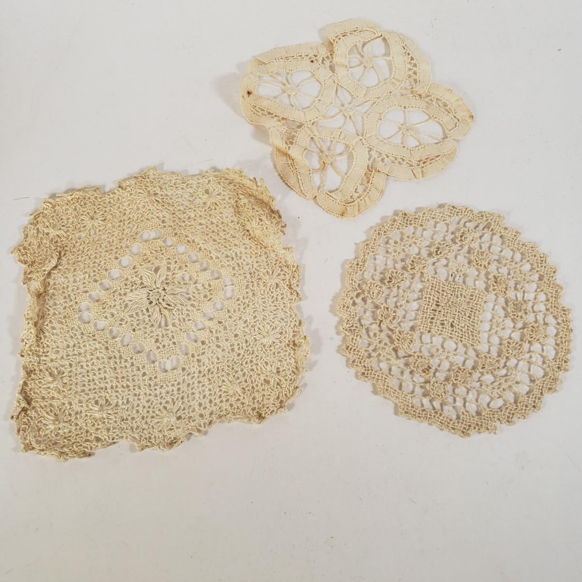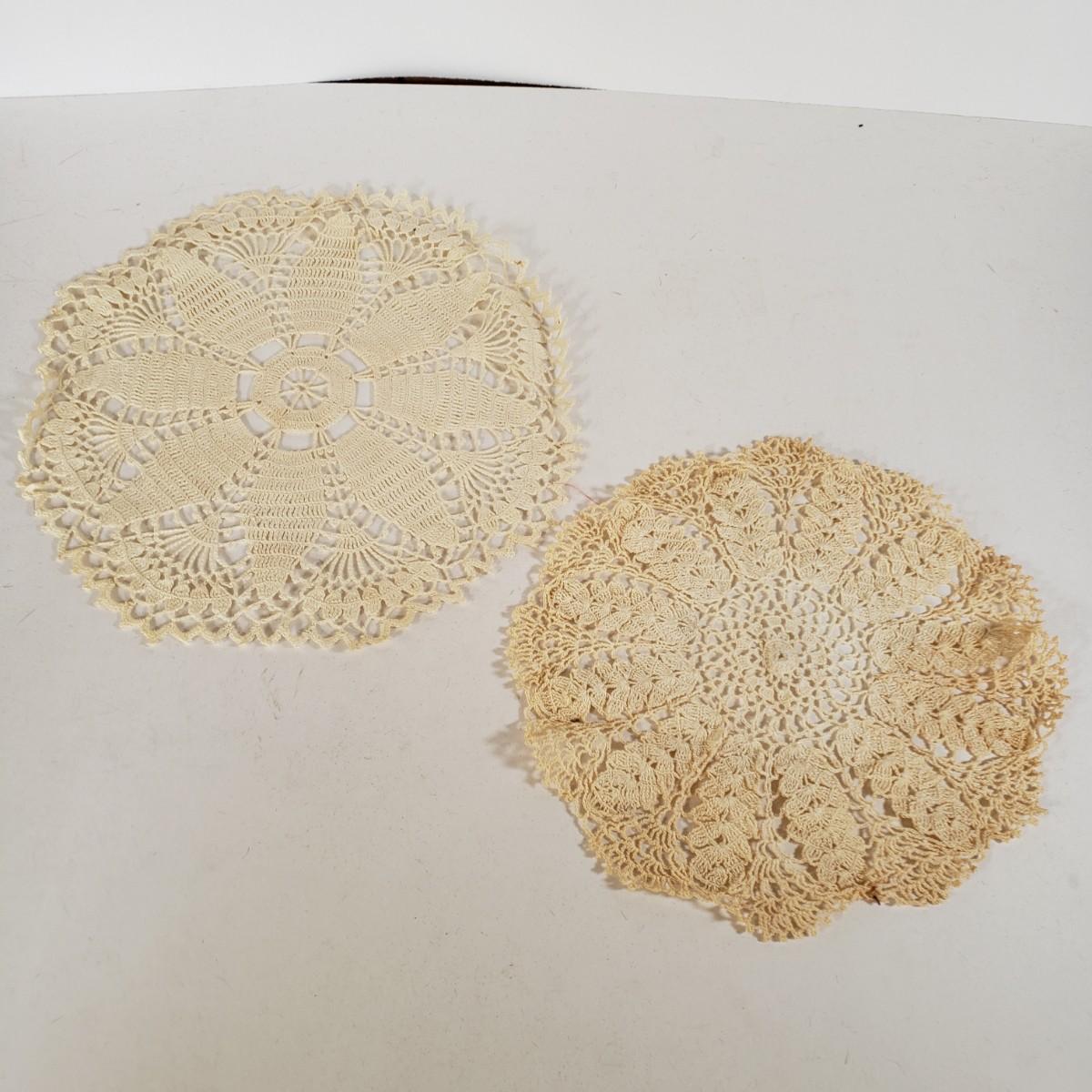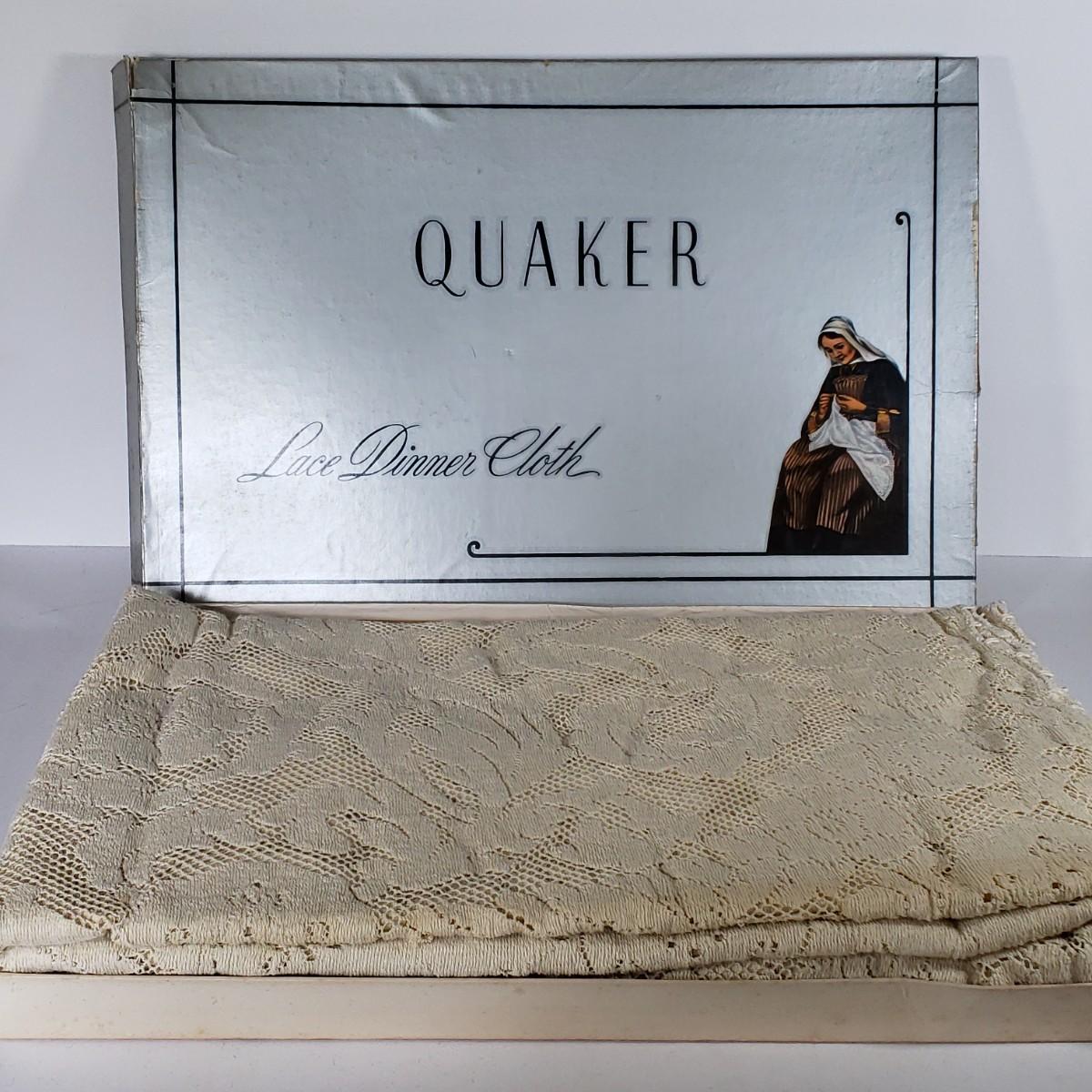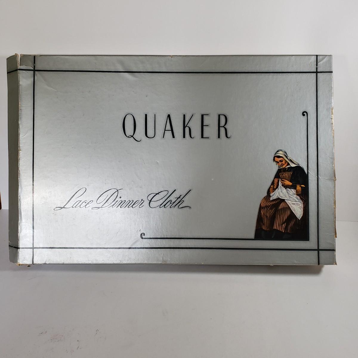 LOT 218L: Antique Quaker Lace Dinner Cloth Tablecloth in Original Box & Doilies