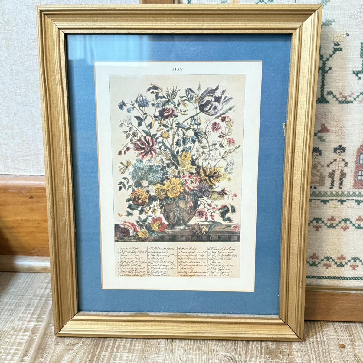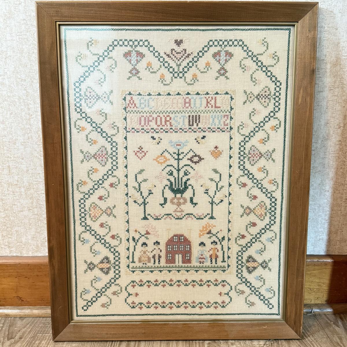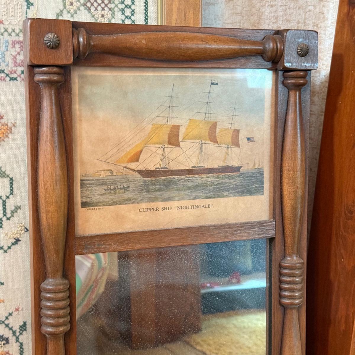 LOT 227X: Vintage Wall Decor: Cross Stitch, Flower Print & Ship Mirror