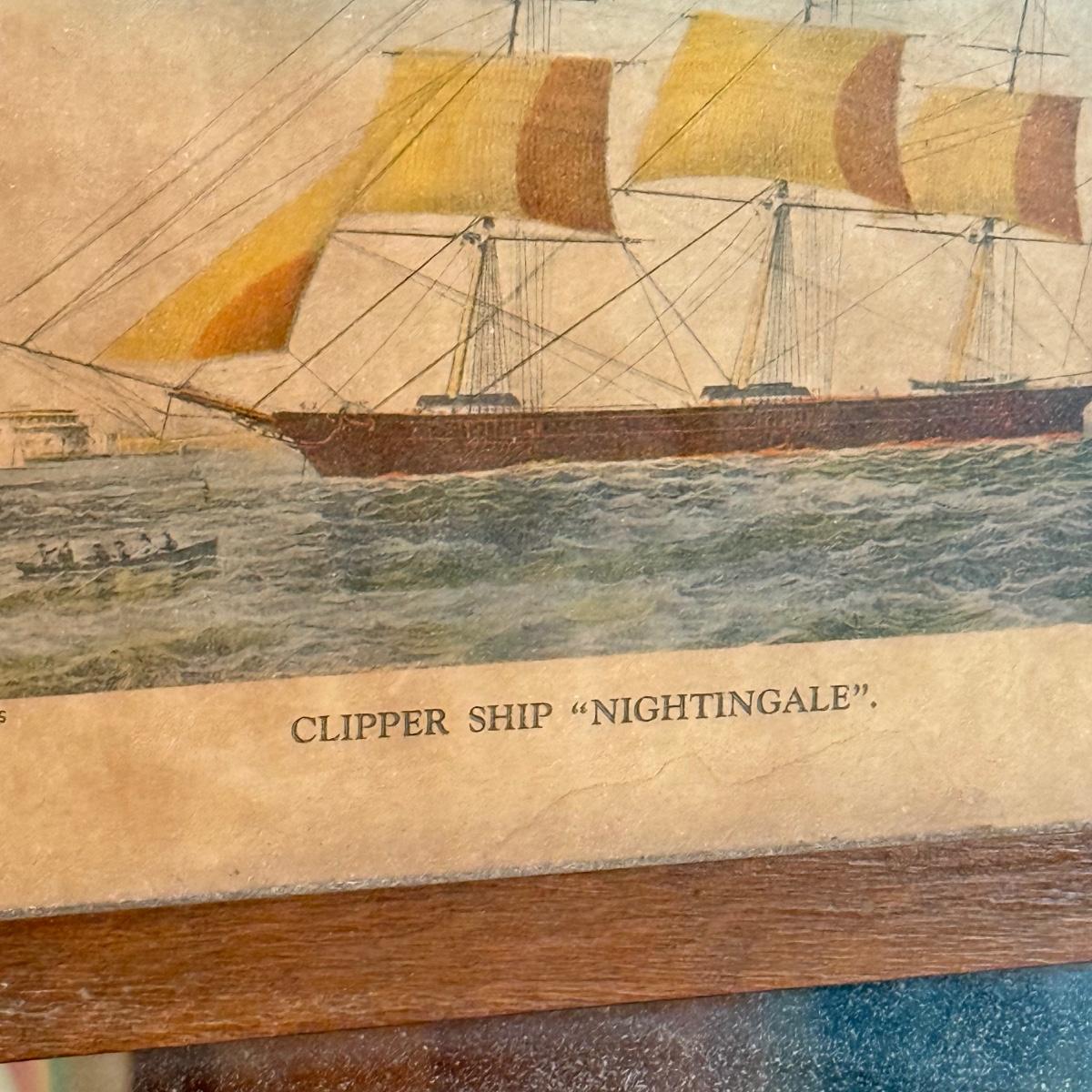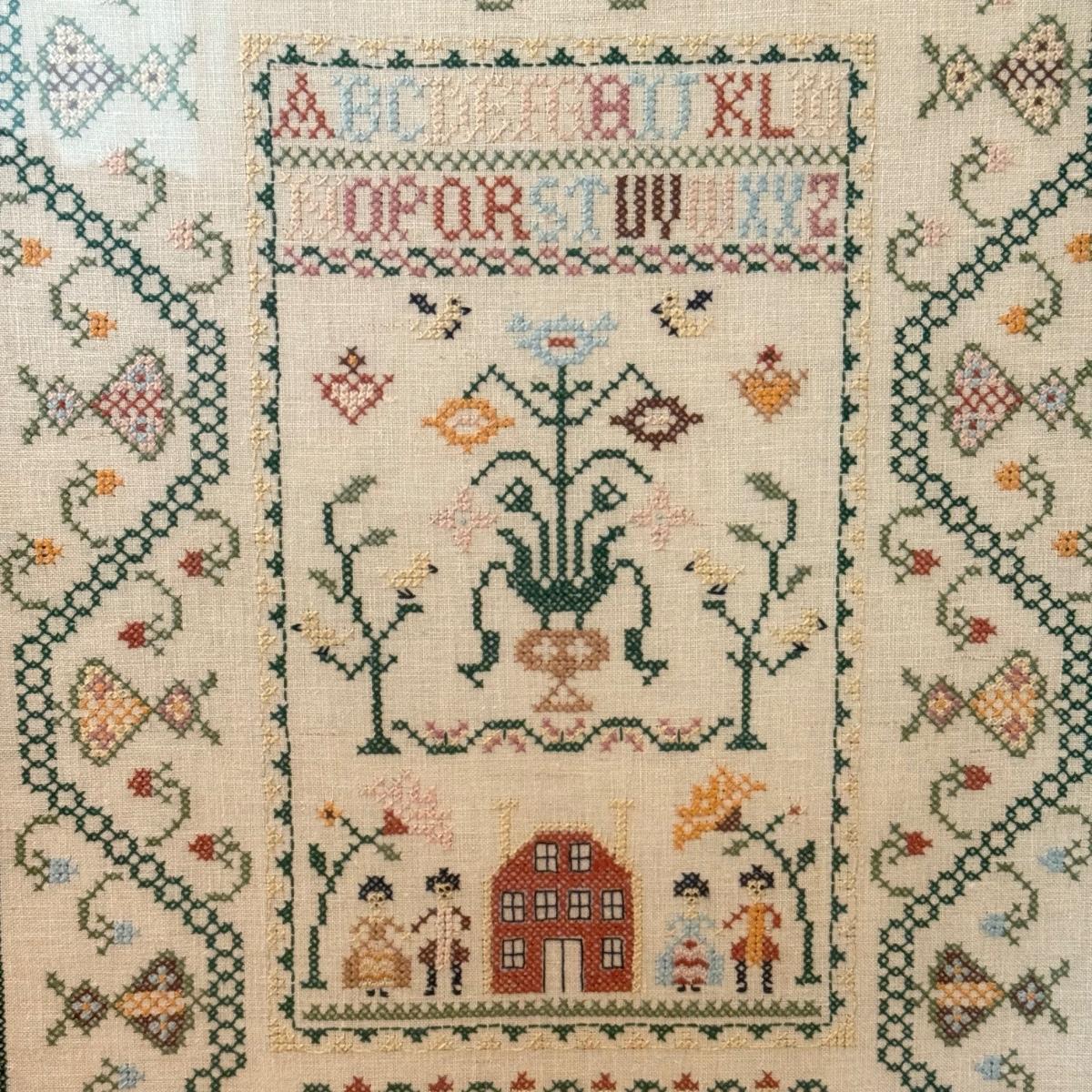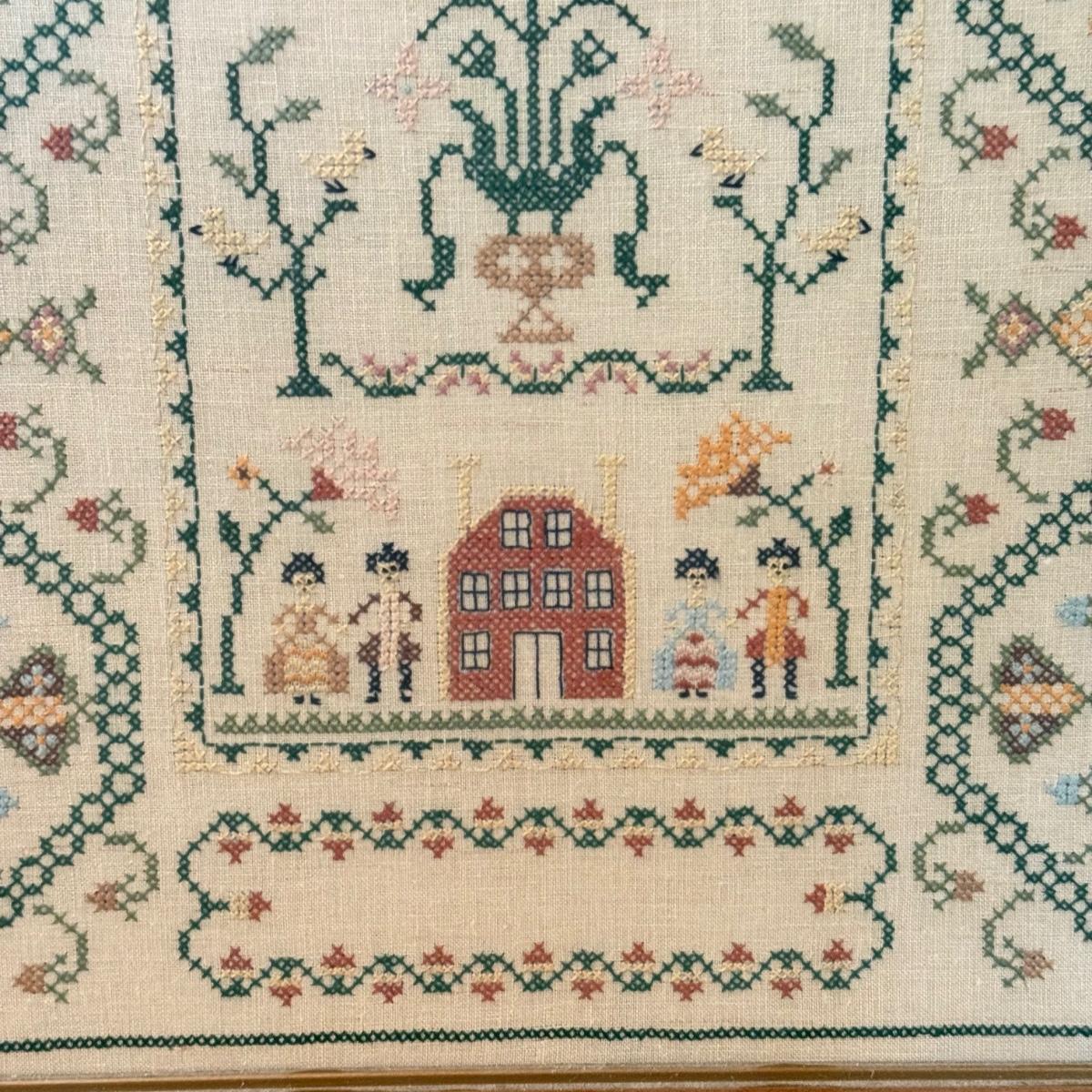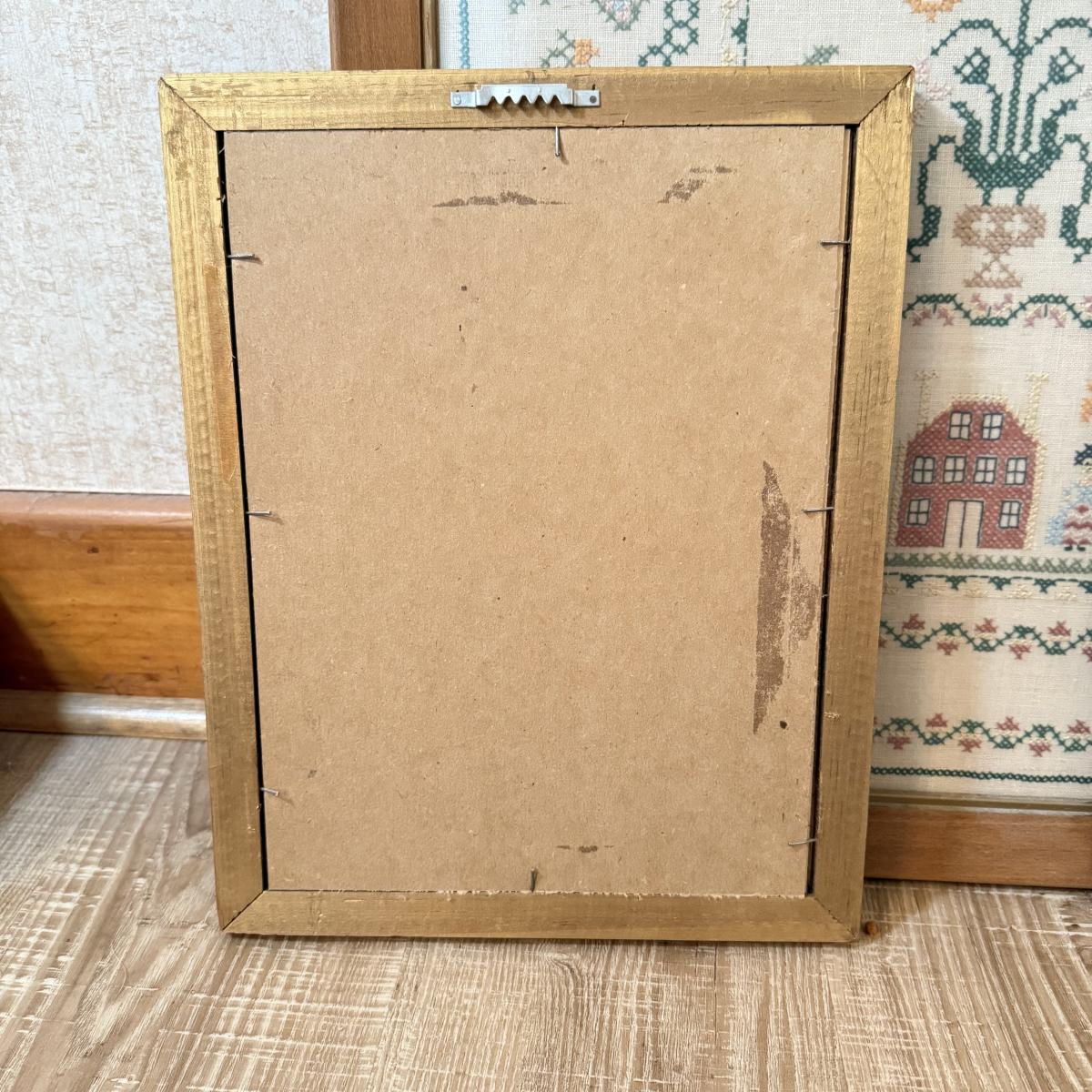 LOT 227X: Vintage Wall Decor: Cross Stitch, Flower Print & Ship Mirror
