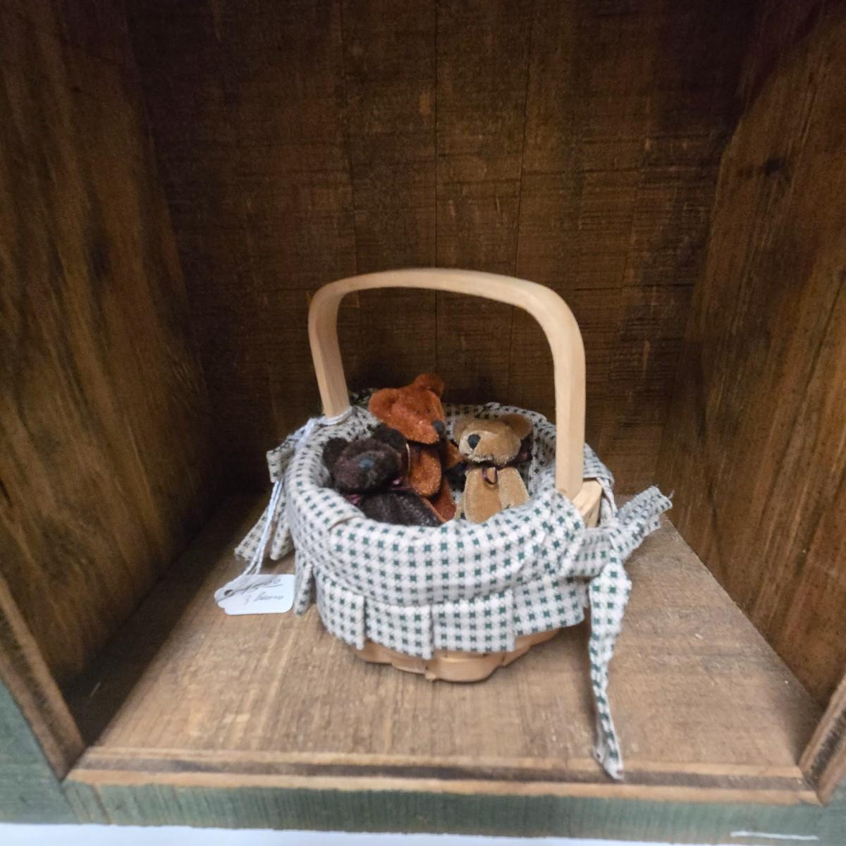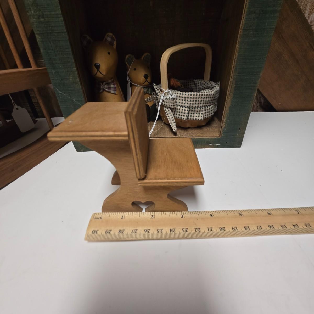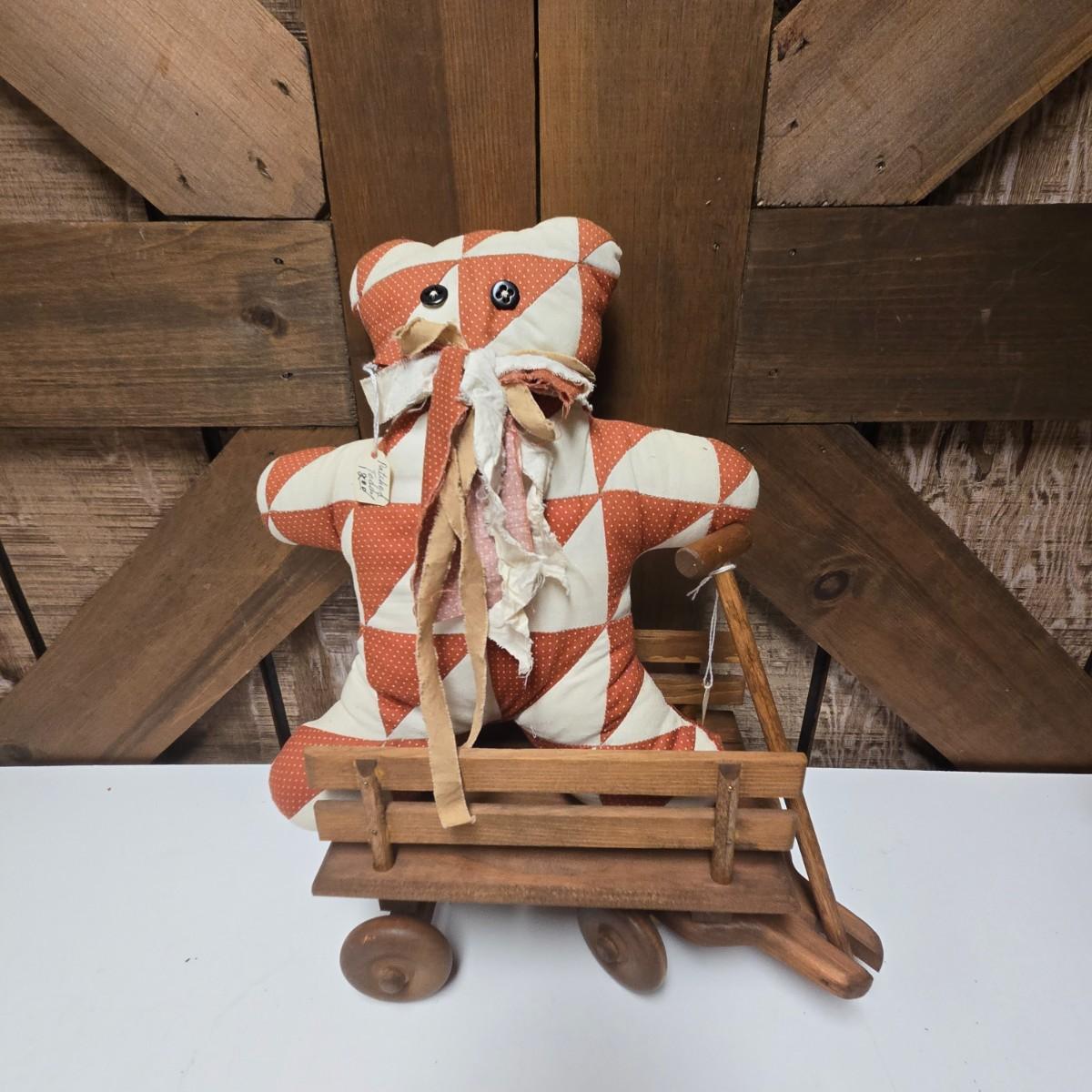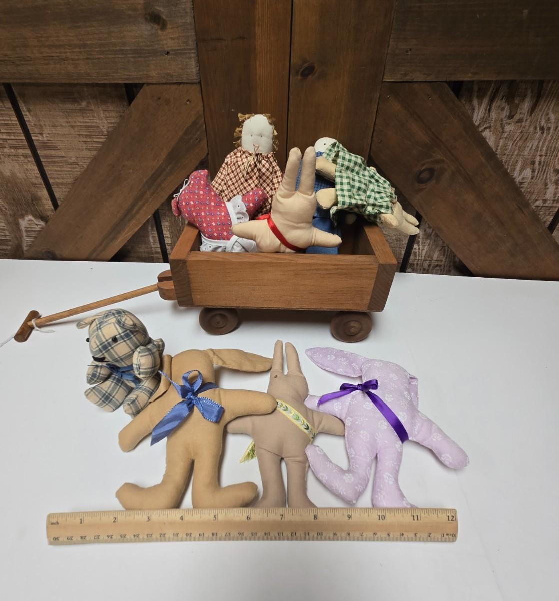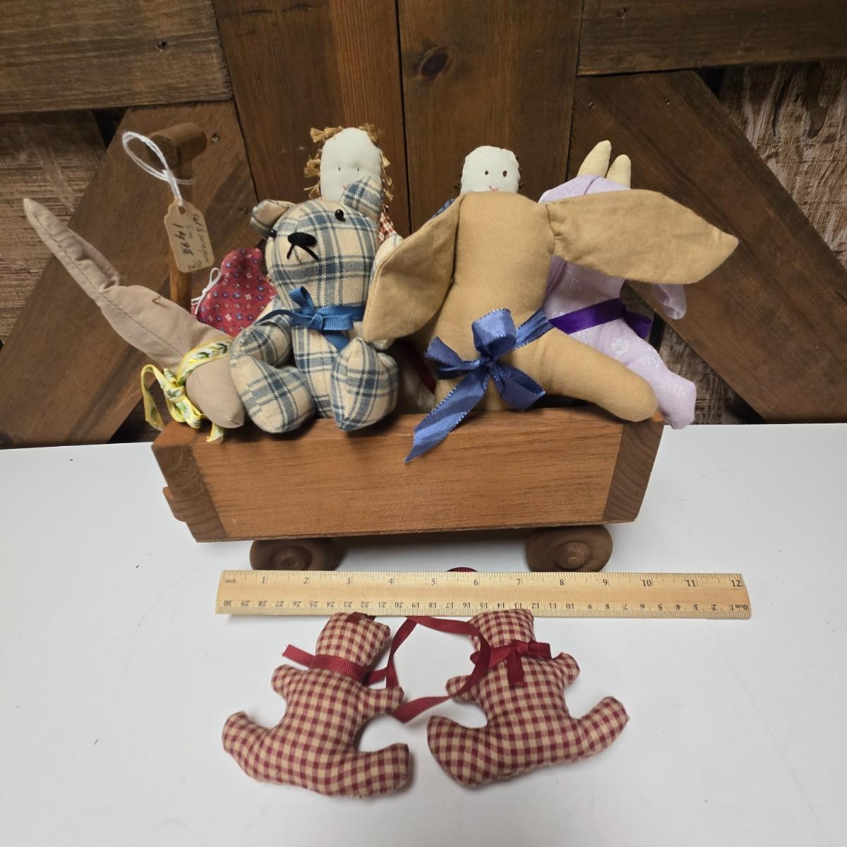 LOT 12S: Small Wooden Shelf, Two Wagons, Small Rocking Chair, and Bears, Bears, And More Bears