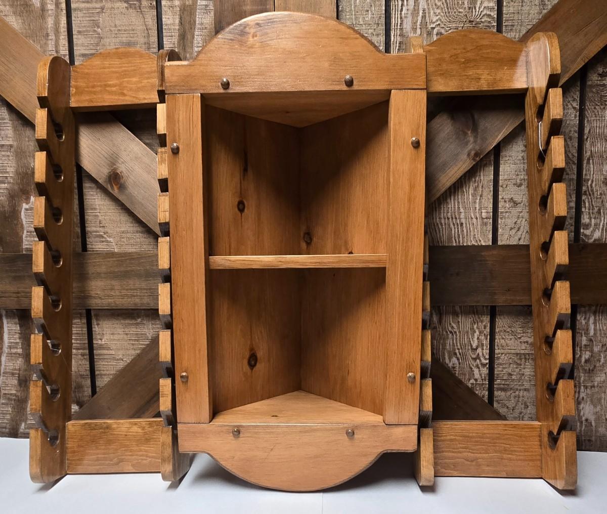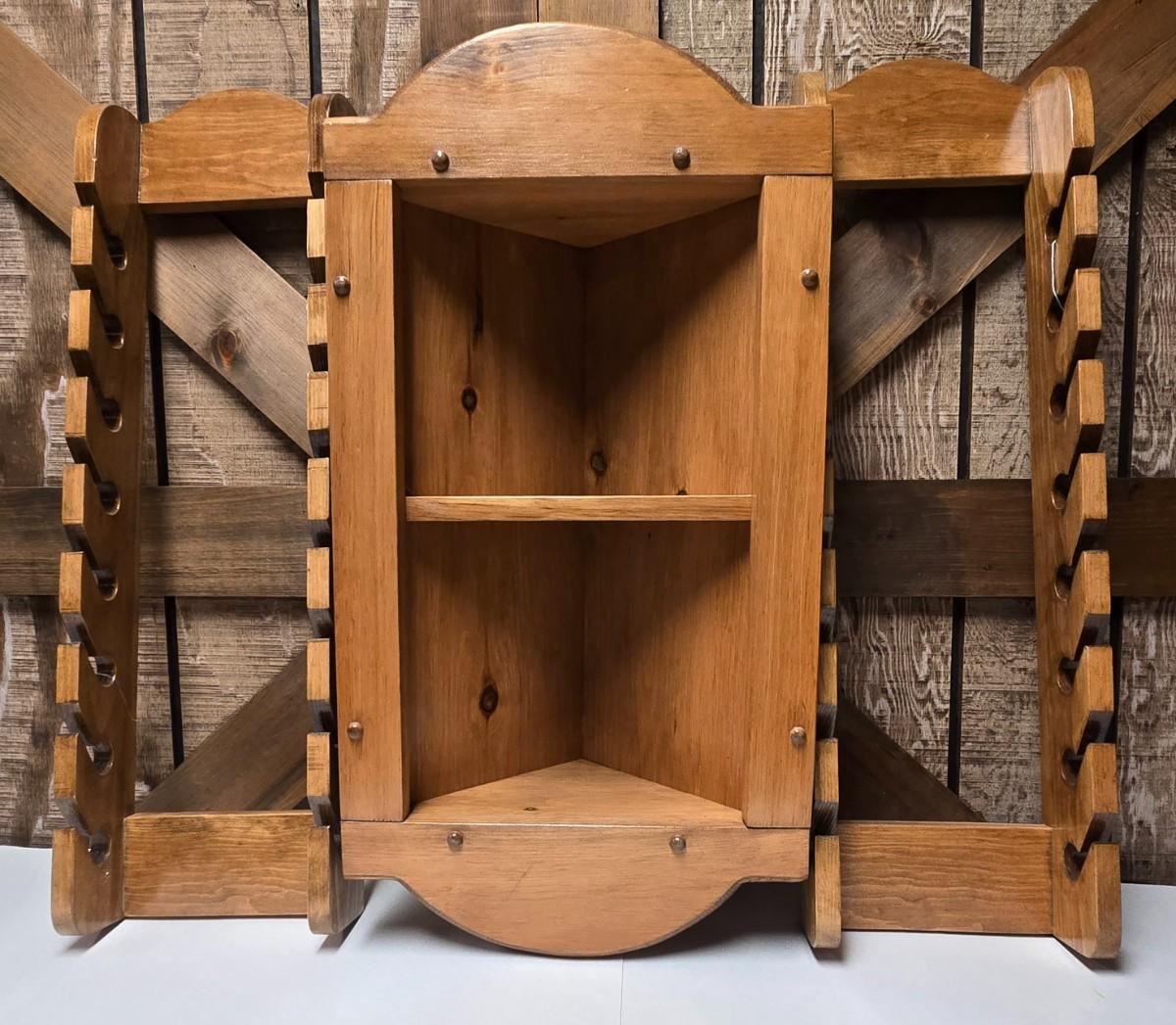 LOT 23S: Wooden Corner Shelf and Two Baseball Cap Holders/ Each Holds 16 Caps