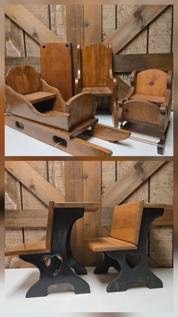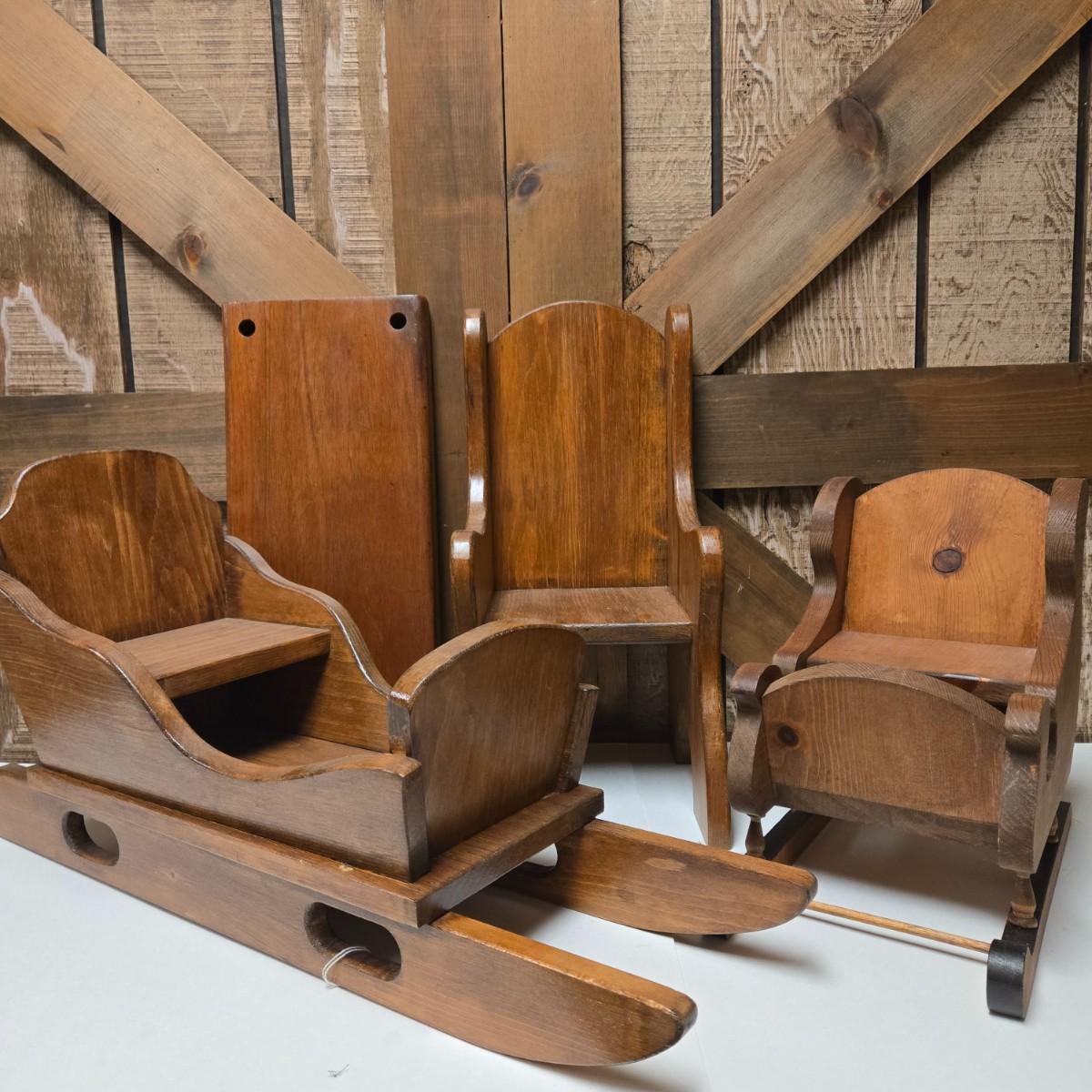 LOT 25S: Wooden Doll Furniture and Wooden Swing Seat With Pre-Drilled Holes