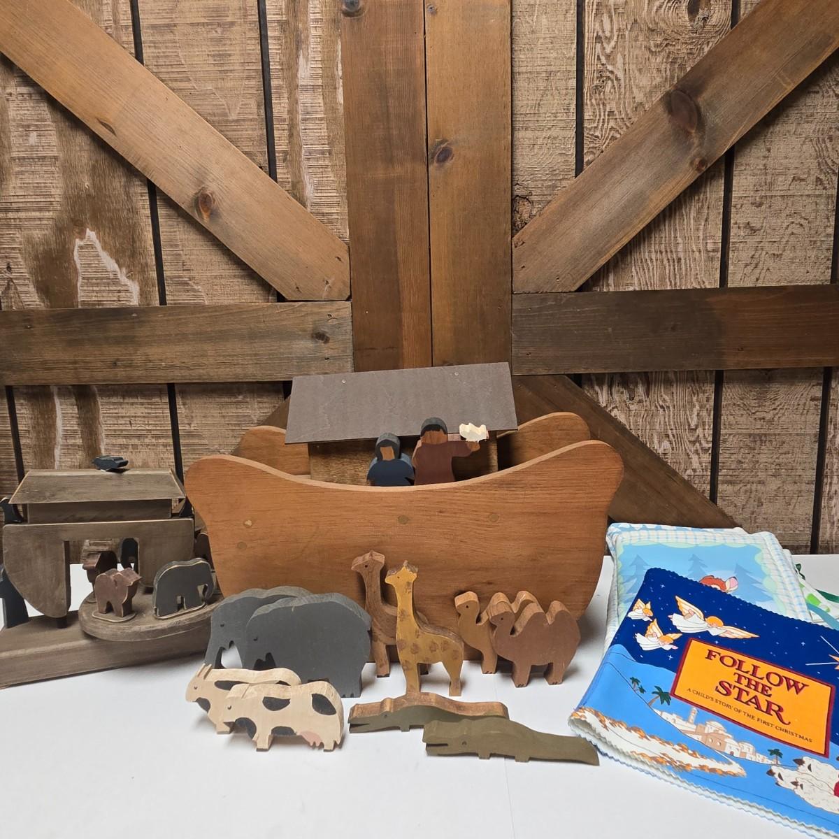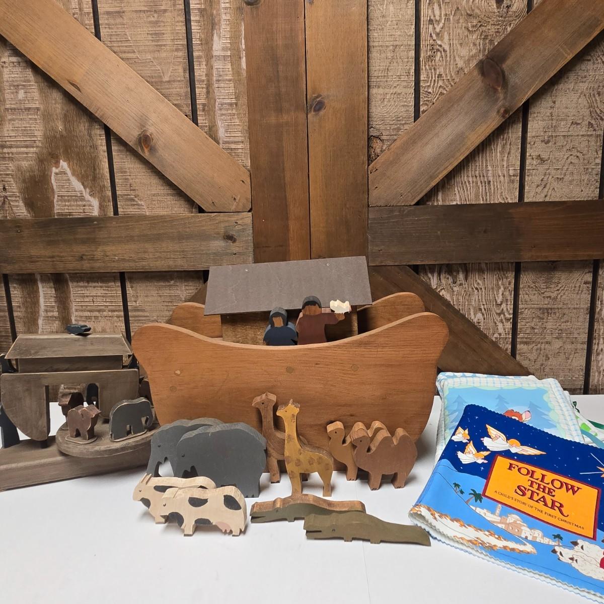LOT 27S: Number Two Two by Two/ Wooden Noah's Ark Toy, Musical Ark, and Cloth Children's Book