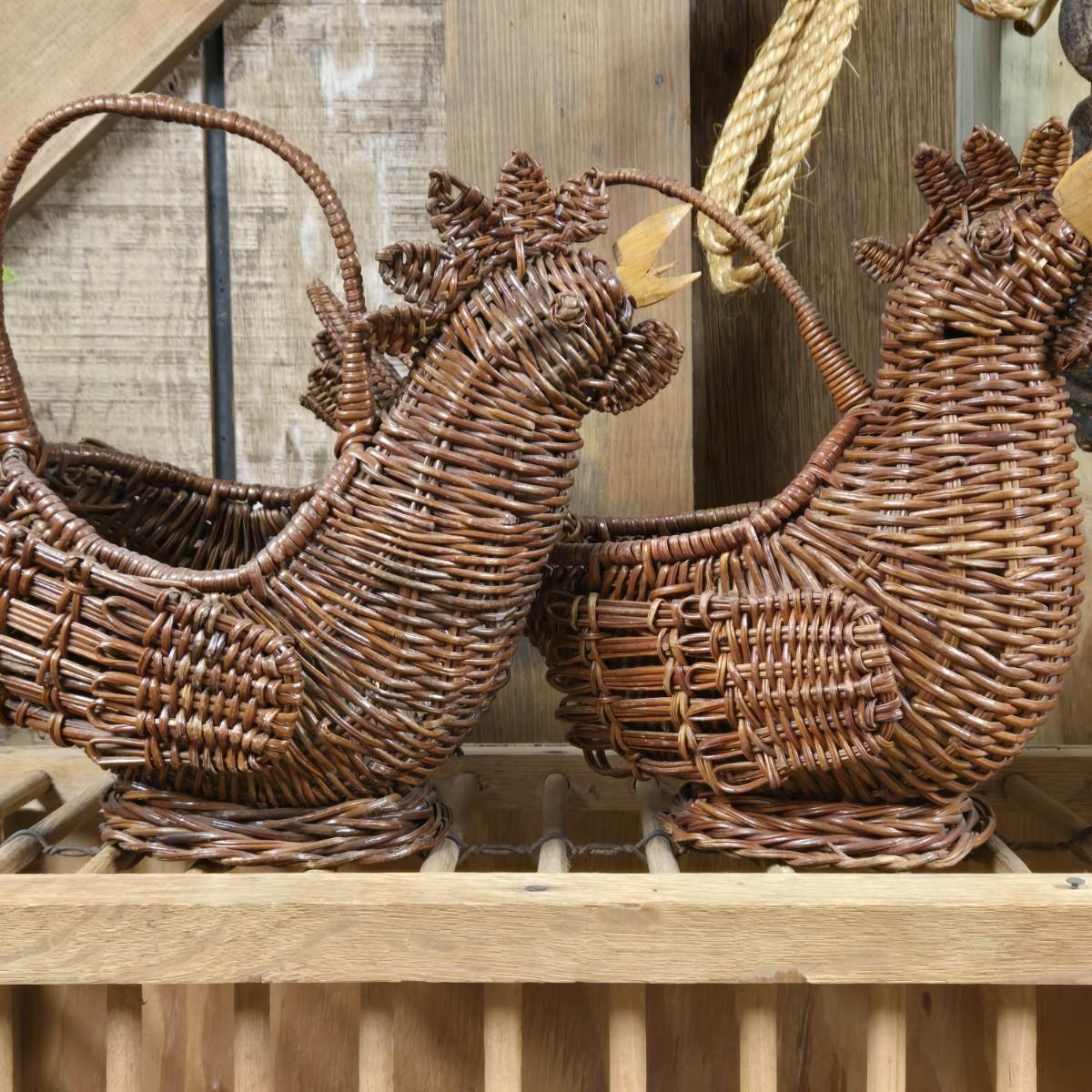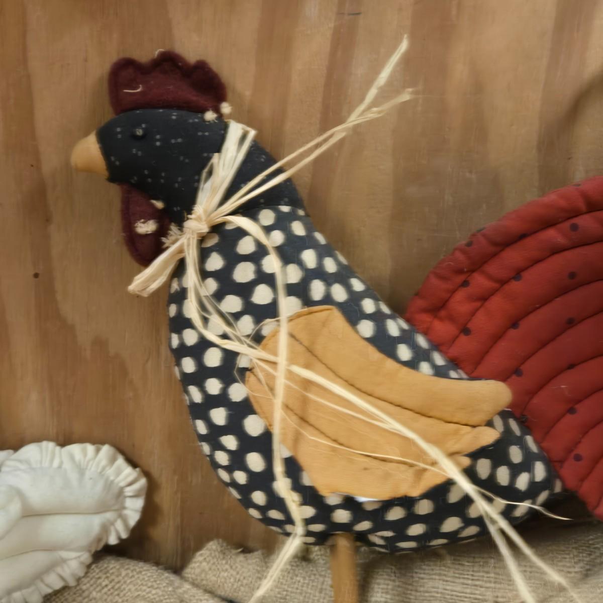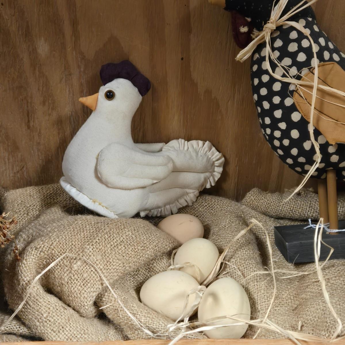 LOT 32S: Chicken Coop with Chickens and Eggs, Wicker Chicken Baskets, and Wall Hanging