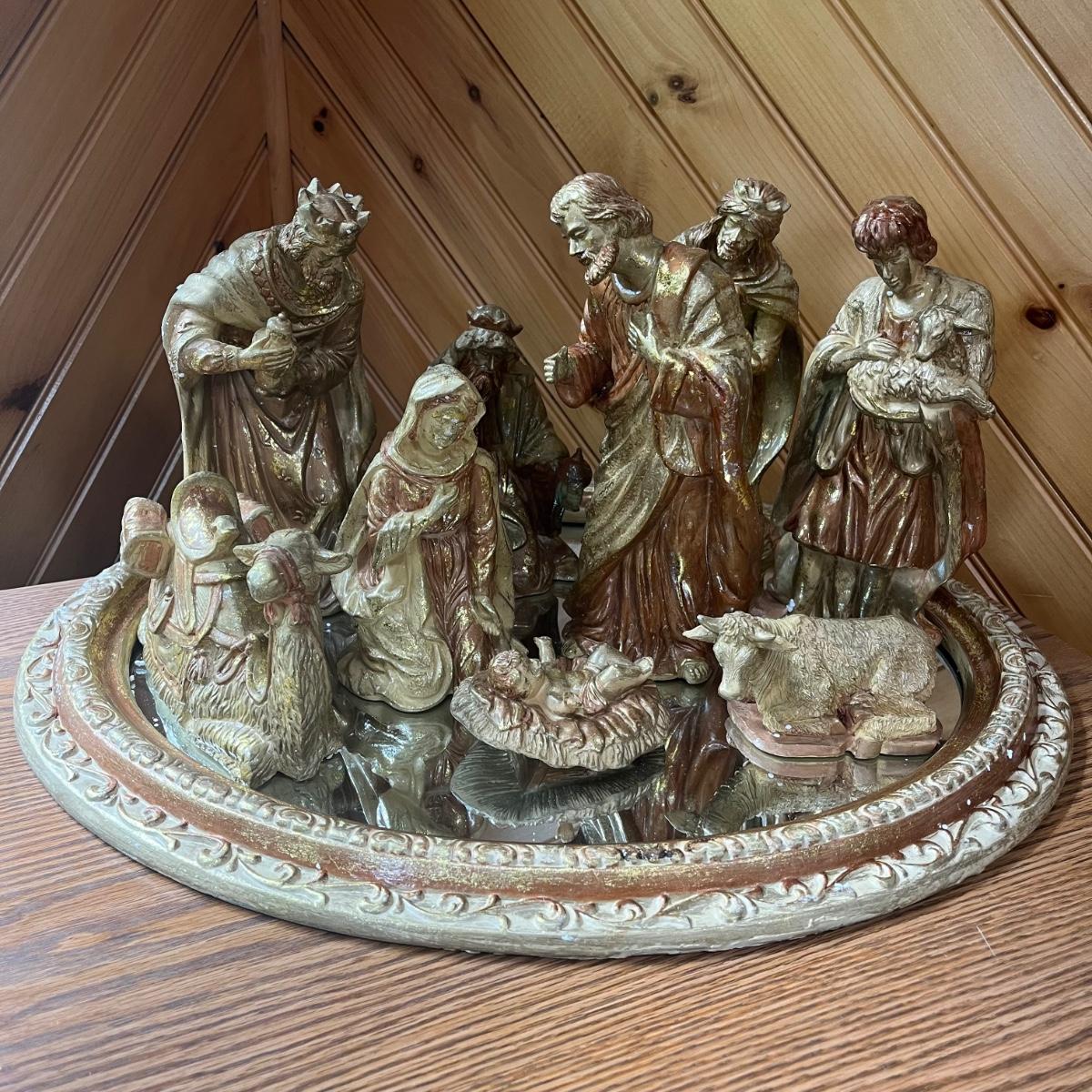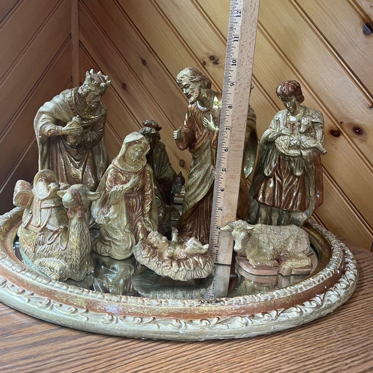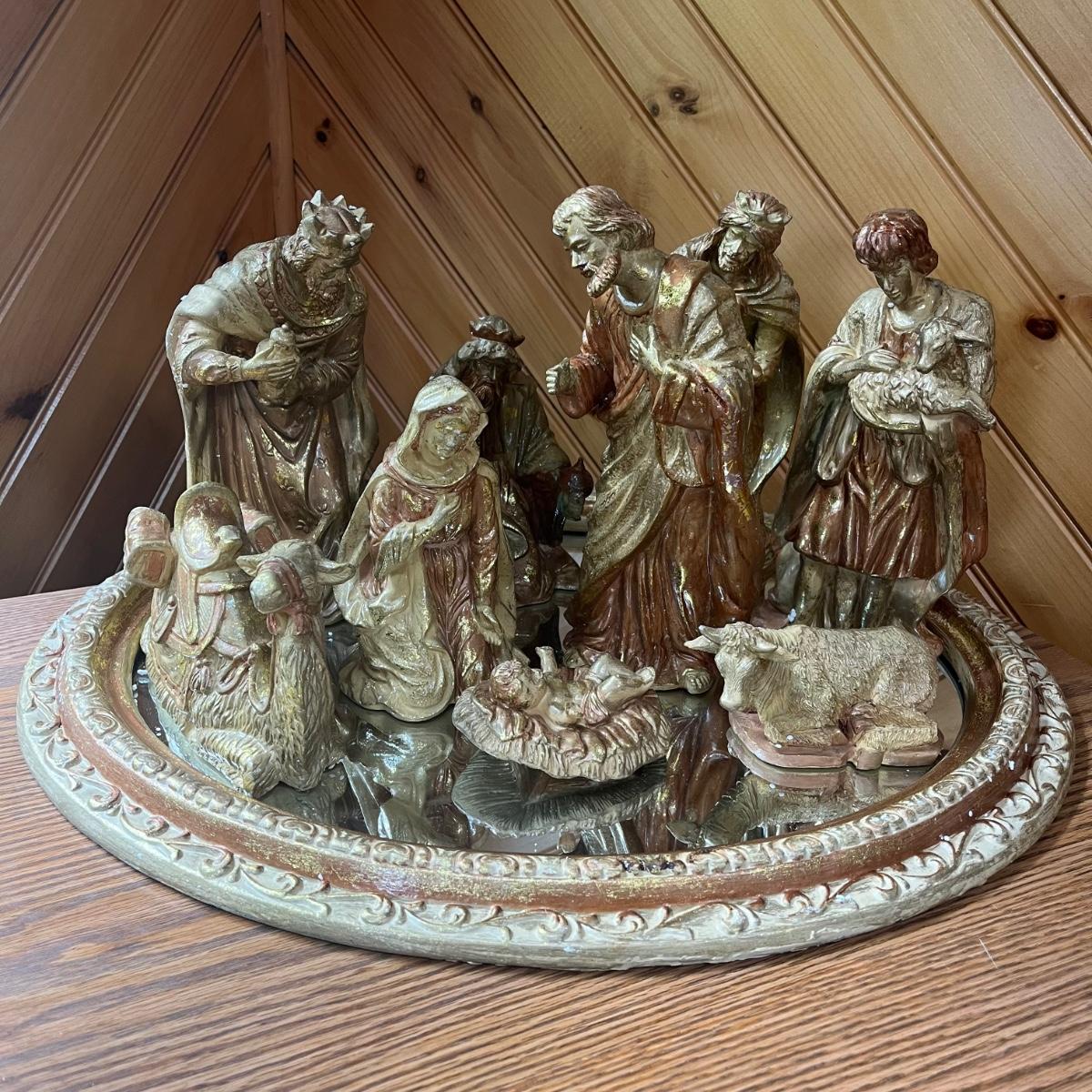 LOT 44P: Large Nativity Set on Mirrored Tray