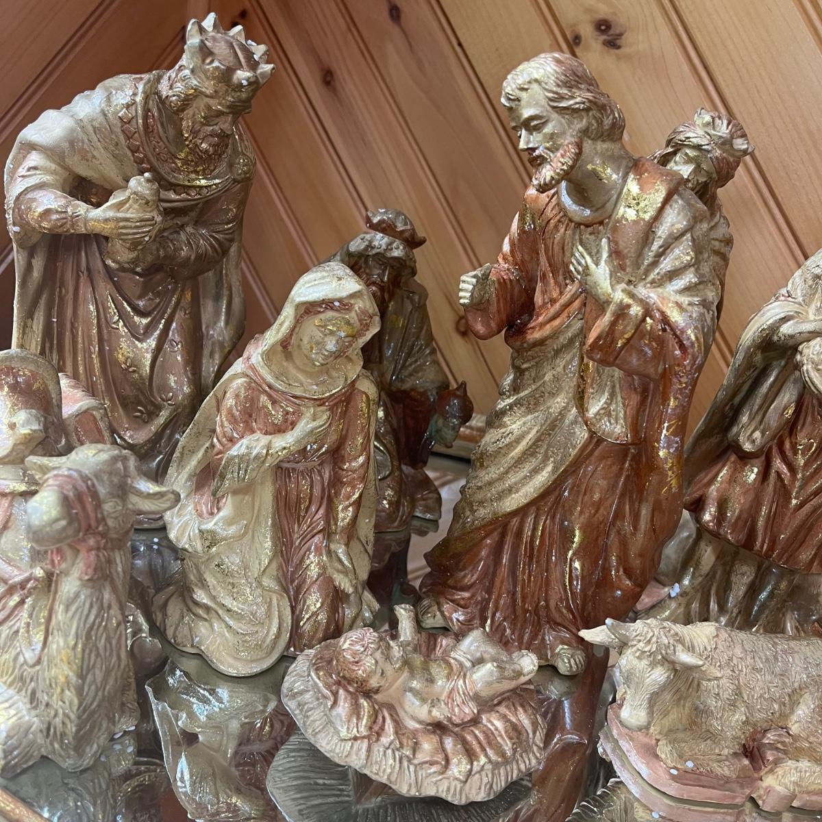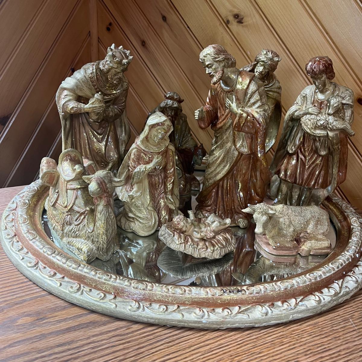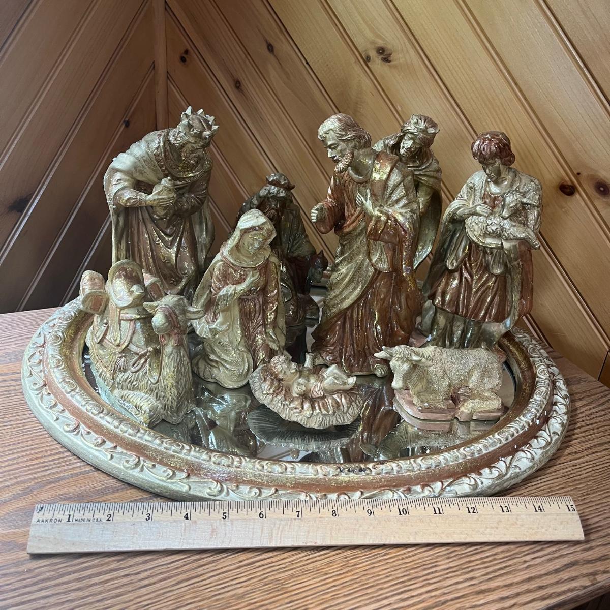LOT 44P: Large Nativity Set on Mirrored Tray