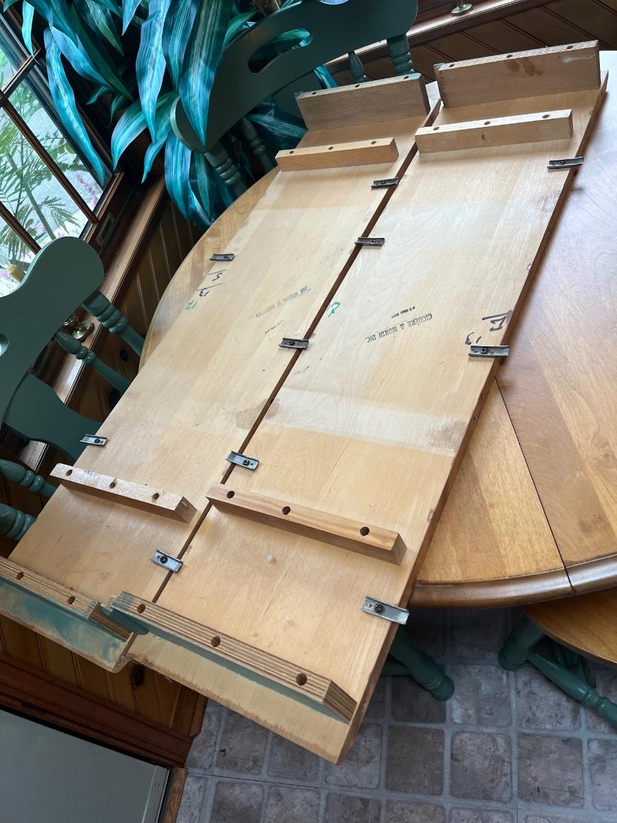 Table is 40" round - up to 40" x 60" oval with two 10" leaves